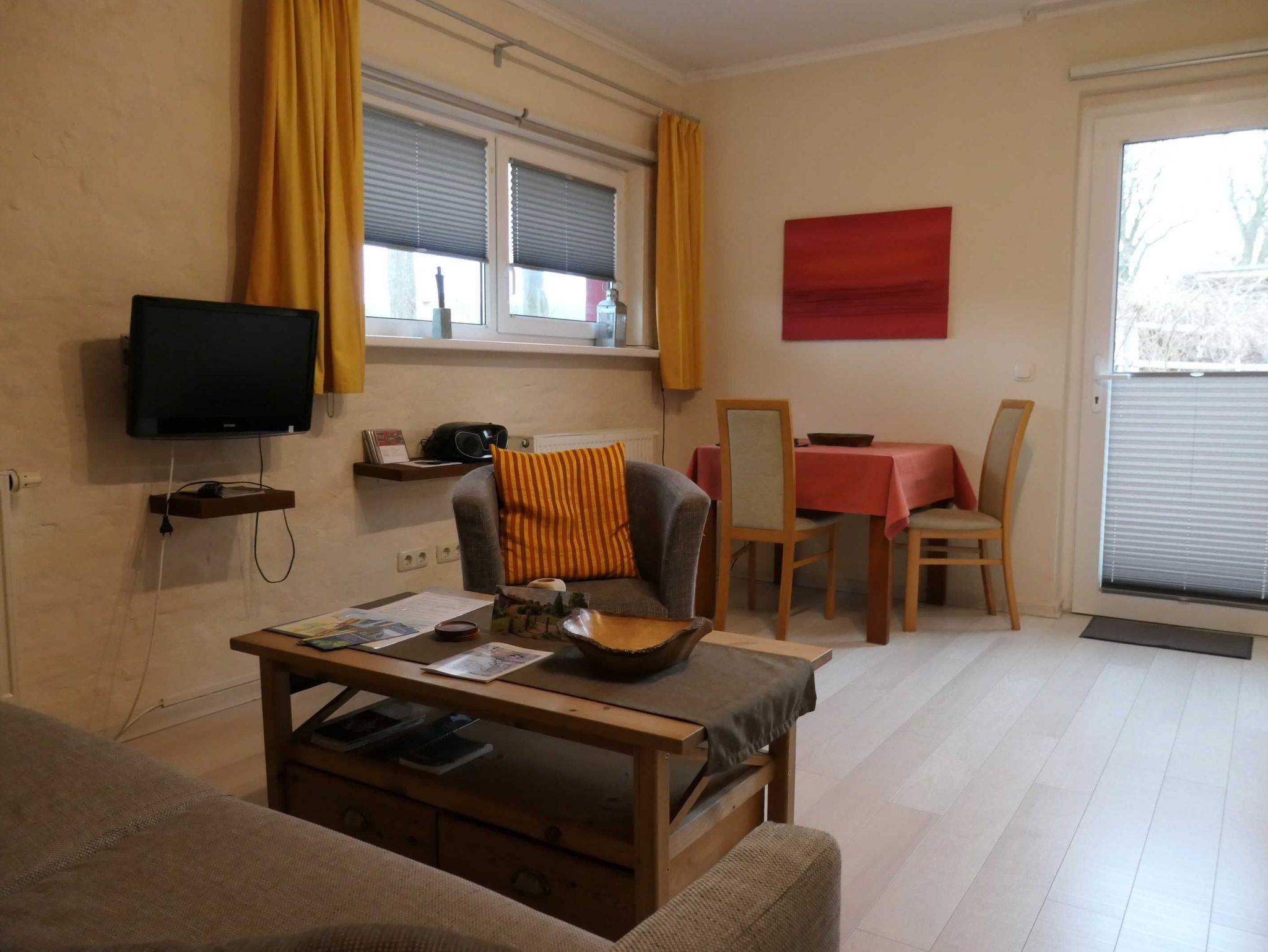 Die Ferienwohnung Dornbusch ist eine 40 qm große 2-Raum-Wohnung für bis zu 2 Personen und besteht aus einem Wohnraum mit integrierter Küchenzeile, Schlafzimmer, Bad, Terrasse (8 qm).
