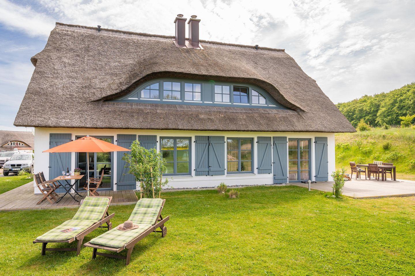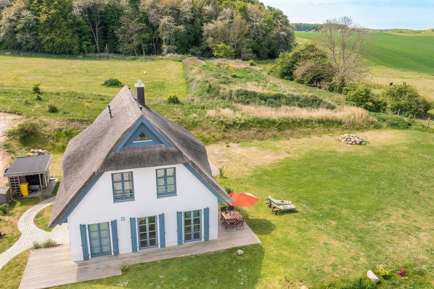 Das charmante Reet Ferienhaus Zeesenboot ist prädestiniert für Familien, Golfer, Naturliebhaber sowie Radfahrer, Wanderer und Reiter - kurz: für alle, die Natur, Ruhe und Meer in der Nähe wünschen. Es liegt unmittelbar am beeindruckenden Wanderweg entlang der Ostseesteilküste zum Königsstuhl. Das umfangreiche Angebot des Romantik Hotel Schloss Ranzow mit seinem Restaurant Earl, einer Saunalandschaft mit Pool bis hin zum 18-Loch-Golfplatz erfüllen jegliche Urlaubswünsche.