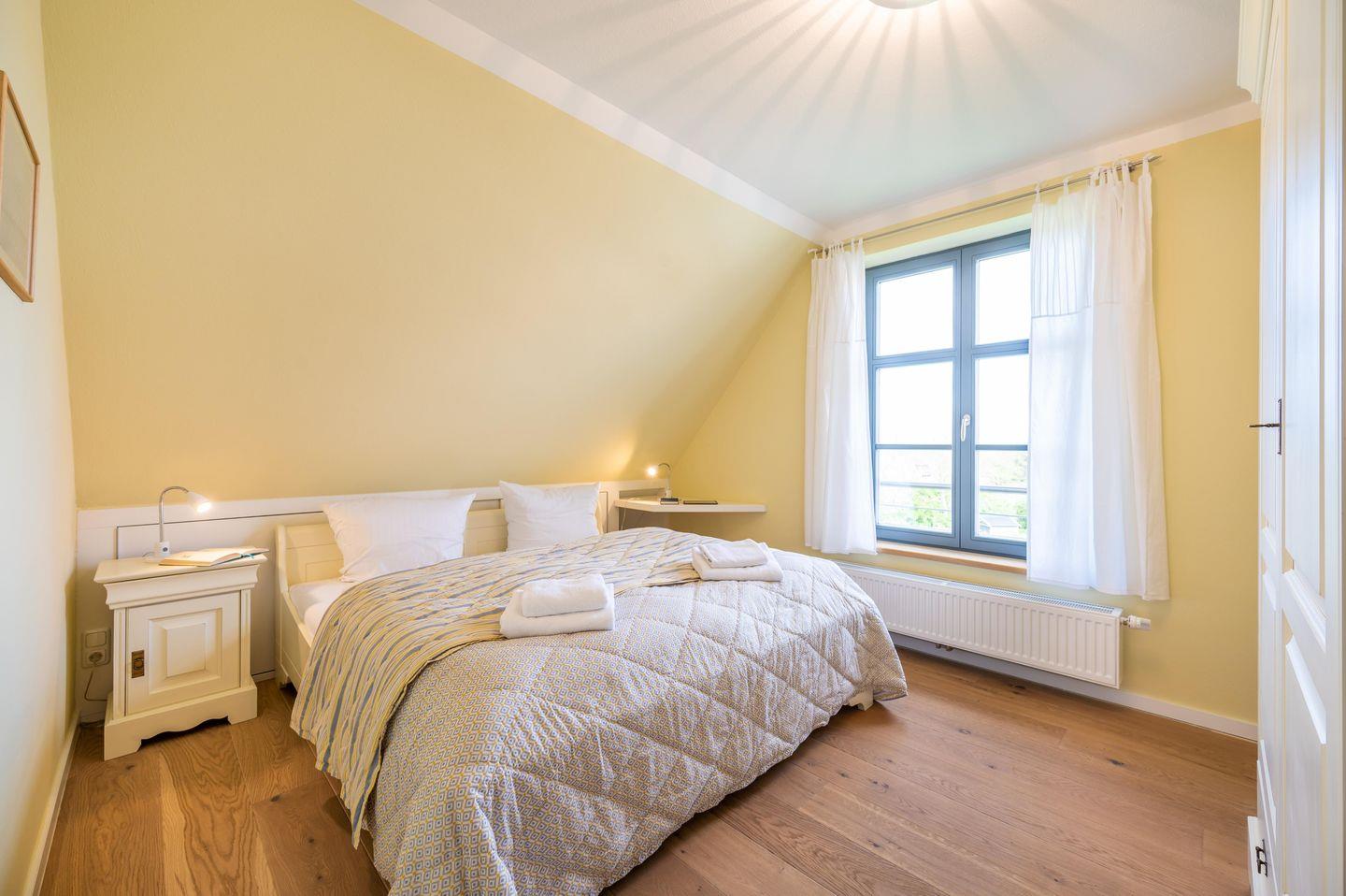 Zwei Schlafzimmer im Obergeschoss. Das erste Schlafzimmer bestückt mit einem Doppelbett 1,80m x 2,00m, das zweite Schlafzimmer mit zwei getrennten Betten 0,90 m x 2,00 m.
