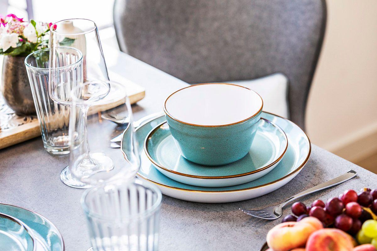 Der vom Wohnbereich optisch getrennte Essbereich bietet einen Esstisch mit 2 Stühlen der Marke BoConcept und einen herrlichen Blick auf das Panorama des historischen Schloss Ranzow. Hell und vollständig ausgestattet fügt sich die integrierte, moderne Nobilia-Einbauküche exzellent ein. Die technische Ausstattung mit der Premium-Marke Miele bietet einen komfortablen Umgang mit den Küchengeräten Ceranfeld, Backofen, Mikrowelle, Kühlschrank mit Gefrierfach und Geschirrspülmaschine. Die neuartige Nespresso-Kaffeemaschine, mit kostenlos zur Verfügung gestellten Kaffeekapseln garantiert vollendeten Kaffeegenuss.