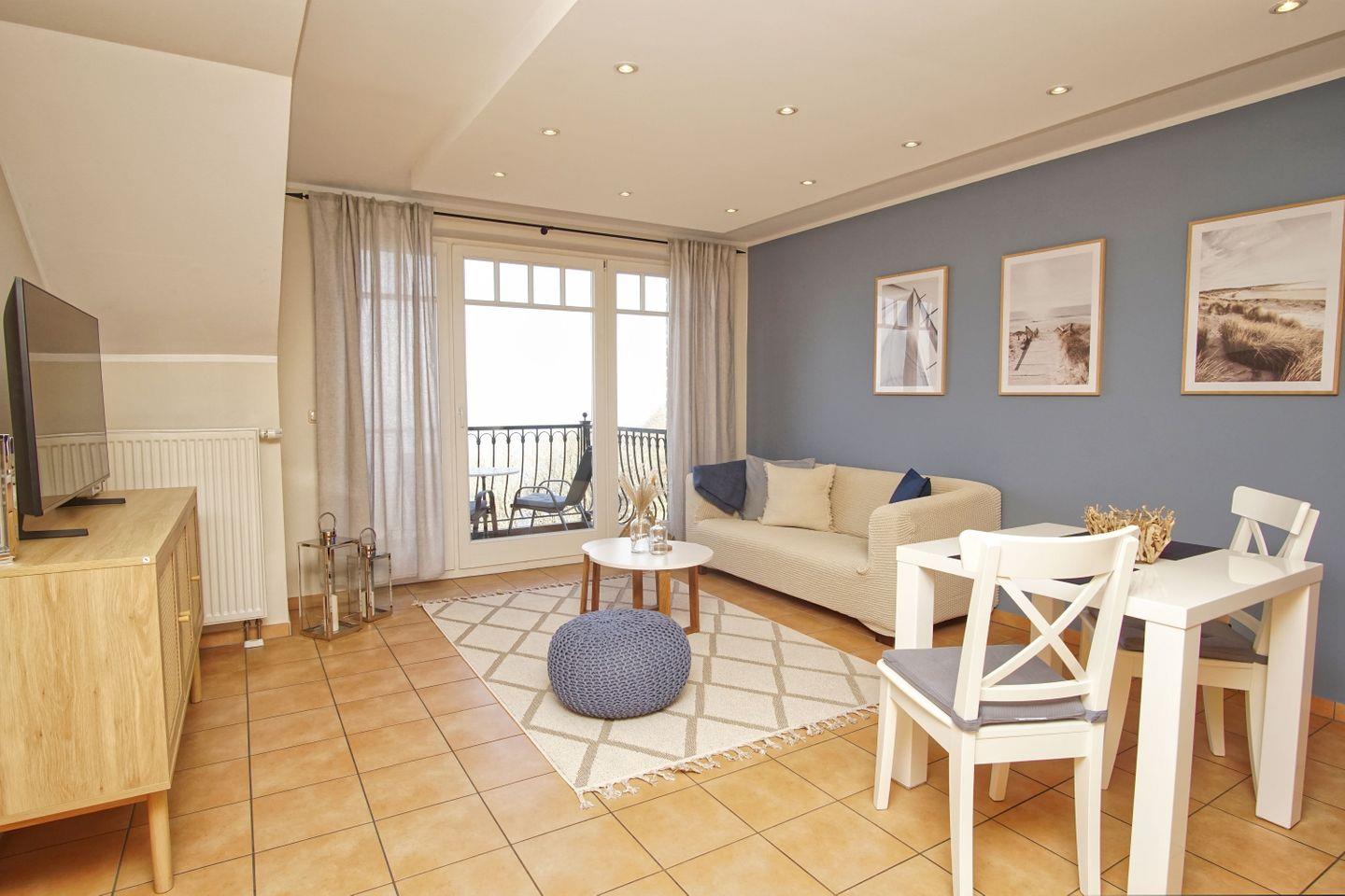 WOHNEN // Wohnraum mit Essbereich, Sitzgarnitur mit bequemer Couch, Flachbild-TV, Balkon ++