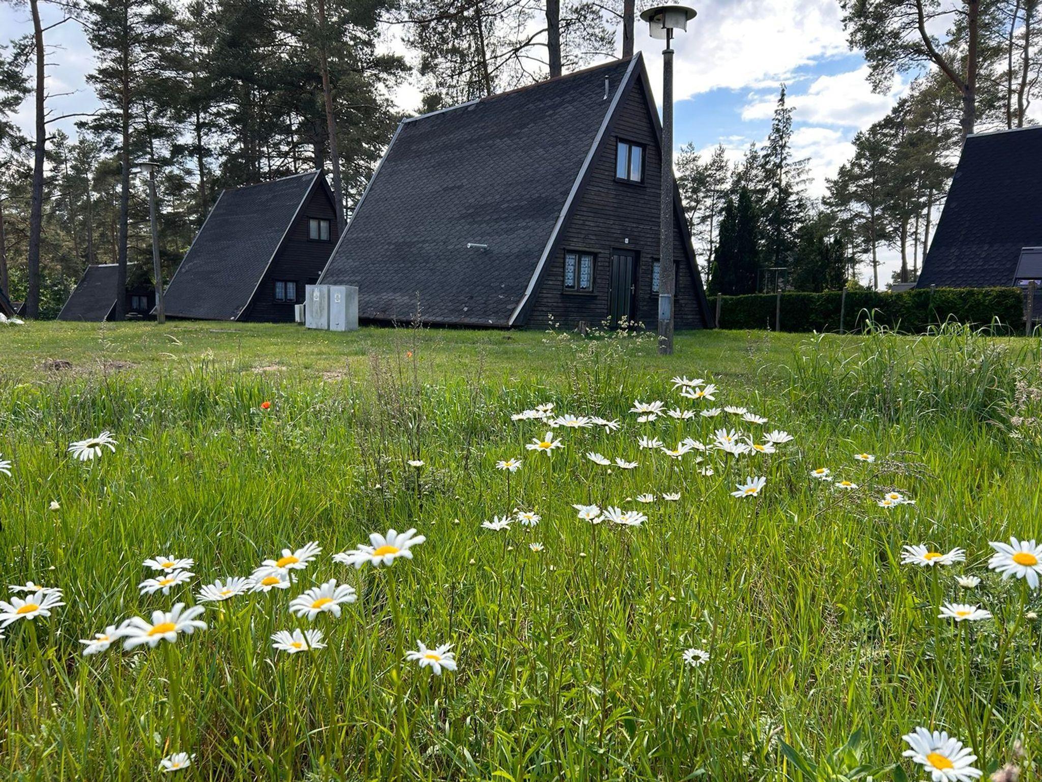 Alle 6 Häuser im Finnhaus-Stil sind über 2 Etagen einfach und gemütlich mit viel Holz eingerichtet, und ganzjährig nutzbar. Sie verfügen über :