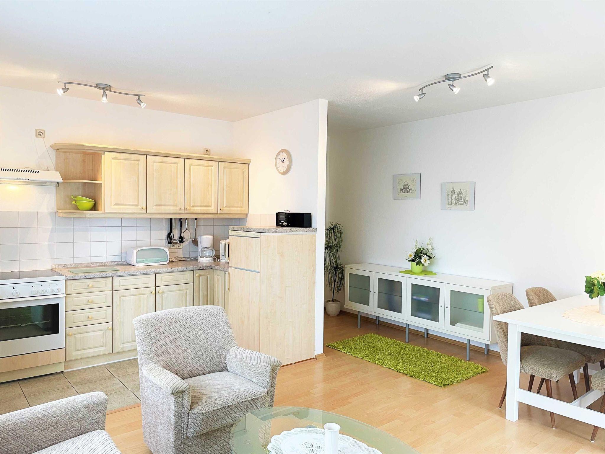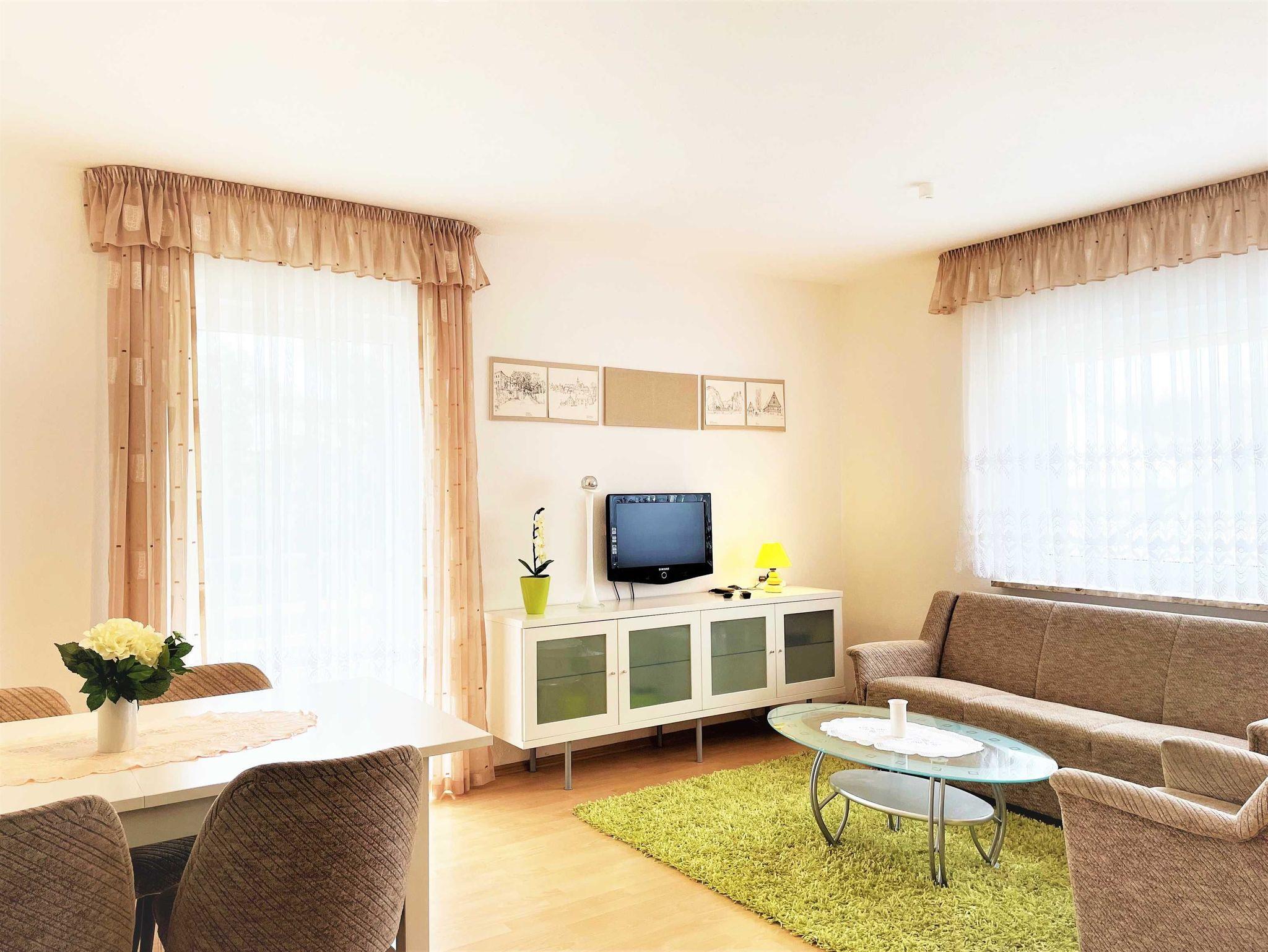 Die Wohnungen sind alle mit Wohnzimmer, Küche, Bad, Schlafzimmer und berrierefreien Bad, sowie einem Balkon ausgestattet. Auf Nachfrage können Kinderhochstuhl und Babybett zur Verfügung gestellt werden. Im Außenbereich lädt ein Grillplatz zum gemütlichen Ausklang des Tages ein. In direkter Nähe zum Haus können SIe kostenfrei parken.