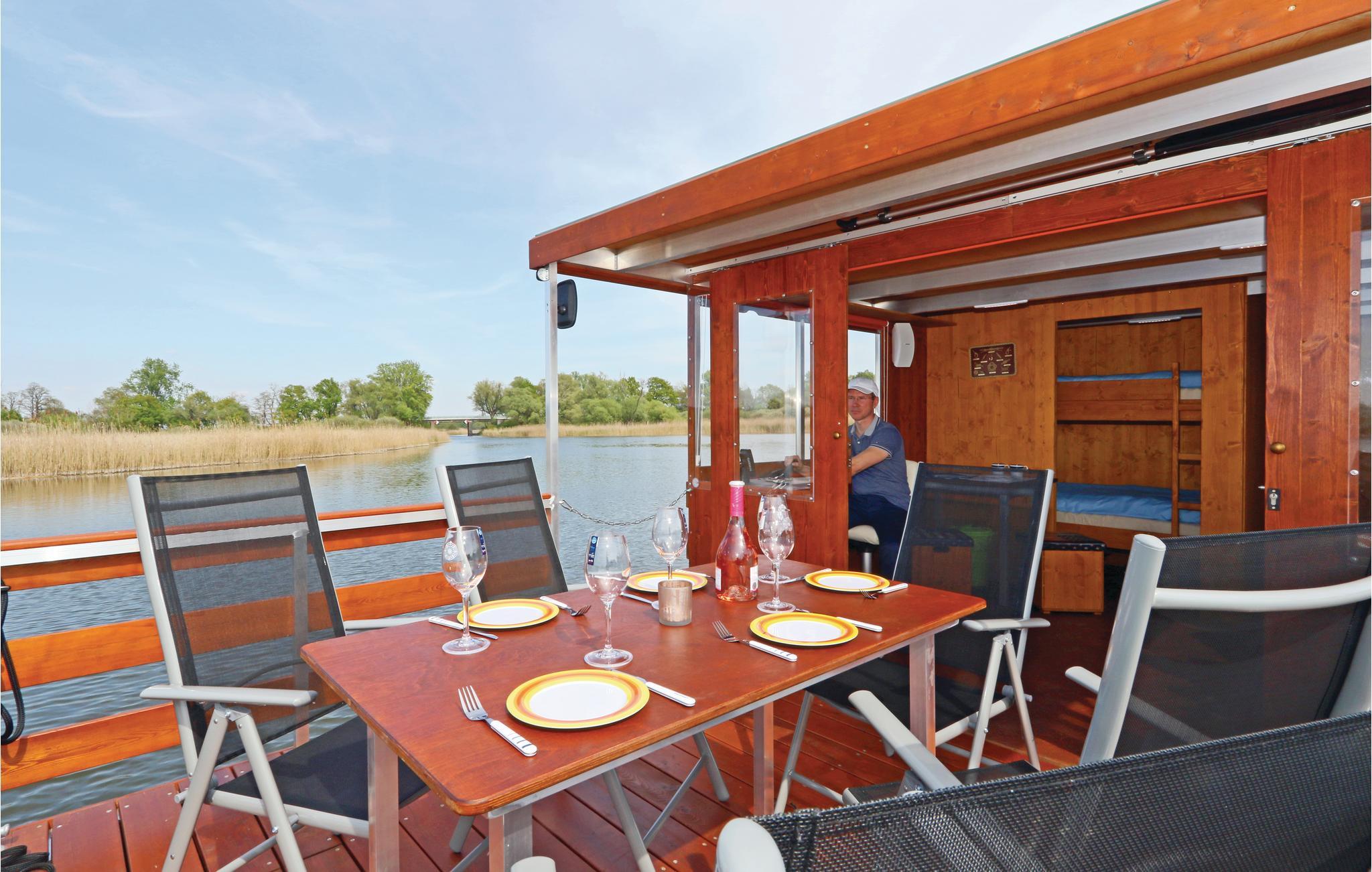 Husbåden kan bruges på mange forskellige måder: Som liggende feriedomicil, som befordringsmiddel rundt om floden Peene (120 km) med mange muligheder for at gå til ankers eller lægge til. I kan fiske fra båden, grille om bord og se havørne, bævere og meget mere. Om bord er der en mappe med mere information.