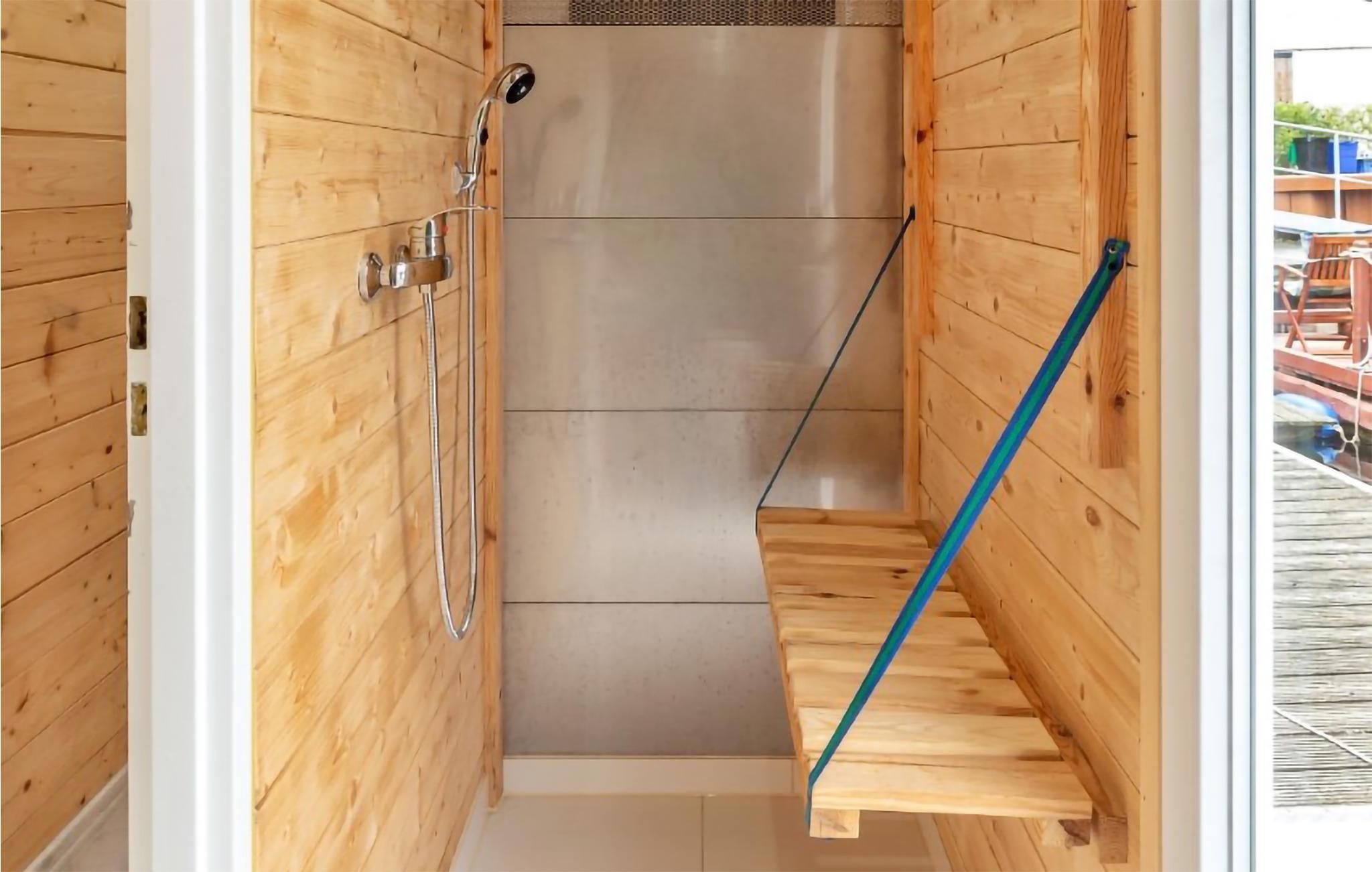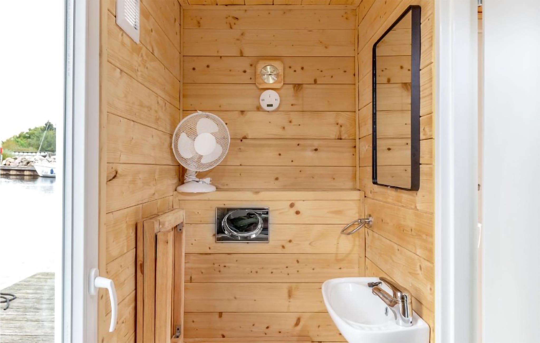 I kommer ind i husbåden via den åbne terrasse ved stævnen og kommer således ind i opholdsstuen ved roret, hvor to af sengene og et køkken er placeret. Separat ved siden af ??ligger det hyggelige soveværelse med dobbeltseng, som tilbyder en vidunderlig udsigt til vandet. Der er også et badeværelse med sauna.