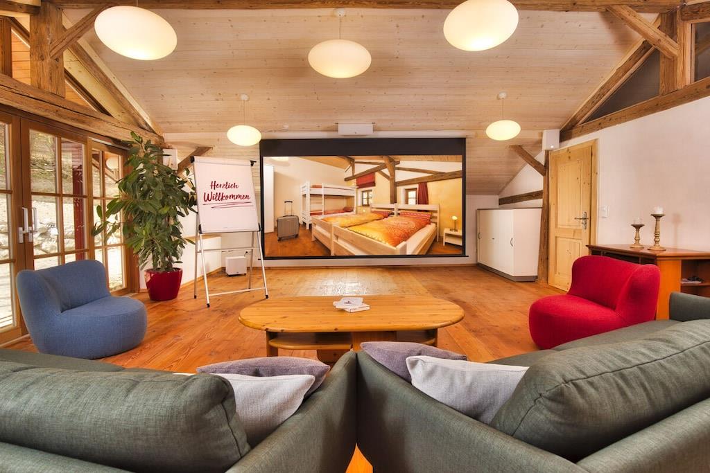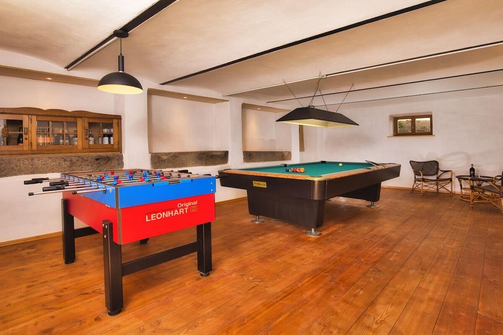 Familien- oder Wochentagsbuchung - Rabatt anfragen Urlaub pur! Ankommen, zurücklehnen und ab der ersten Minute den Urlaub genießen. Die Bettdecken sind bezogen, Handtücher liegen bereit. TOP ausgestattet - alltägliche Verbrauchsgüter, sowie Grillkohle und Holz für Holzbackofen und Hot Tub gehören kostenlos zur Ausstattung. Ein großer Teil unseres 5000 qm großen Anwesens, in ruhiger Waldrandlage, steht unseren Gästen zur Verfügung. Das Grundstück bietet zahlreiche Möglichkeiten um Ruhe zu finden und die Zeit mit Ihren Liebsten bei Spiel und Spaß zu genießen. Das Haus benutzen Sie alleine. Selbst ein verregneter Urlaubstag läßt sich mit Billard, Kicker, Dart, Gesellschaftsspiele und Heimkinoerlebnis zum Highlight gestalten. Dank Magenta-TV haben Sie auf Ihren Netflix-, AmazonPrime- oder Sky-Account direkten Zugriff. Besonderen Spaß macht auf der 115'' Leinwand das Spielen mit Ihrer mitgebrachten Spielekonsole. Fürs leibliche Wohl steht eine Top ausgestattete Küche, der Kugelgrill und als Besonderheit ein Holzbackofen zur Verfügung. Selbstgemachte Pizza - wie beim Italiener Haus steht für Partys NICHT zur Verfügung!