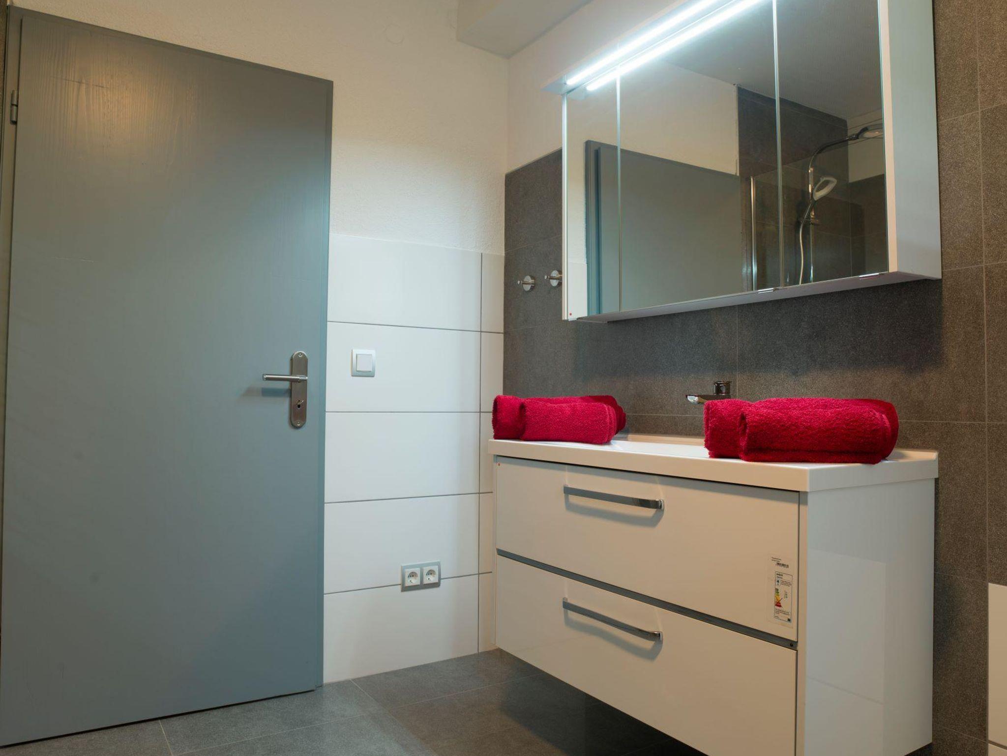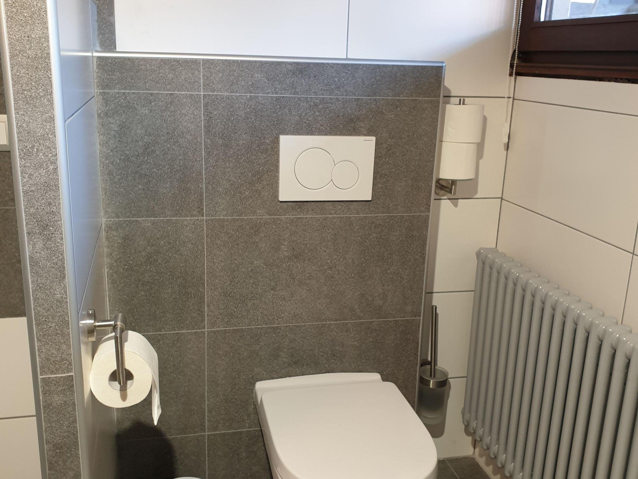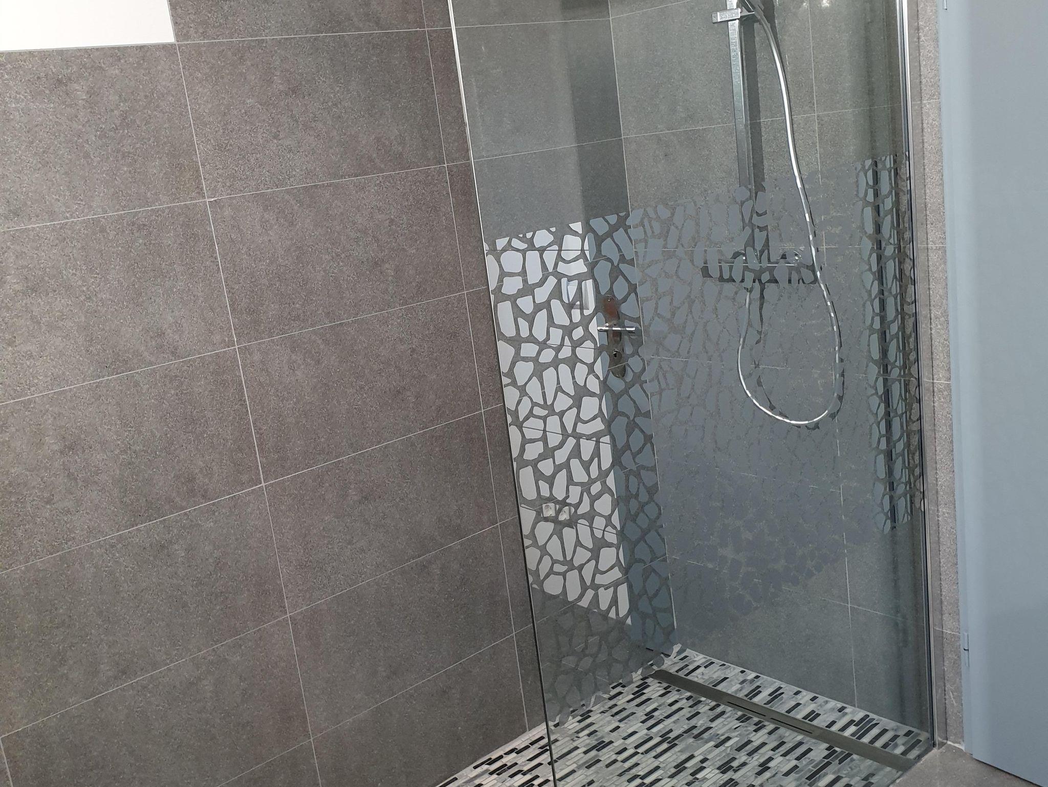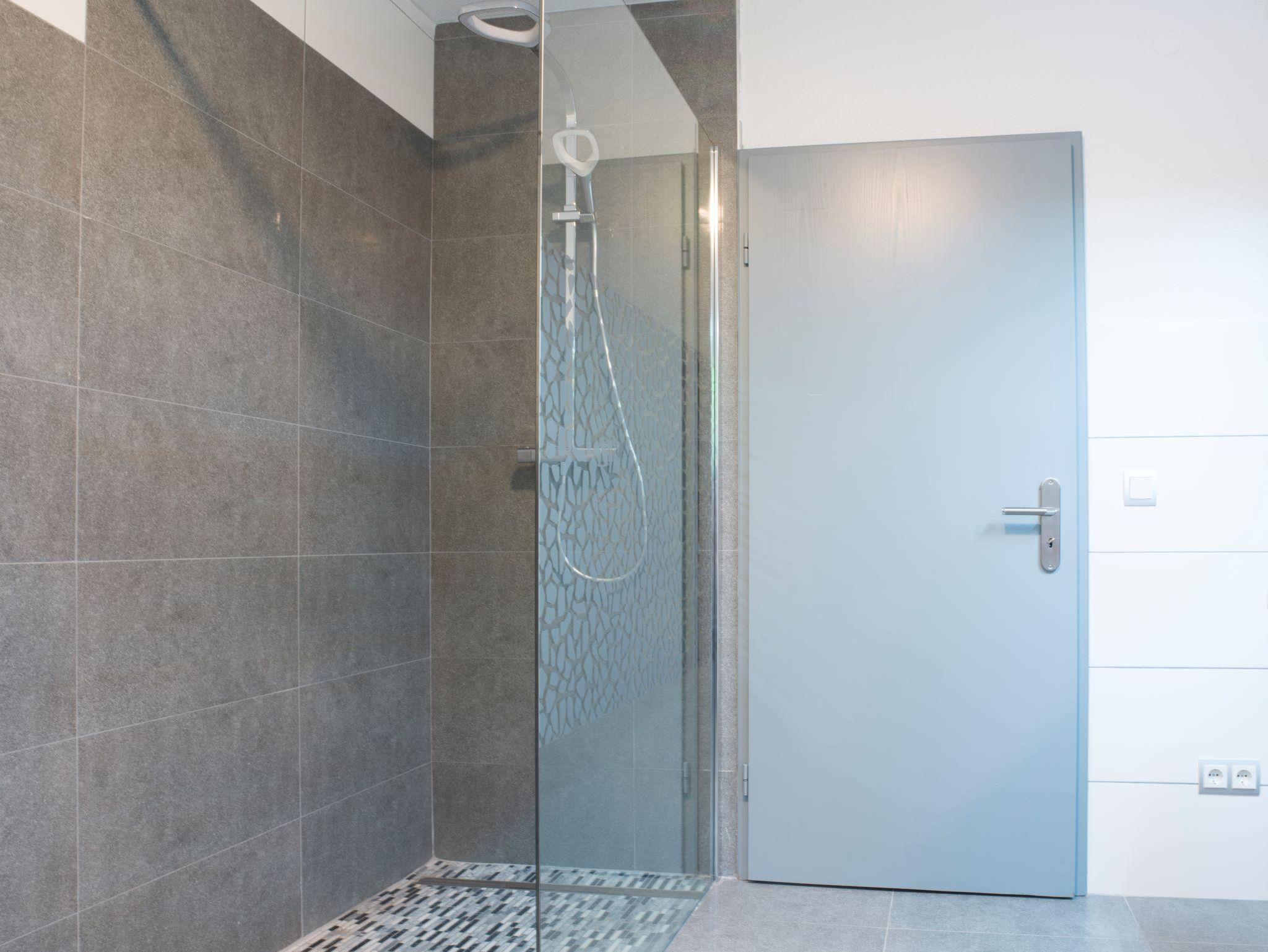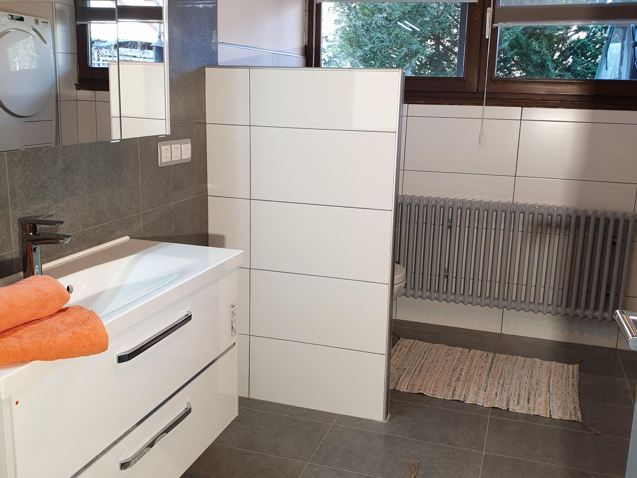 Ein neues Bad mit begehbarer Dusche, Waschmaschine & Trockner