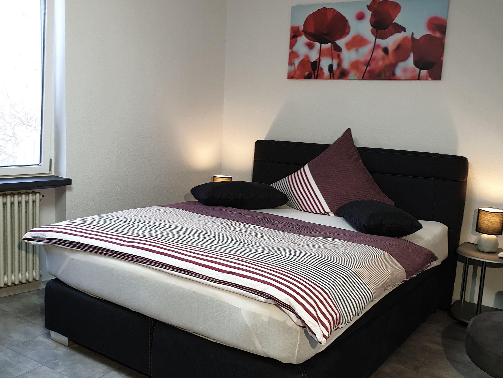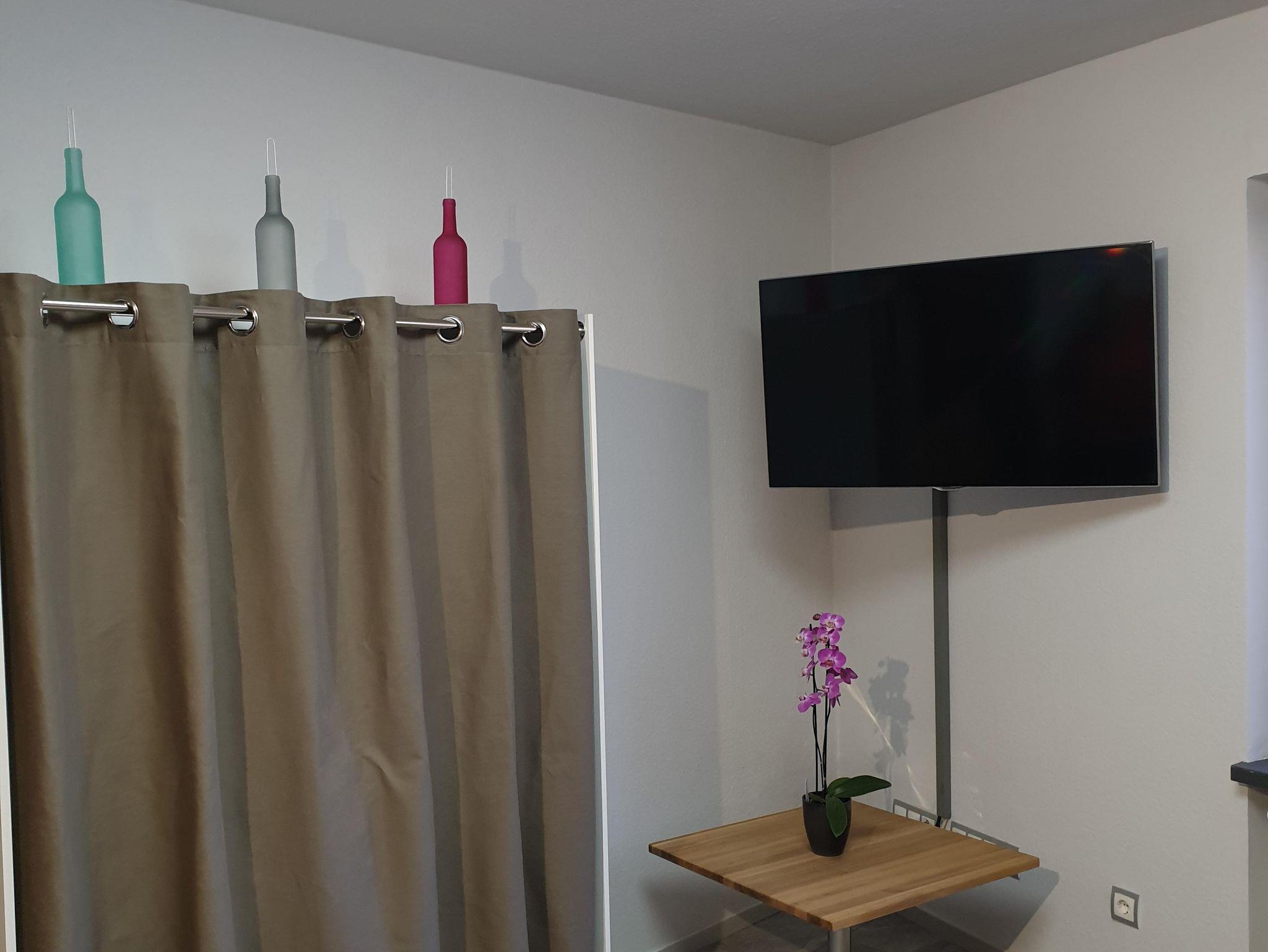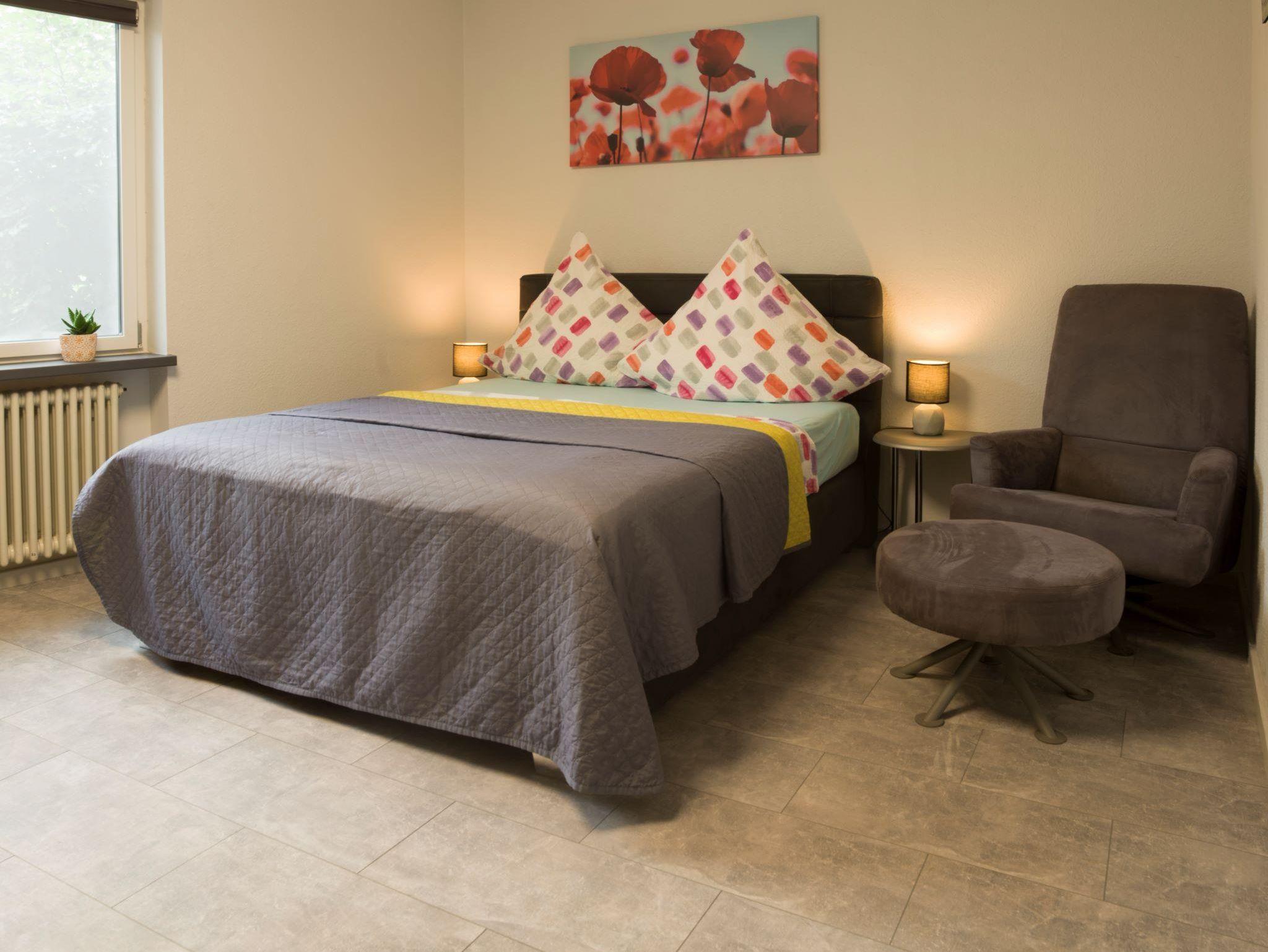 Studio mit neuem Boxspringbett, bequemem Sessel, gr. Flach-TV, Schreibtisch