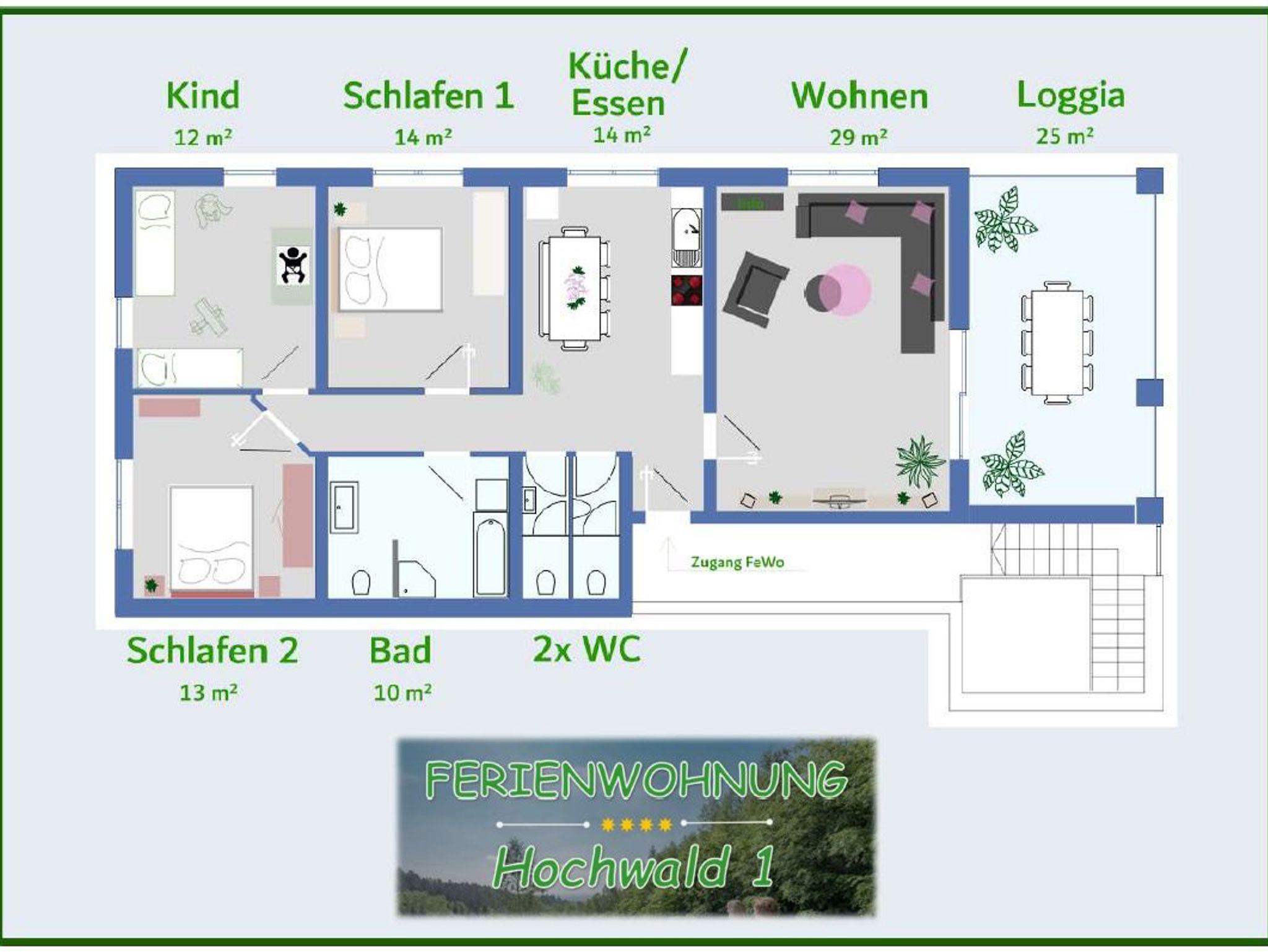 Die Lage der Ferienwohnung Hochwald 1 ist ebenfalls perfekt, um das lokale Leben und die Natur zu genießen. Ein großes Einkaufszentrum befindet sich nur 500 m entfernt, und eine Schnellladestation für Elektroautos sorgt dafür, dass Sie stets mobil bleiben.