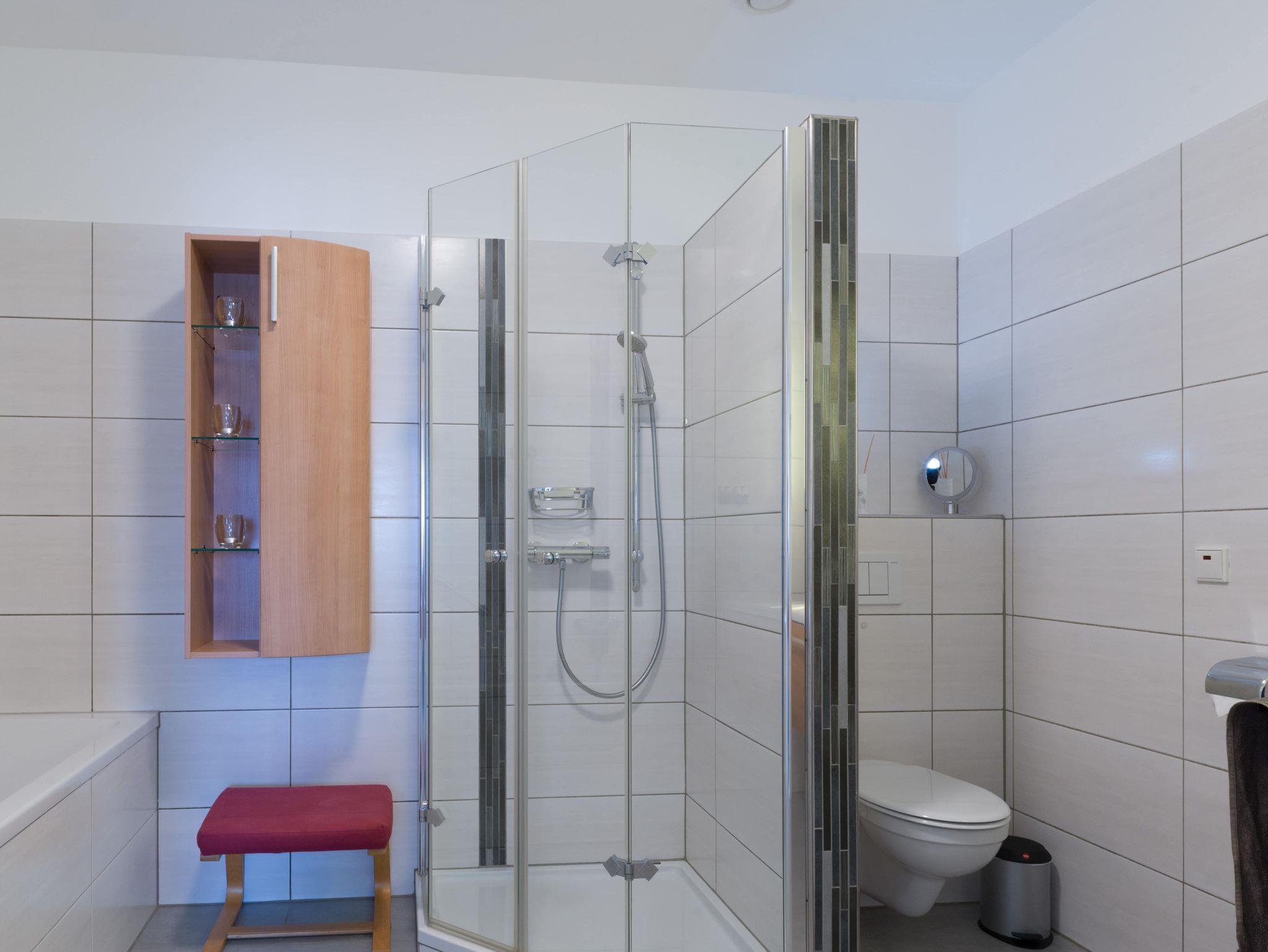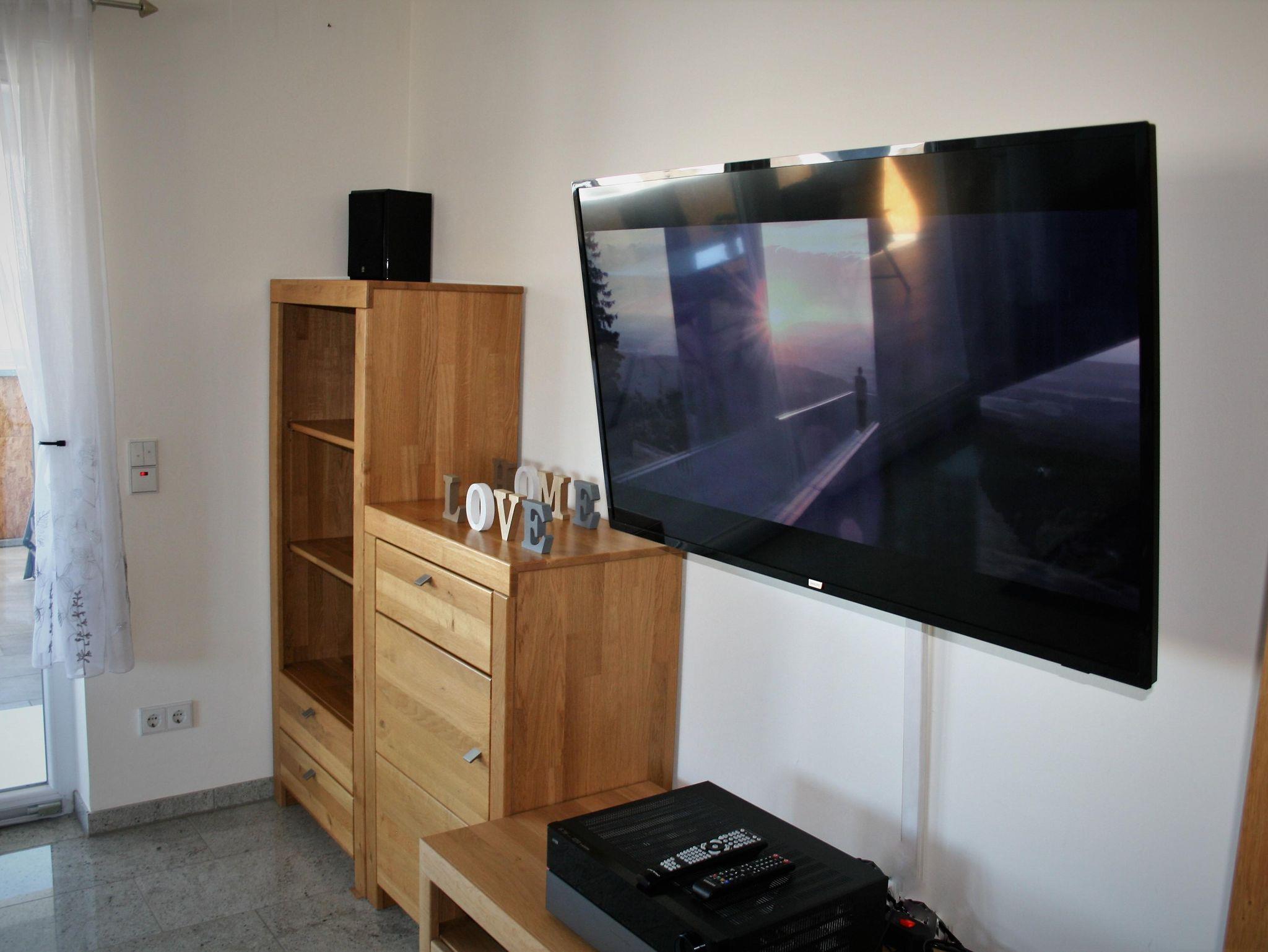 Highlight der Wohnung ist das sehr geräumige Wohnzimmer (30 m²), in dem Sie mit dem großen Flachbildschirm und Dolby-Surroundanlage echtes Kinofeeling erleben. Vom Wohnzimmer gelangen Sie mit direktem Zugang zur Außenloggia, auf der Sie die schöne Aussicht genießen können. Die komplett ausgestattete Küche mit großer Sitzgruppe lädt Sie zum gemeinsamen Kochen ein und lässt aufgrund Ihrer Ausstattung mit Kaffeevollautomat, Geschirrspüler, Kühlschrank inkl. Gefrierfach, Herd, Backofen, Mikrowelle, etc. keine Wünsche offen. Auch das geräumige Badezimmer ist für die Bettenanzahl ausgerichtet. Neben einer Dusche, Badewanne, Föhn, Waschmaschine und Trockner befinden sich noch zwei weitere „Ausweich-WCs“ in der Wohnung.