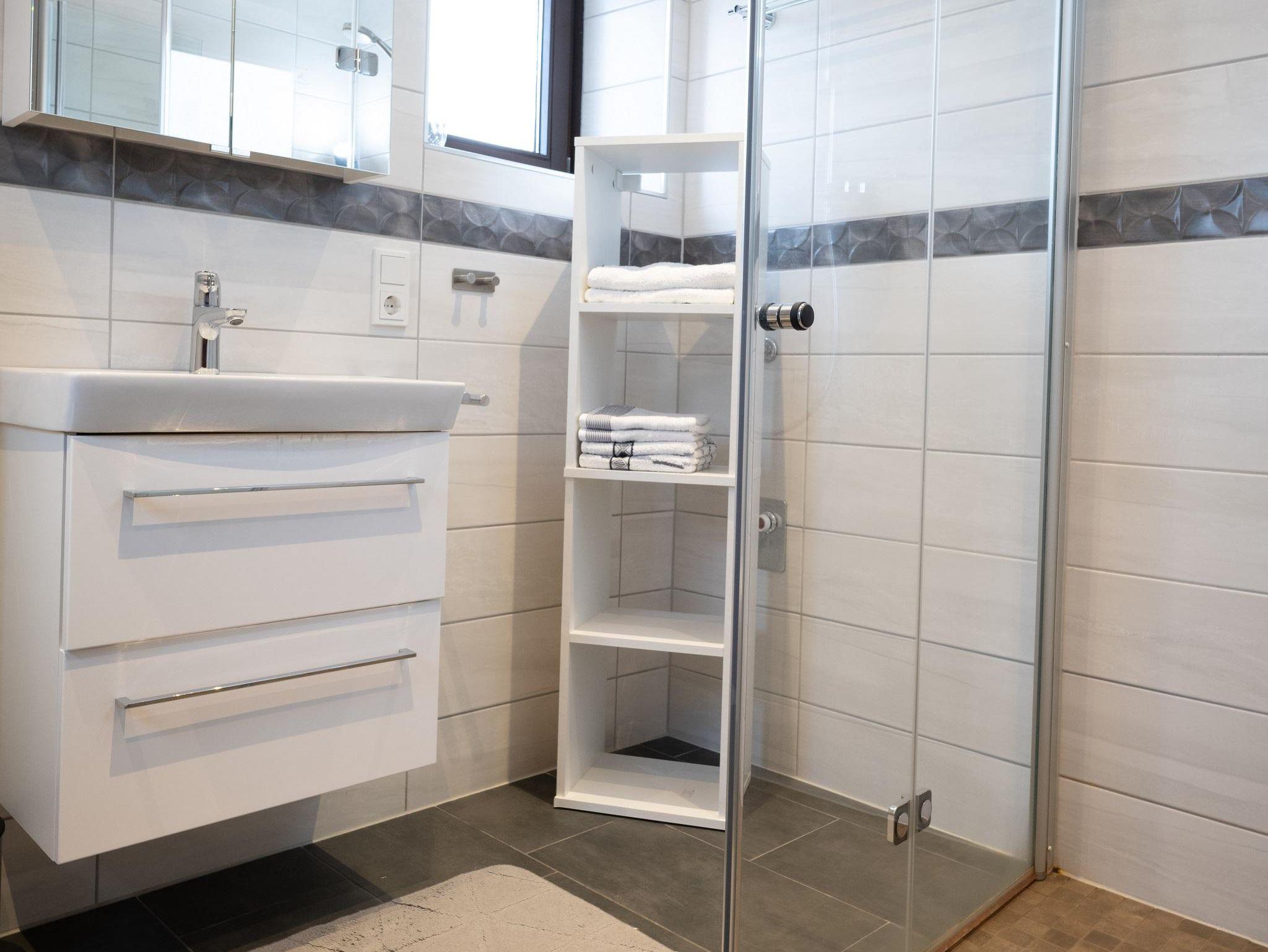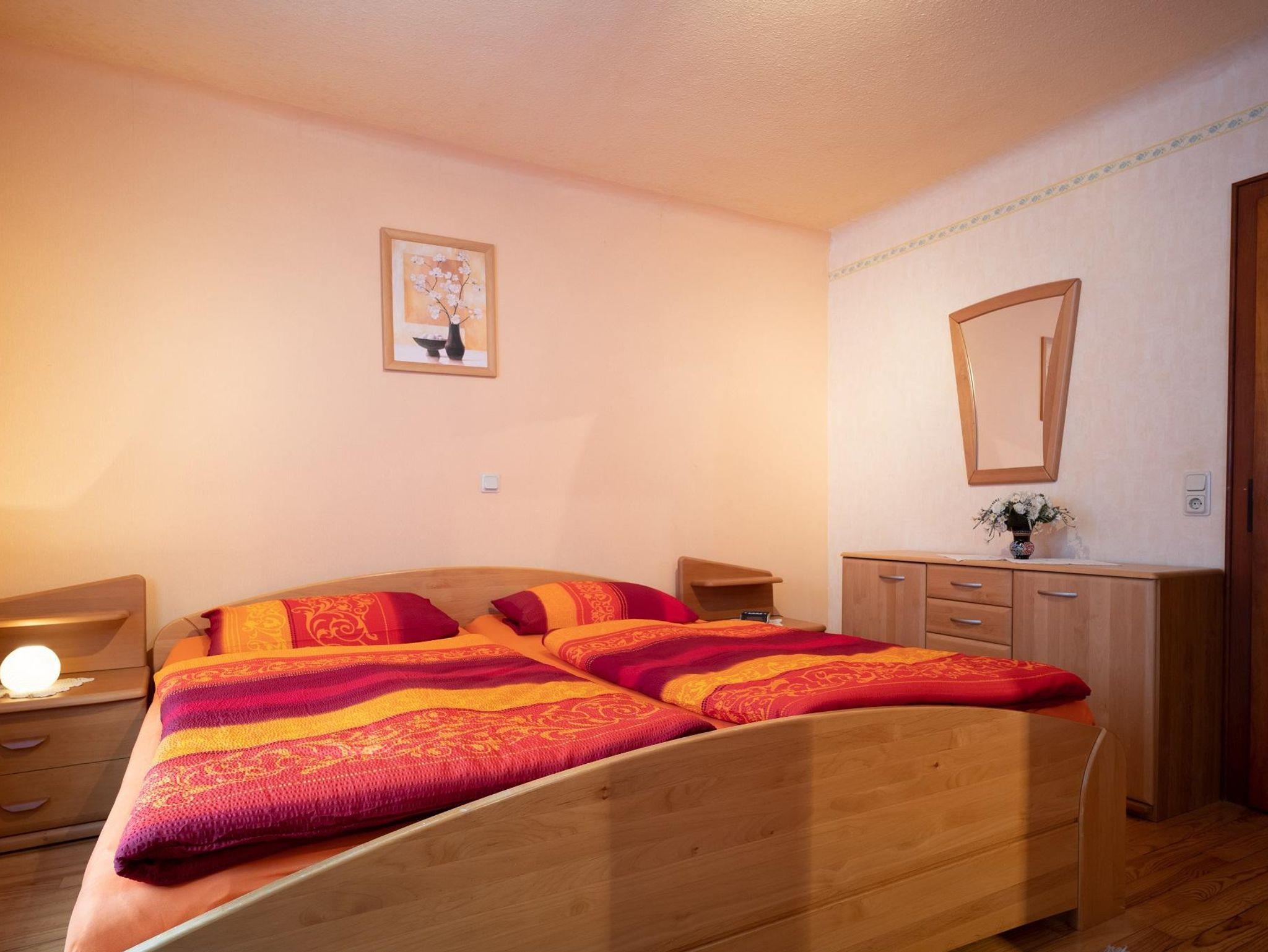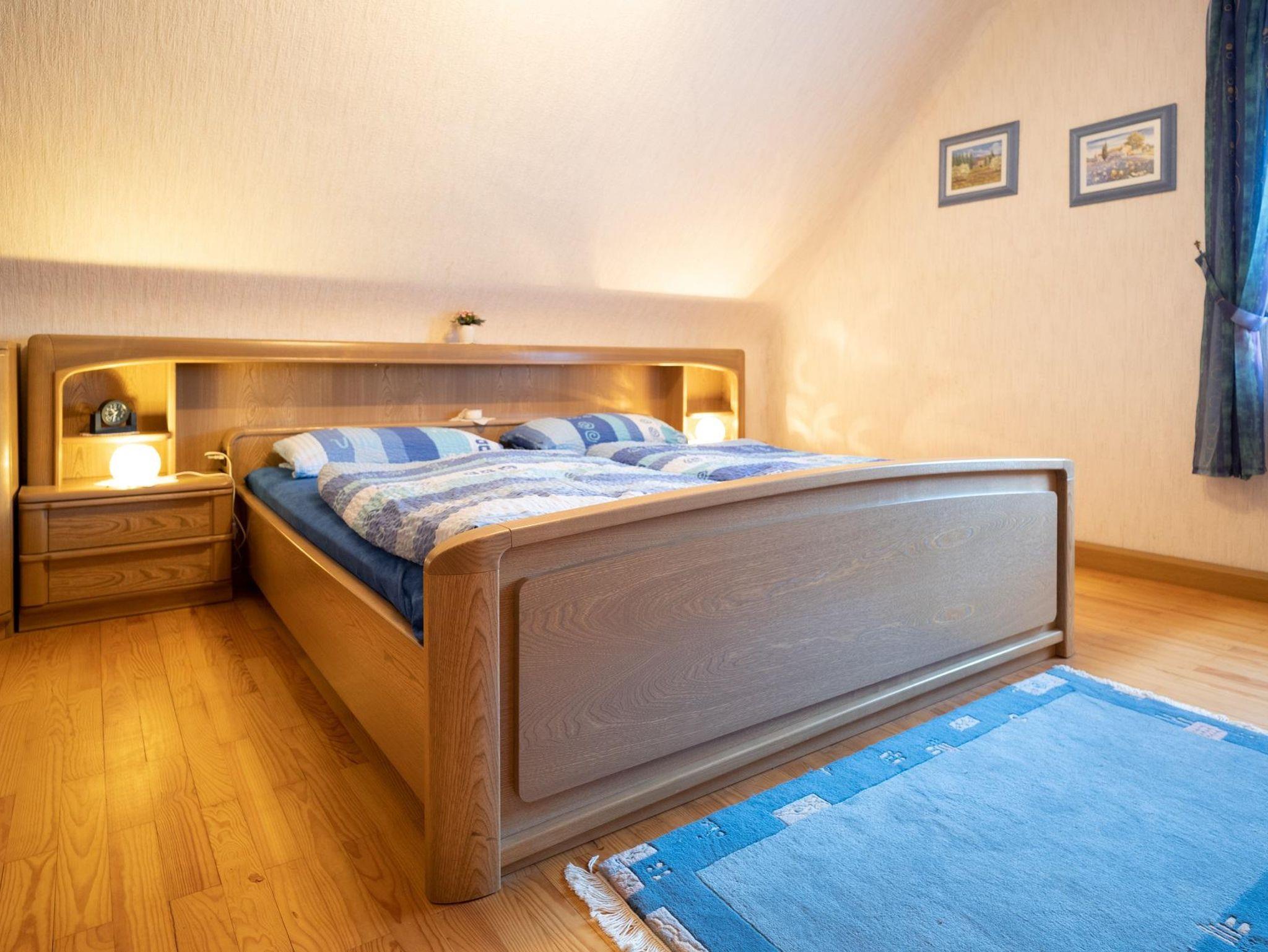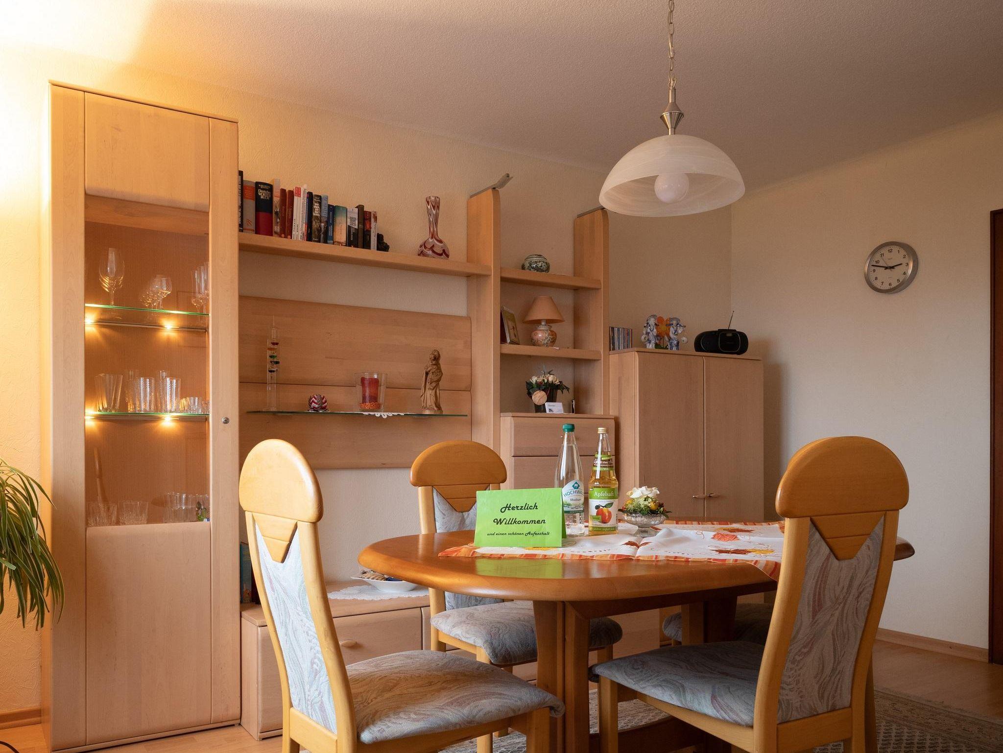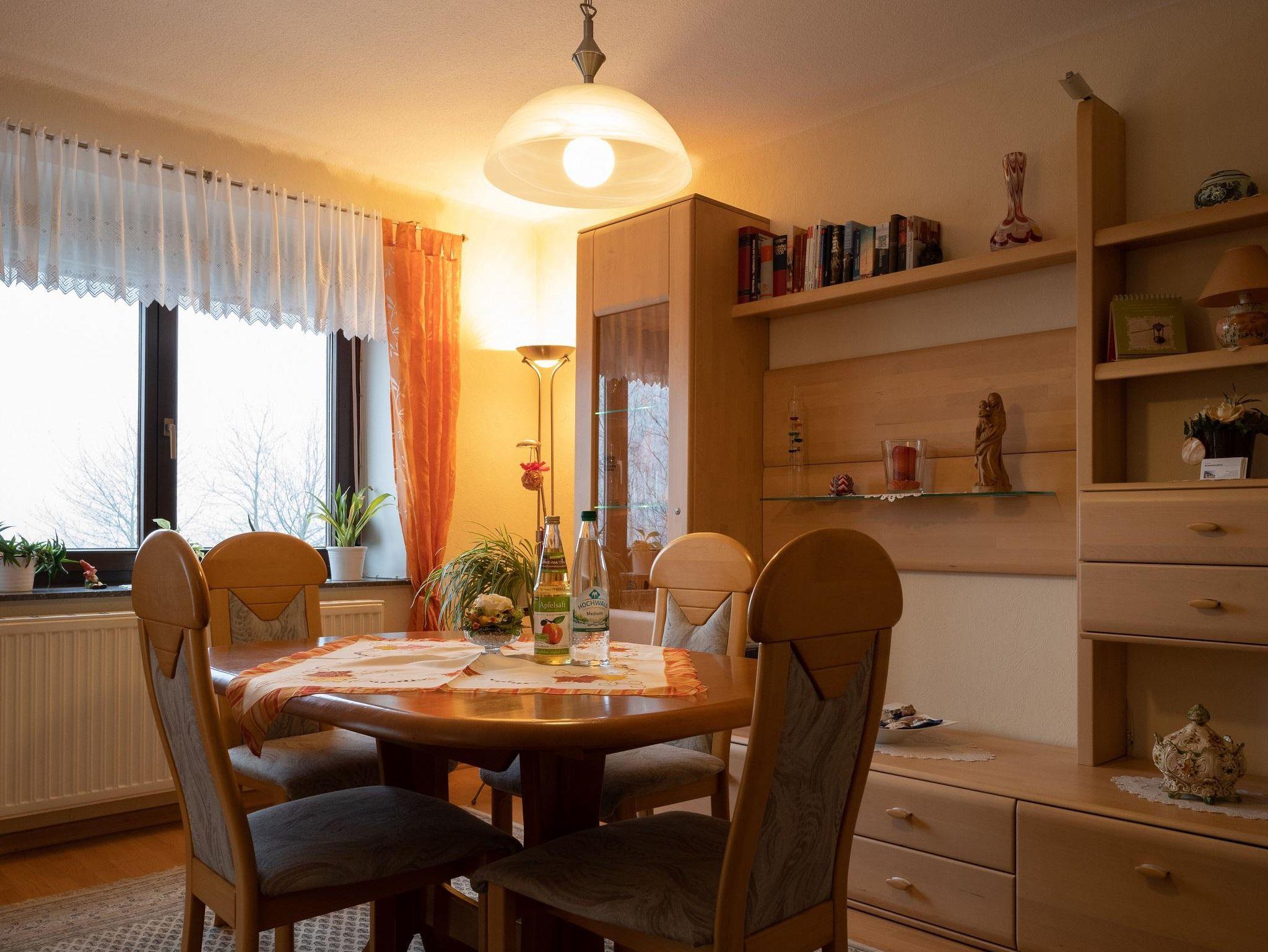 Das Ferienhaus bietet auf 85 qm mit alleinigem Eingang im Erdgeschoss 4 Zimmer mit Einbauküche und Bad sowie einem Balkon mit freiem Blick. Das Esszimmer ist mit einem Esstisch und 4 Stühlen ausgestattet. Im Sideboard befindet sich das wichtigste Essgeschirr. Das Wohnzimmer ist mit SAT-TV ausgestattet. Die Schlafzimmer verfügen über ein Doppelbett 2,00m x 2,00m im EG und ein Doppelbett 2,00m x 2,00m im 1.Stock mit großem Kleiderschrank sowie Kommode mit Spiegel. Die voll ausgestattete Einbauküche ist mit einer Kaffeemaschine (Senseo), Backofen, Toaster, Wasserkocher, Geschirrspülmaschine mit vorhandenen Tabs, Pfannen und Töpfe, Geschirr und allem für die Essenzubereitung notwendigen Küchengeschirr bestückt. Im Badezimmer sind Waschbecken, WC und behindertengerechte Dusche vorhanden.