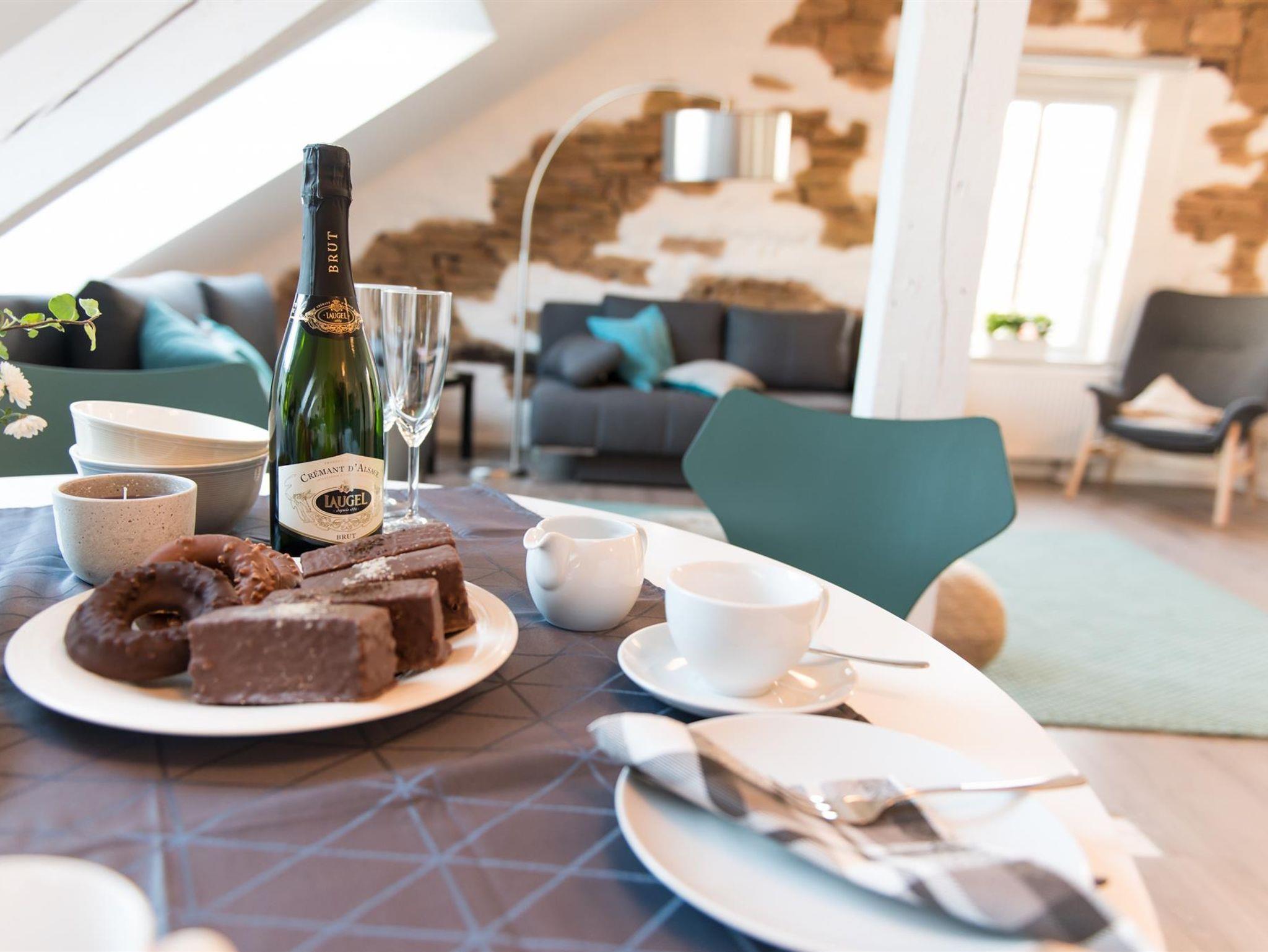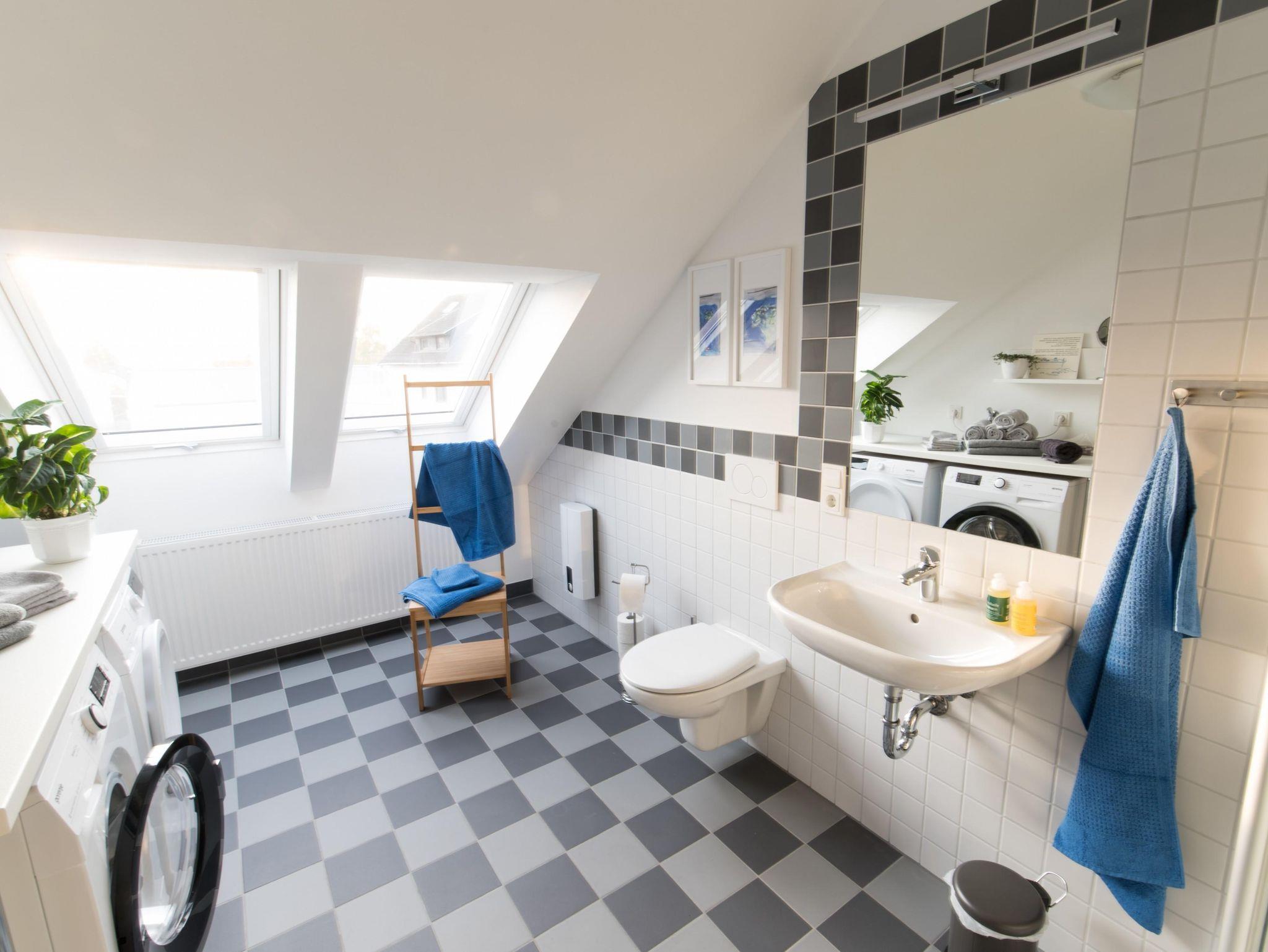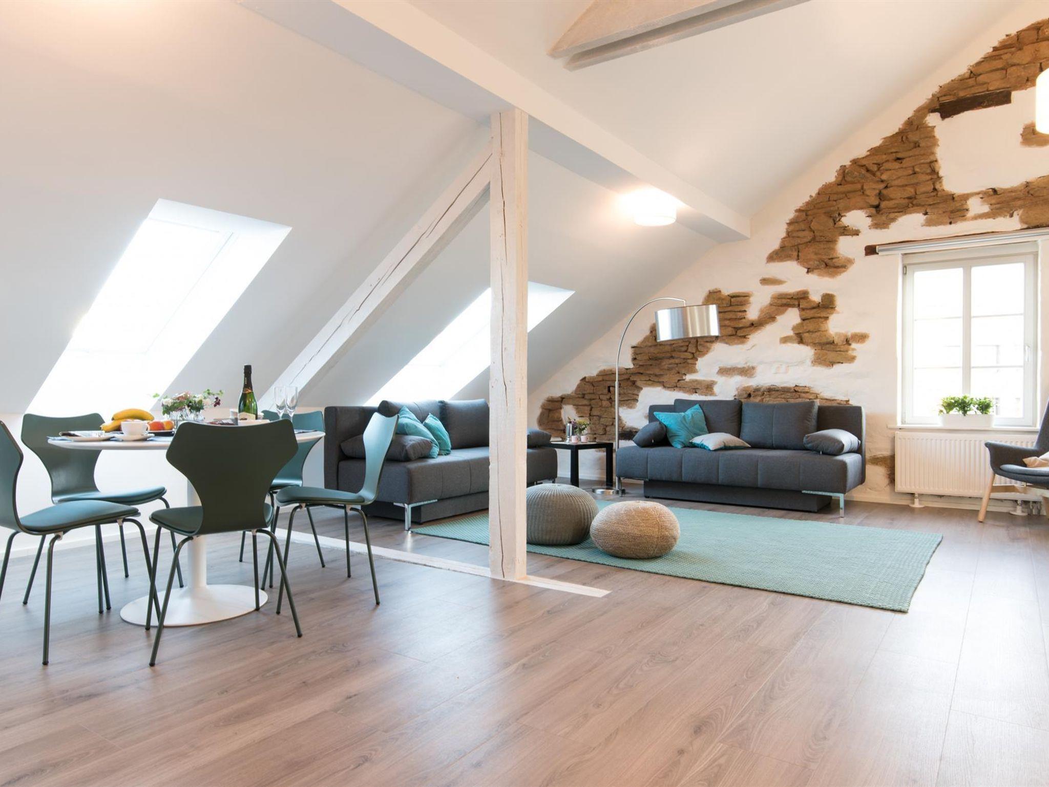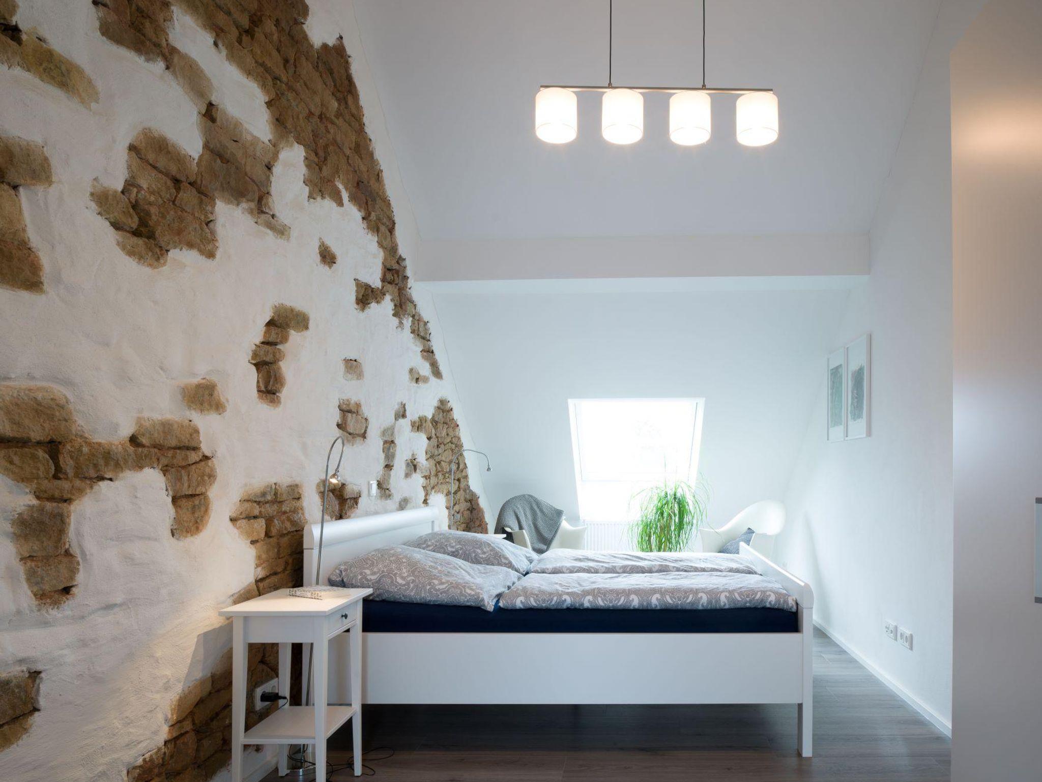 Unser Bücherloft ist eine neurenovierte und neumöbilierte schöne helle und freundliche Dachwohnung. Es ist die gesamte Fläche unseres Hauses mit offener Dachspitze. Alle Fenster der Wohnung sind verdunkelbar. Ein Schlafzimmer mit Doppelbett, Sitzecke und Schrank, Platz für Babyreisebett. Das große Wohnzimmer ist mit zwei Schlafcouchen (1,40 x 2,00 Meter) ausgestattet und WLAN, LAN, TV (55 Zoll Bildschirm), Bluetooth Audiosystem. Einbauküche mit Essecke, Leseecke mit Schreibtisch, Badezimmer mit Dusche/WC. Auch ein kleiner Abstellraum ist vorhanden.