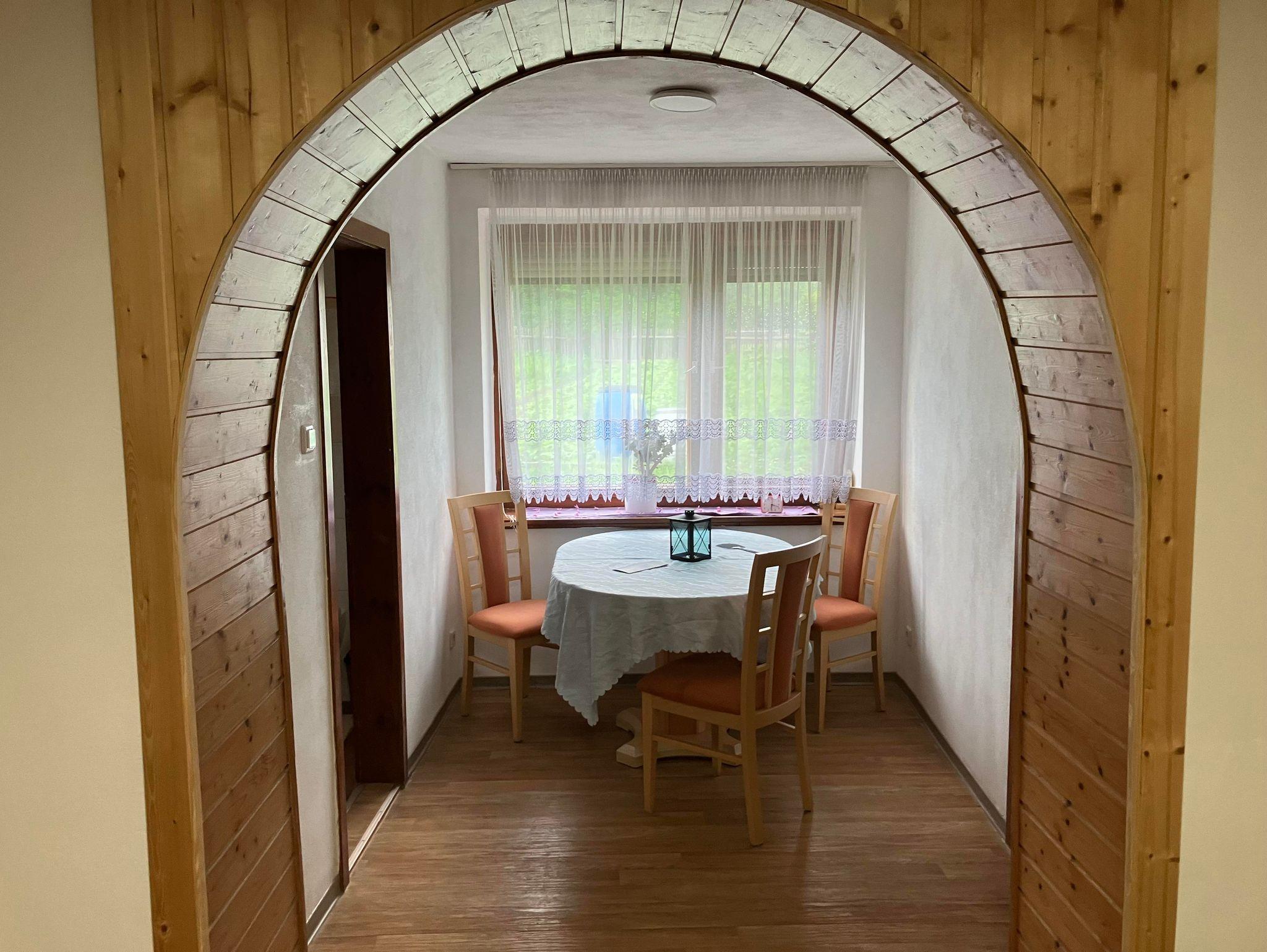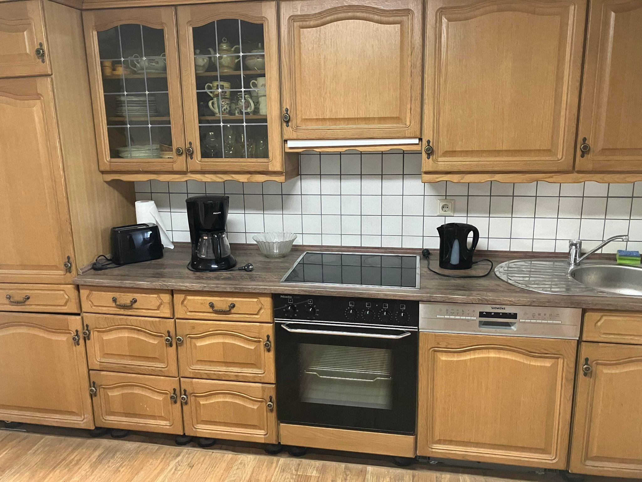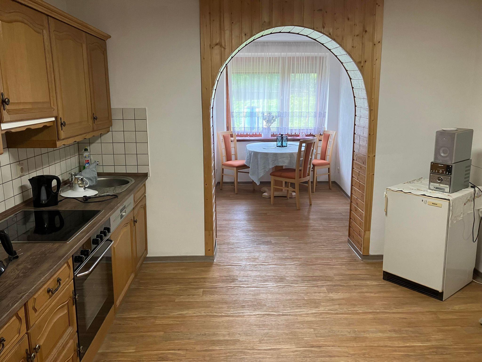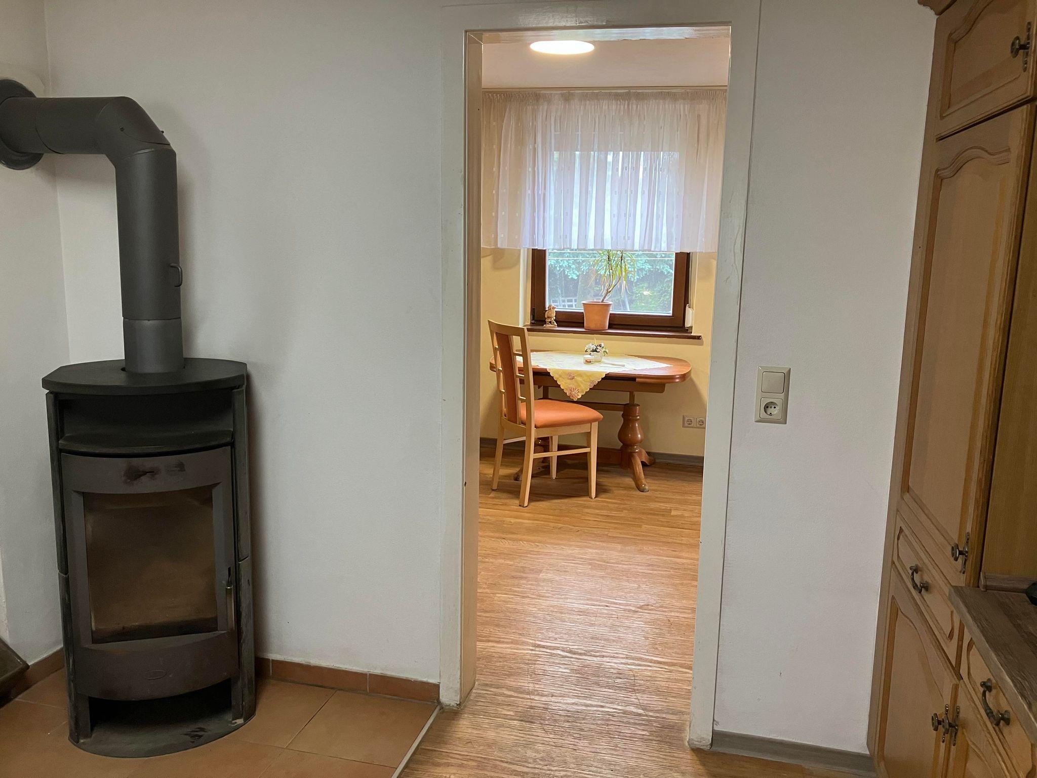In unserer Ferienwohnung befindet sich eine Essecke mit Kühlschrank inkl. Eisfach. Mit Küchenzeile einen Herd, Backhofen, Kaffeemaschine, Wasserkocher, Radio, Geschirr und eine Spülmaschine. Das Wohnzimmer mit einem zusätzlichen Einzelbett, Schlafsofa, TV und Holzofen lädt zum Verweilen ein. Im Schlafzimmer steht 1 Doppelbett bereit, sowie ein weiteres Zimmer mit einem Einzelbett. Das Badezimmer ist mit Dusche, WC, Spiegelschrank ausgestattet. Die Waschmaschine und gegebenenfalls auch ein Trockner können genutzt werden.