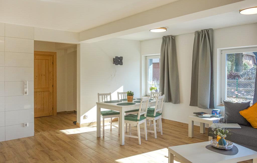 Der er lagt op til en skøn ferie for to i denne fine, kompakte ferielejlighed, som er placeret i Loxsted. Lejligheden er veludstyret og har alt, hvad I skal bruge for at have det rart og holde fri. Efter en aktiv dag kan I lægge fødderne op på sofaen, trylle lækre retter sammen i køkkenet og nyde aftenerne med bræt- og kortspil. Den åbne terrasse lægger op til dejlige stunder udendørs om sommeren, hvor I kan nyde jeres måltider i solen.