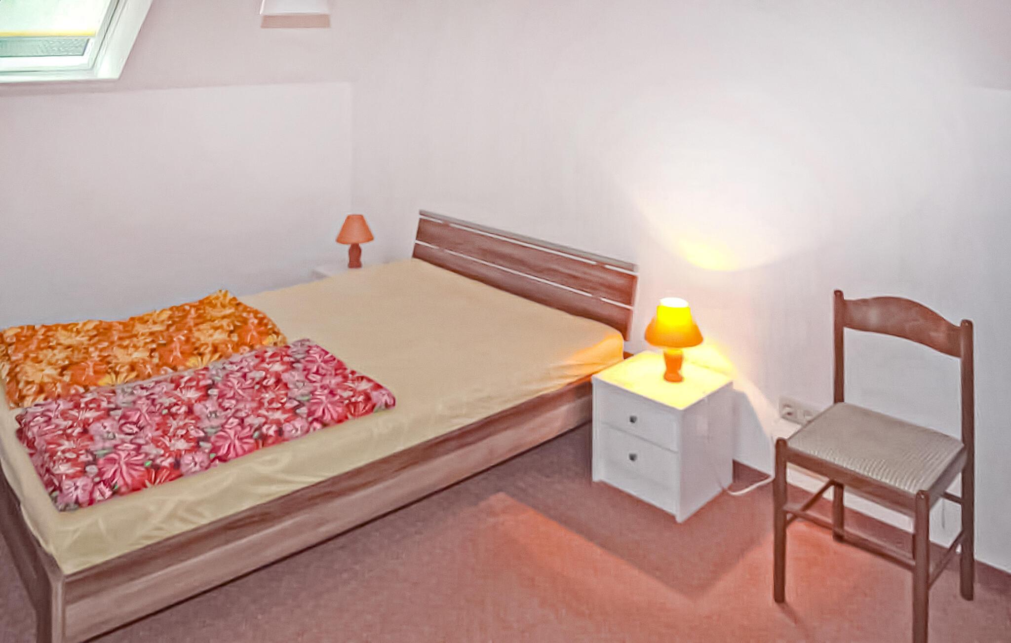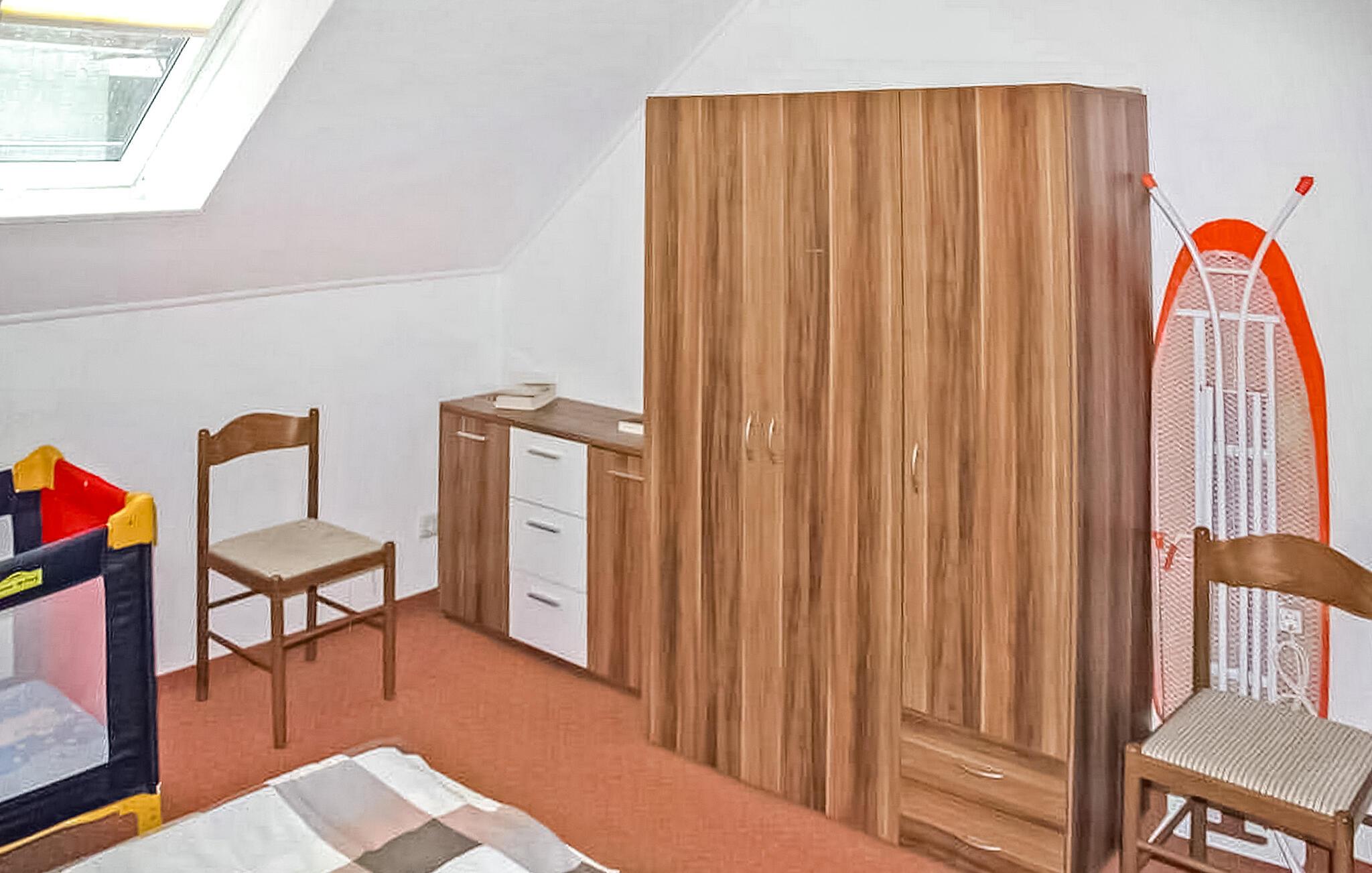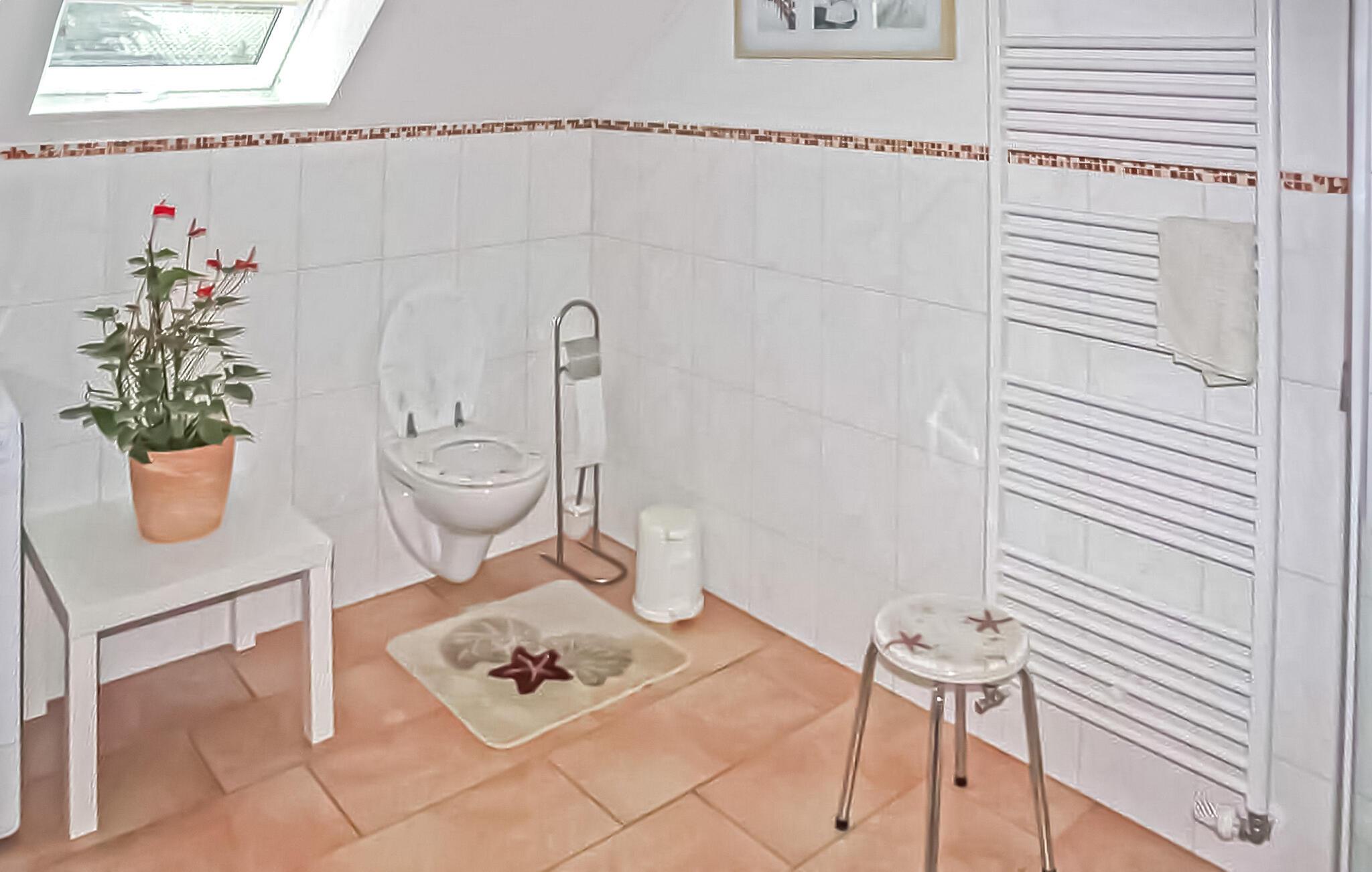 Den rummelige, komfortable lejlighed ligger på øverste etage i en beboelsesejendom tæt på stranden. Adgang via en separat udvendig trappe. Lejligheden har en stue (polstret opholdsområde, stort fladskærms-tv, hi-fi-system), 2 soveværelser (hver med 1 dobbeltseng, 1 soveværelse med en ekstra polstret liggestol, en barneseng, der kan tilføjes), køkken ( spiseplads, komplet tekøkken med el-komfur og opvaskemaskine), badeværelse med bruser/toilet og vaskemaskine, centralvarme. Der er også et udendørs opholdsområde med en grill, et cykelrum, WiFi, en gratis strandstol og en parkeringsplads i carporten. Den samlede pris inkluderer sengelinned, vand- og energiforbrug samt slutrengøring. Håndklæder skal medbringes. Kæledyr er ikke tilladt i denne ejendom. Lubmin er en badeby på Greifswalder Bodden i et smukt skovlandskab. Der er cirka 20 km til hansestaden Greifswald. Byen har en mole med anløbsbro, et moderne sportscenter, en bred sandstrand (også nudist), cykel- og vandcykeludlejning samt forskellige spise- og salgsfaciliteter. Ponyridning og vognture er mulige.
