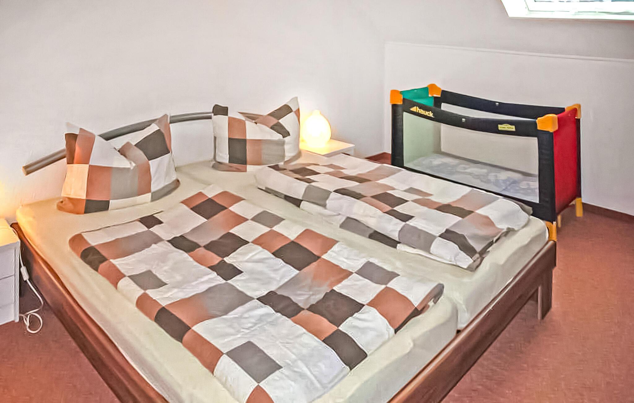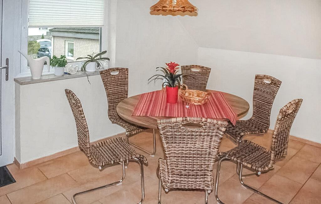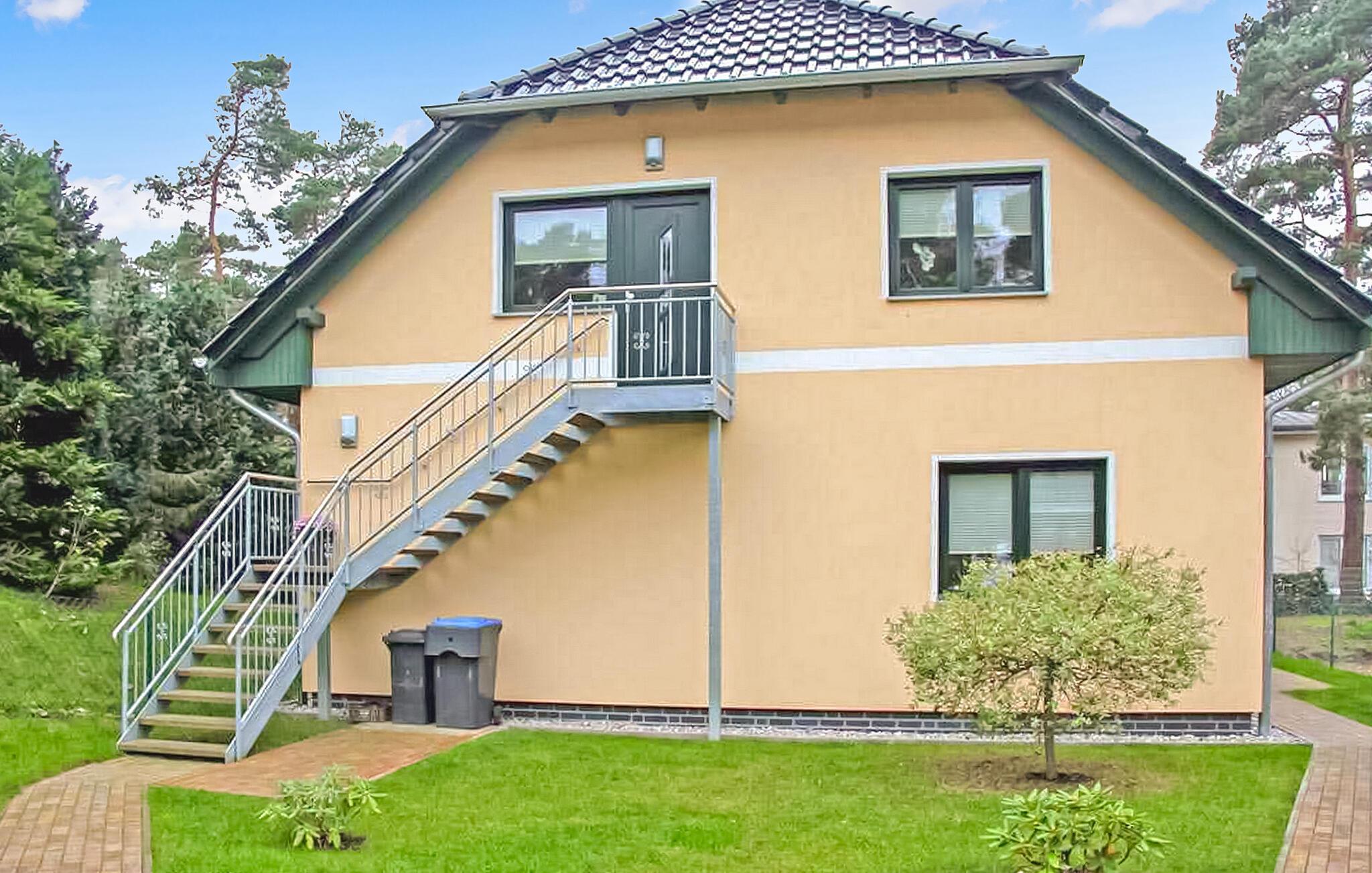 Den rummelige, komfortable lejlighed ligger på øverste etage i en beboelsesejendom tæt på stranden. Adgang via en separat udvendig trappe. Lejligheden har en stue (polstret opholdsområde, stort fladskærms-tv, hi-fi-system), 2 soveværelser (hver med 1 dobbeltseng, 1 soveværelse med en ekstra polstret liggestol, en barneseng, der kan tilføjes), køkken ( spiseplads, komplet tekøkken med el-komfur og opvaskemaskine), badeværelse med bruser/toilet og vaskemaskine, centralvarme. Der er også et udendørs opholdsområde med en grill, et cykelrum, WiFi, en gratis strandstol og en parkeringsplads i carporten. Den samlede pris inkluderer sengelinned, vand- og energiforbrug samt slutrengøring. Håndklæder skal medbringes. Kæledyr er ikke tilladt i denne ejendom. Lubmin er en badeby på Greifswalder Bodden i et smukt skovlandskab. Der er cirka 20 km til hansestaden Greifswald. Byen har en mole med anløbsbro, et moderne sportscenter, en bred sandstrand (også nudist), cykel- og vandcykeludlejning samt forskellige spise- og salgsfaciliteter. Ponyridning og vognture er mulige.