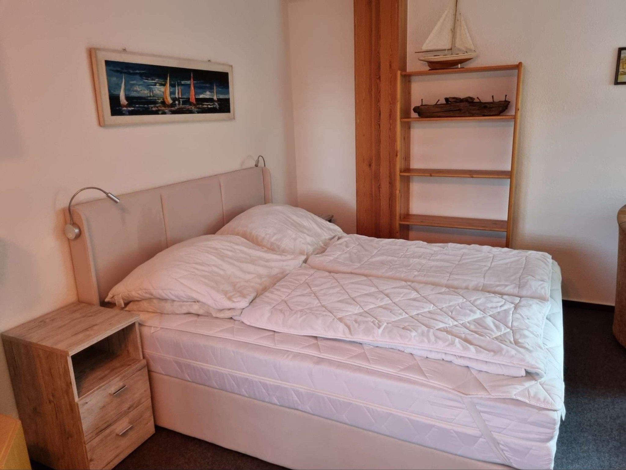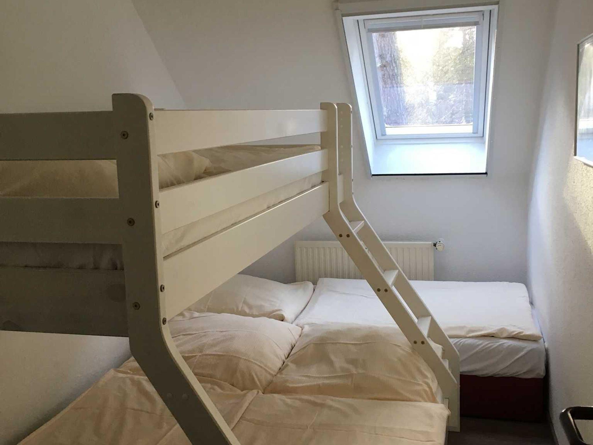 1 Einzelbetten 0,90 x 2,00 m, 1 Etagenbett 1,40 x 2,00 m unten und 0,80 x 2,00 m oben (für 3 Personen), 1 kleiner Kleiderschrank