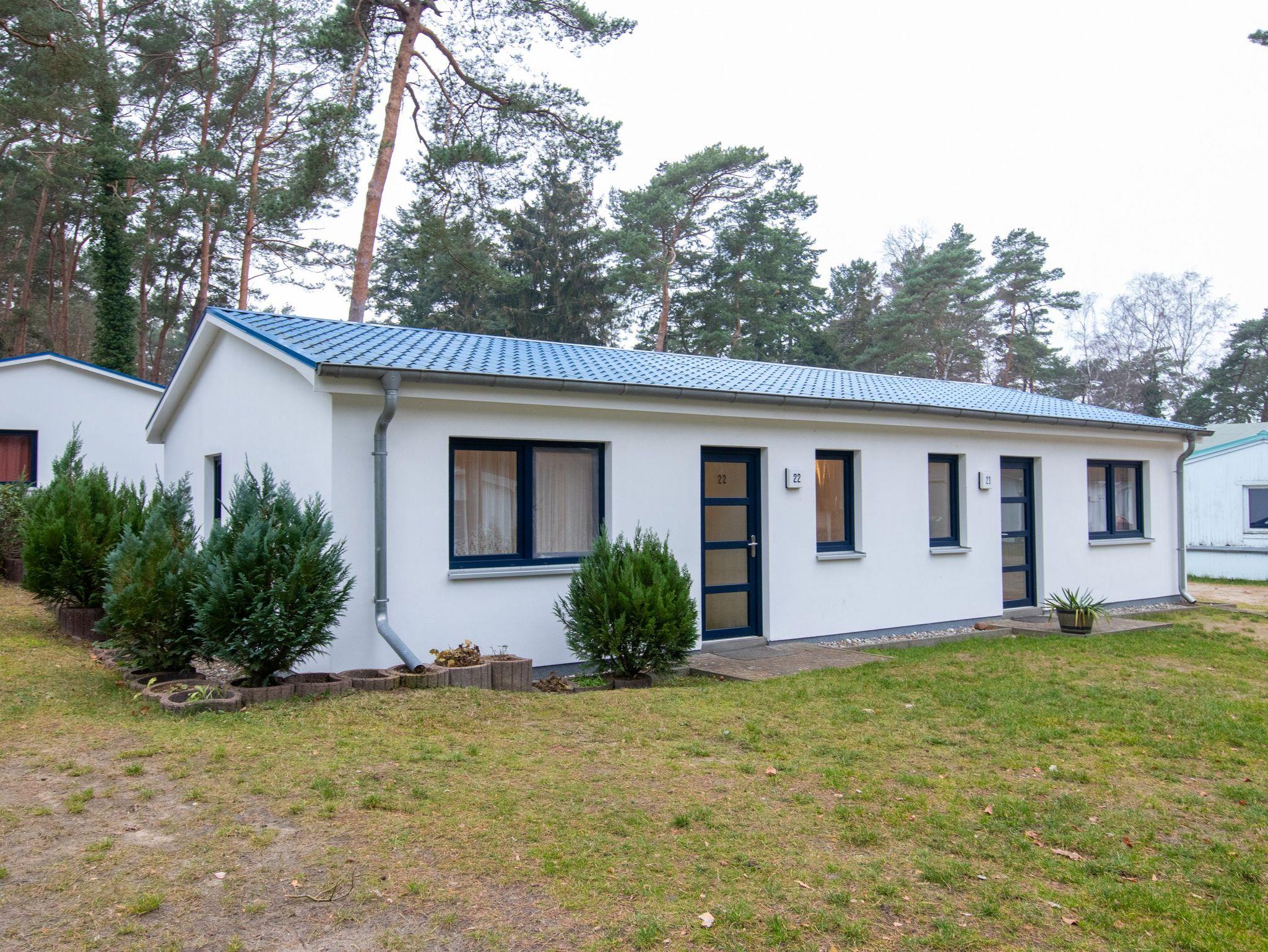 Das einzeln stehende Ferienhäuschen mit Terrasse und Blick zum Wald verfügt über ein Wohnzimmer mit Miniküche, ein separates Schlafzimmer, Flur und Bad.