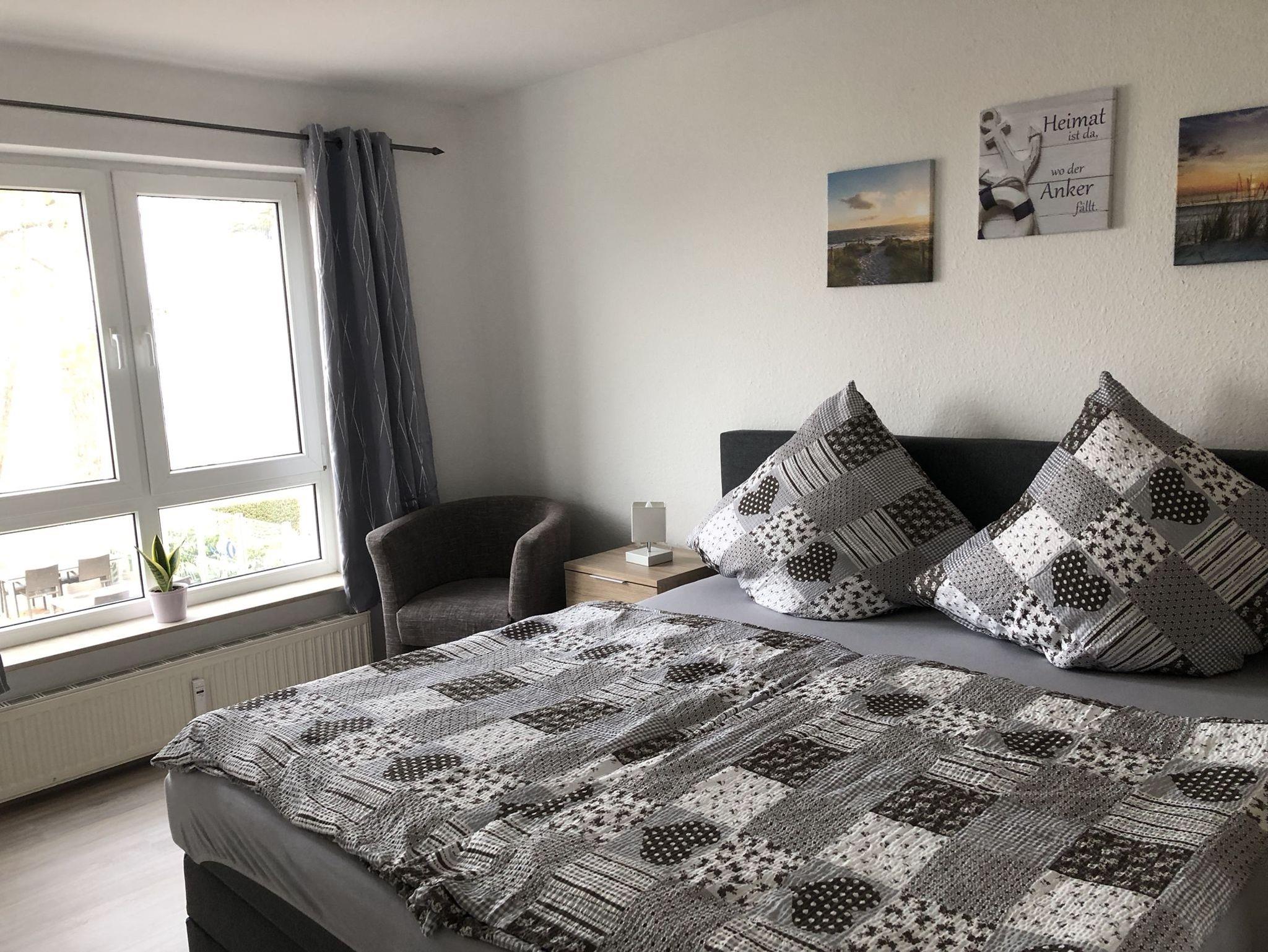 Die Ferienwohnung 2 befindet sich in der Ferienanlage Blaumuschel im 1. Obergeschoss über dem Restaurant und verfügt über direkten Meerblick. Sie ist geschmackvoll und modern eingerichtet und bietet außerdem einen Balkon.