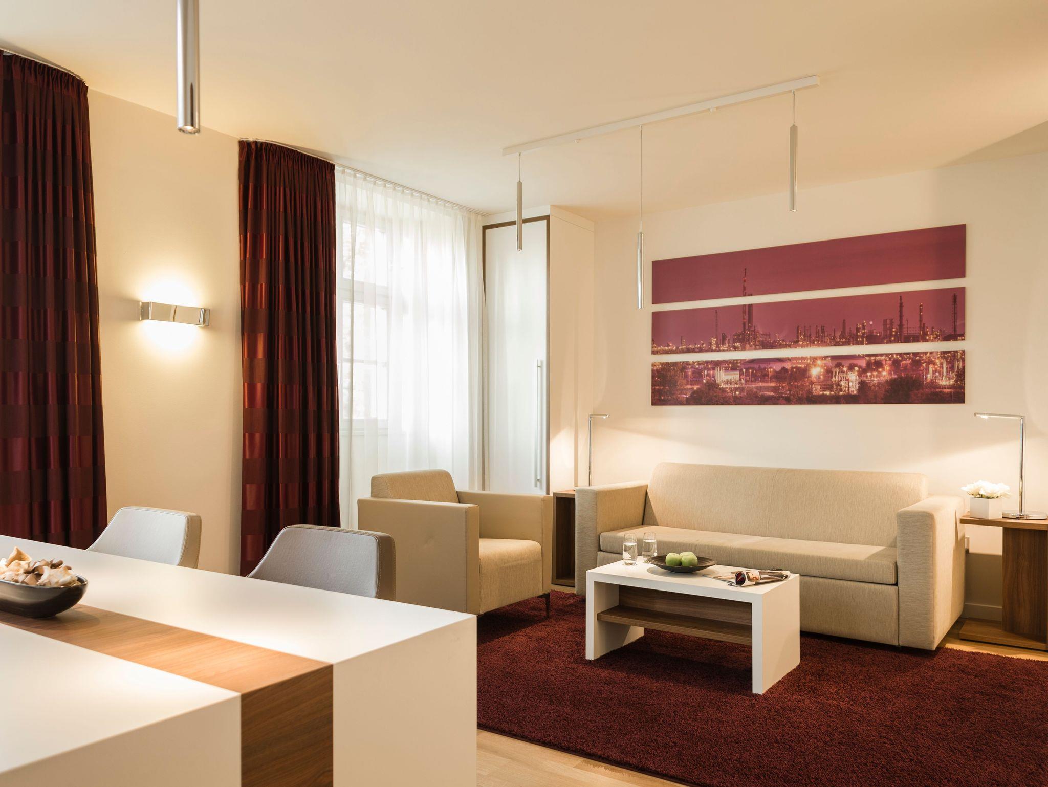 Die Living-Apartments im Herzen von Ludwigshafen in wunderschöner, grüner Umgebung liegen nur einen Steinwurf von der BASF Zentrale entfernt. Im direkt angrenzenden BASF Luxushotel Rene Bohn können Apartmentgäste zum reduzierten Preis von 25 Euro ein Frühstück der Superlative genießen. Auch Gästewäsche kann im Rene Bohn gegen Berechnung abgegeben werden. Die Anbindung an das öffentliche Verkehrsnetz ist hervorragend und Sie erreichen schon nach wenigen Minuten die Metropolen Mannheim oder Heidelberg. Aber auch die wunderschöne Pfalz gilt es zu entdecken. Lassen Sie ihren Wagen auf den Apartmenteigenen Parkplätzen stehen und besuchen eines der zahlreichen Weinfeste. Egal ob Sie für einen Businesstrip die Metropole Ludwigshafen nutzen oder für einen privaten Kurzzeit oder Langzeitaufenthalt - die Living Apartments sind auf alle Fälle die richtige Adresse.