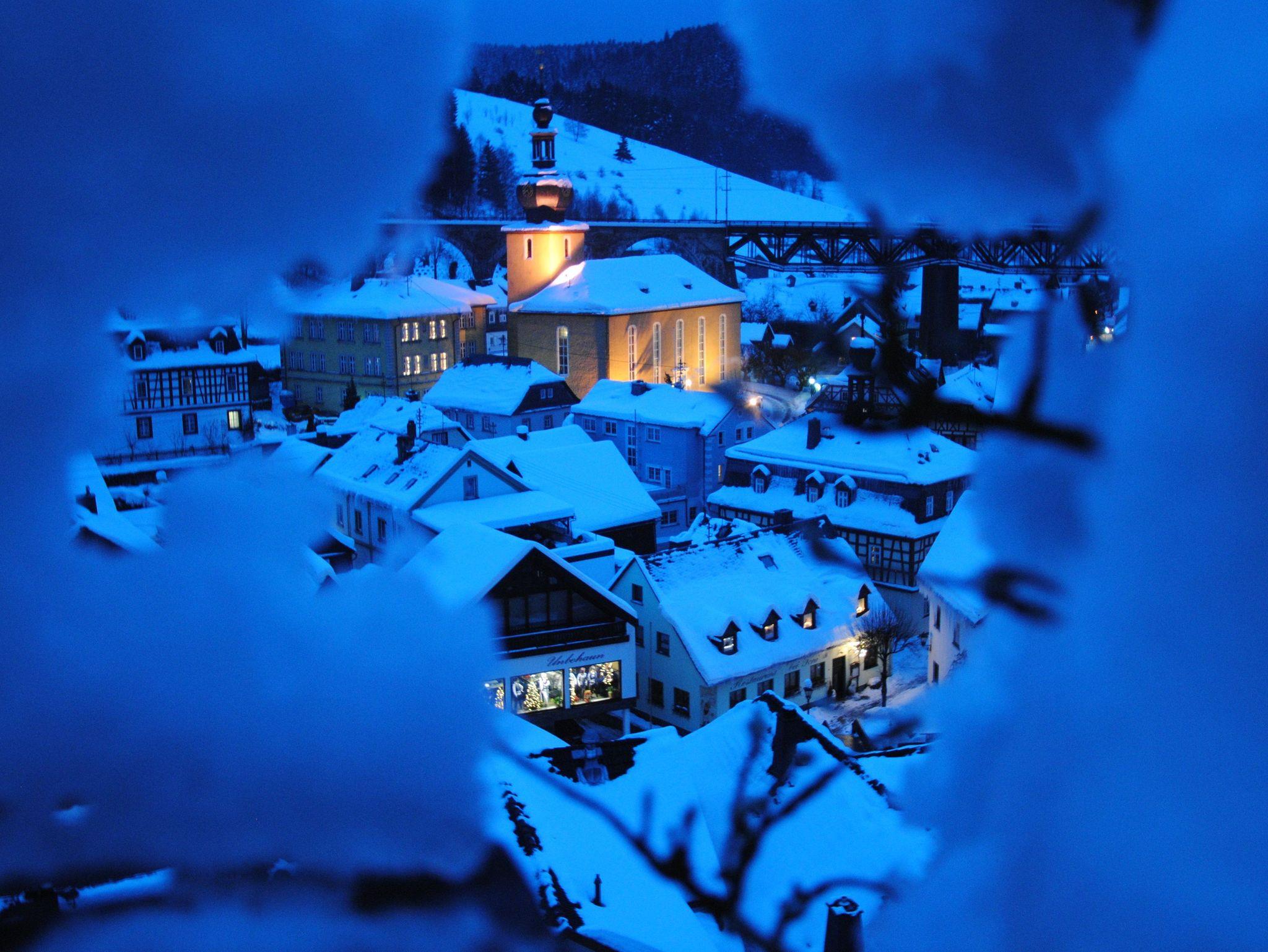 Erst einmal das kleine Städtchen selbst. Es liegt mit Bahnanschluss genau in der Mitte zwischen München und Berlin. In jede Richtung 330 km. Auch in der Mitte zwischen den benachbarten Kreisstädte Kronach und Saalfeld , je 35 km. Die große Eisenbahnbrücke hat eine interessante Geschichte. Sie wurde 1885 erbaut und überbrückt das Trogenbachtal. Wenn man Glück hat, sieht man auf ihr hin und wieder eine Dampflokomotive. Im Winter gibt es ein sehr schönes Farbspiel, wenn sich ein roter Zug vom weißen Schnee abhebt. Viel e Fotos für Magazine wurden von unserem Haus mit dem besten Blick auf die markante Brücke aus gemacht. Auch Fernsehteams nutzen die Lage unseres Hauses für Aufnahmen.