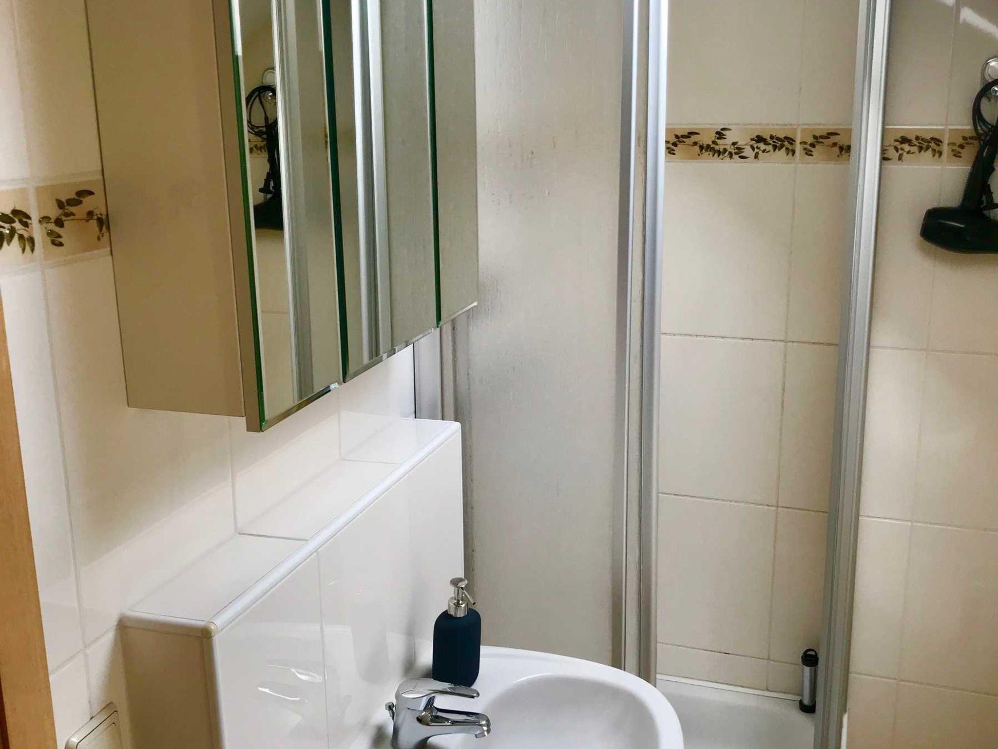 • Badmit Dusche/WC und einem Haartrockner/Fön