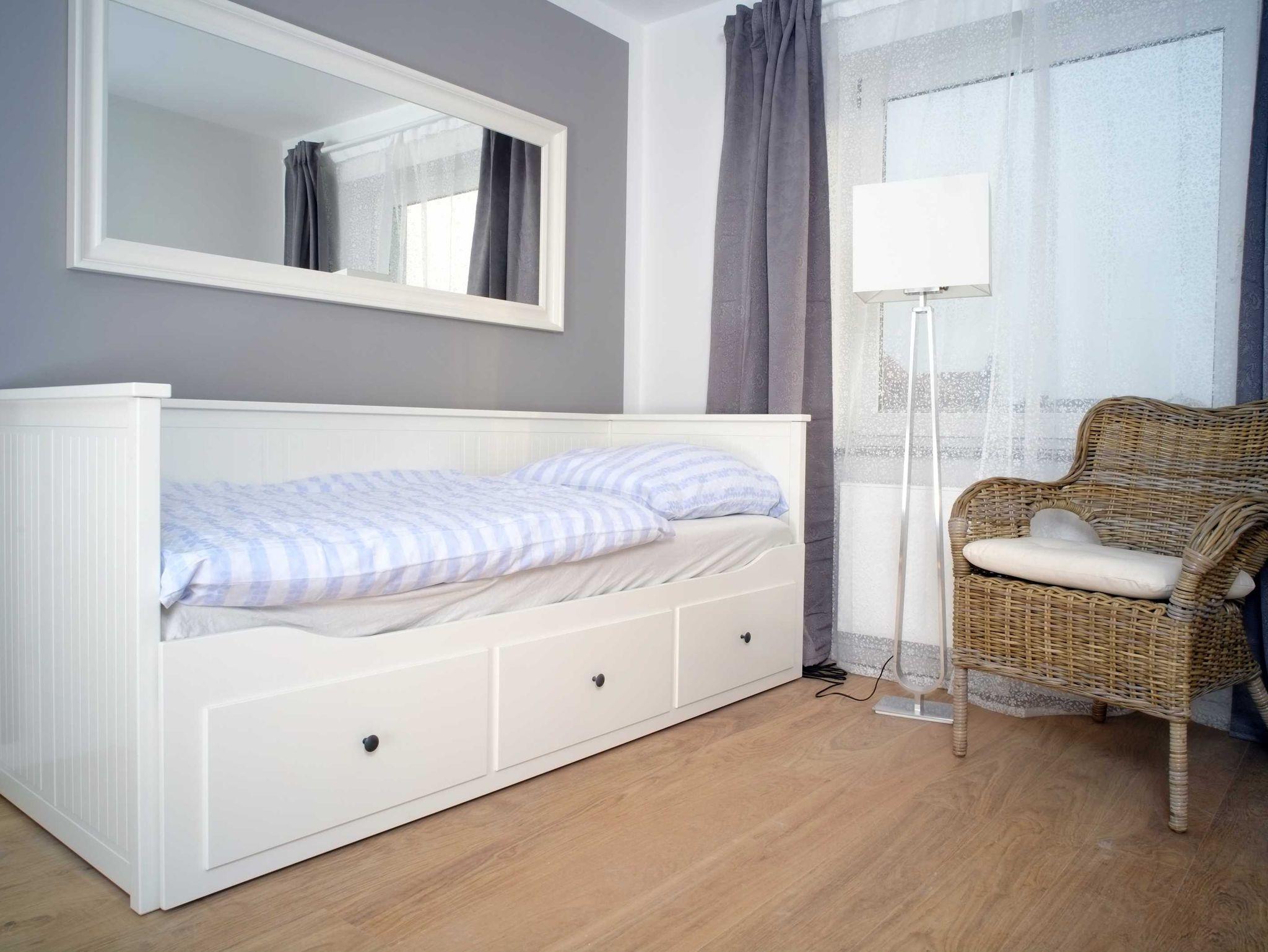 • Schlafzimmer: ein weiteres Einzelbett, welches ebenfalls zu einem Doppelbett ausziehbar ist