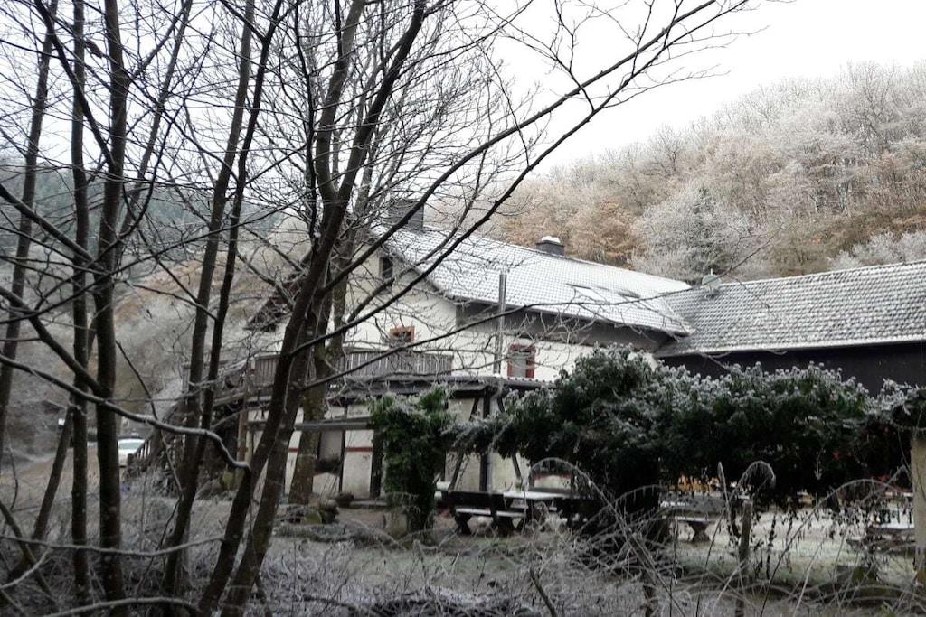 Neu erstelltes Appartement von 28 m² in idyllisch gelegener alter Mühle am Üßbach. Die Wohnung ist mit einer kompletten Küche ausgestattet, damit die Selbstversorgung möglich ist. Schlafzimmer und Bad mit Dusche sind vorhanden. In der Wohnküche befindet sich neben einem Essbereich auch eine Schlafcouch. Die Wohnung ist ideal für 2 Personen, kann aber durch die Schlafcouch ohne Probleme auch mit 4 Personen genutzt werden. Die Einrichtung ist aufgrund des Neubaus modern! Die dazugehörige Dachterrasse kann genutzt werden, Gartenmöbel sind vorhanden! Wir liegen direkt im Naturschutzgebiet am Rundwanderweg , von dort kann man viele Maare und umliegende Orte zu Fuß, per Fahrrad oder Pferd erreichen. Der Handyempfang ist nicht von jedem Anbieter vorhanden! Achtung: Nicht mit tiefergelegten Fahrzeugen erreichbar!!!