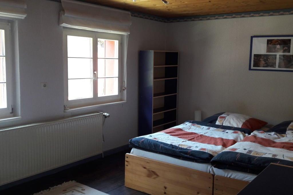 Das Ferienhaus ist das ehemalige Haupthaus der alten Wassermühle. Es liegt direkt am Üßbach, hat eine geräumige Küche mit Essbereich, ein grosses Wohnzimmer mit Terasse, vier Schlafzimmer und zwei Bäder. Die Bäder verfügen über einmal Dusche und einmal eine Badewanne. Für die etwas kälteren Tage sorgen zwei Kaminöfen im Erdgeschoß ebenso wie die rustikale Einrichtung für Gemütlichkeit. Ideal für Großfamilien, Monteuere oder auch Ferien mit Freunden geeignet. Bitte beachten: kaum Handyempfang und kein Internet direkt im Haus! Die Anfahrt ist nur über einen 1 km langen Waldweg möglich und nicht für tierfergelegte Fahrzeuge geeignet!!