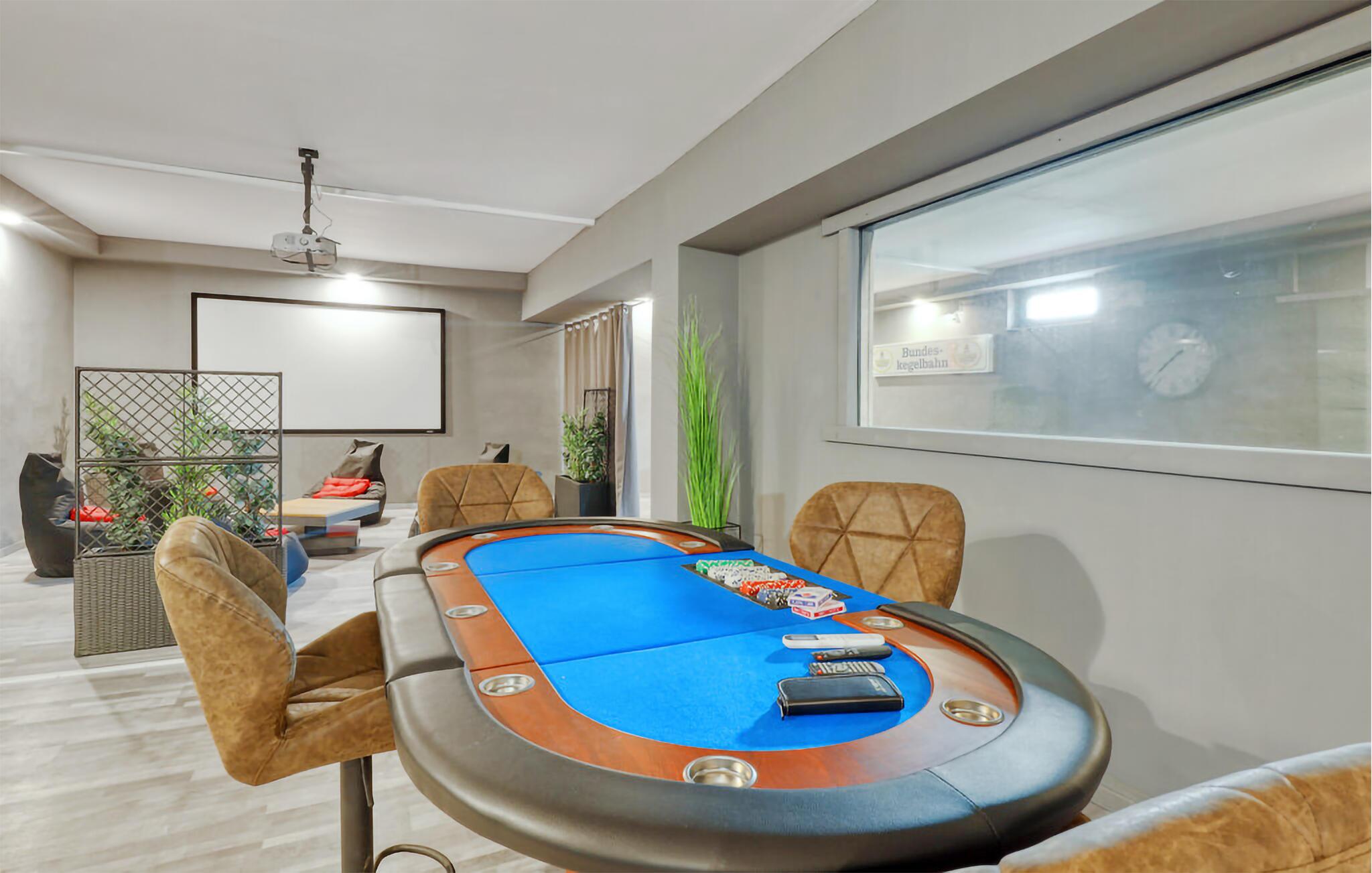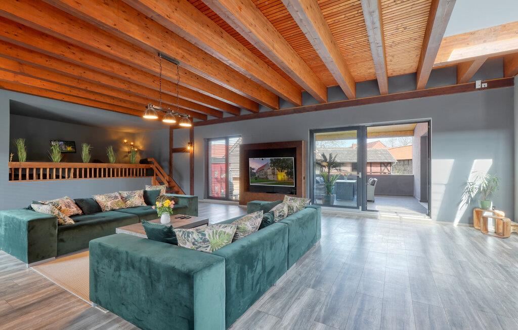 Hvis I skal på ferie som en større flok, og hvis I ikke går af vejen for ekstravagant komfort, er denne fantastiske villa et helt oplagt valg for jer. Interiøret fremtræder endog virkelig lækkert med moderne detaljer, faciliteter og møbler, der sammen med de rustikke og kæmpestore træbjælker skaber en helt særegen stemning her. De store rum får et skønt lysindfald gennem de store vinduespartier, og farverne udstråler varme og elegance, så det er nærmest umuligt ikke at slappe af, med det samme I træder ind. Køkkenet er fuldt udstyret, så lad kokkene tage sig god tid med madlavningen. Efter aftensmaden kan I gøre det lidt ekstra lækkert for jer selv med et boblebad eller en gedigen svedetur i den infrarøde sauna, mens I lægger planer for de kommende dage.