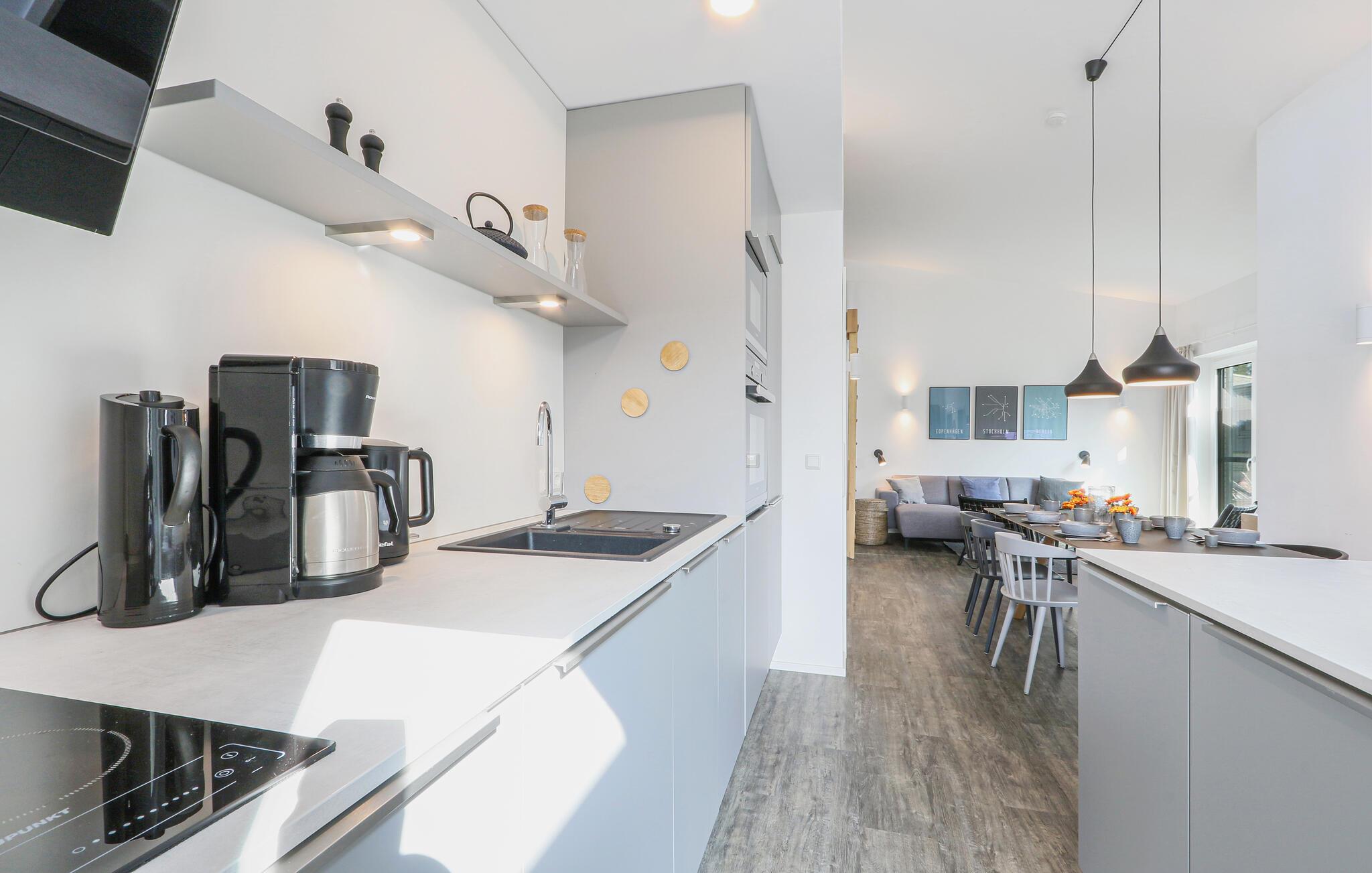 Velkommen til jeres feriehus, som tilbyder en hyggelig og komfortabel atmosfære med møbler i skandinavisk stil, perfekt til familier med børn eller vennegrupper. De næsten 100 kvadratmeter boligareal giver komfortabel plads til op til otte personer. To terrasser til afslapning og spisning i solen, en biopejs og en privat sauna lader intet tilbage at ønske.