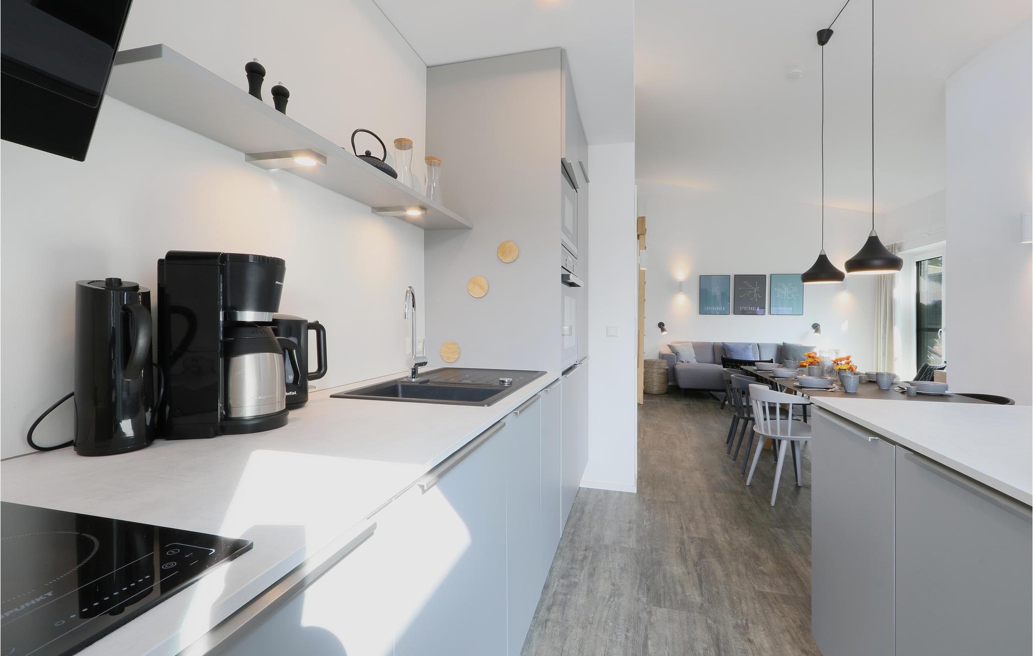 Velkommen til jeres feriehus, som tilbyder en hyggelig og komfortabel atmosfære med møbler i skandinavisk stil, perfekt til børnefamilier eller vennegrupper. Takket være det ekstra børneværelse er dette hus særligt velegnet til familieferier, med næsten 100 kvadratmeter boligareal, der komfortabelt rummer op til 8 personer. To terrasser til afslapning og spisning i solen, en biopejs og en privat sauna lader intet tilbage at ønske.