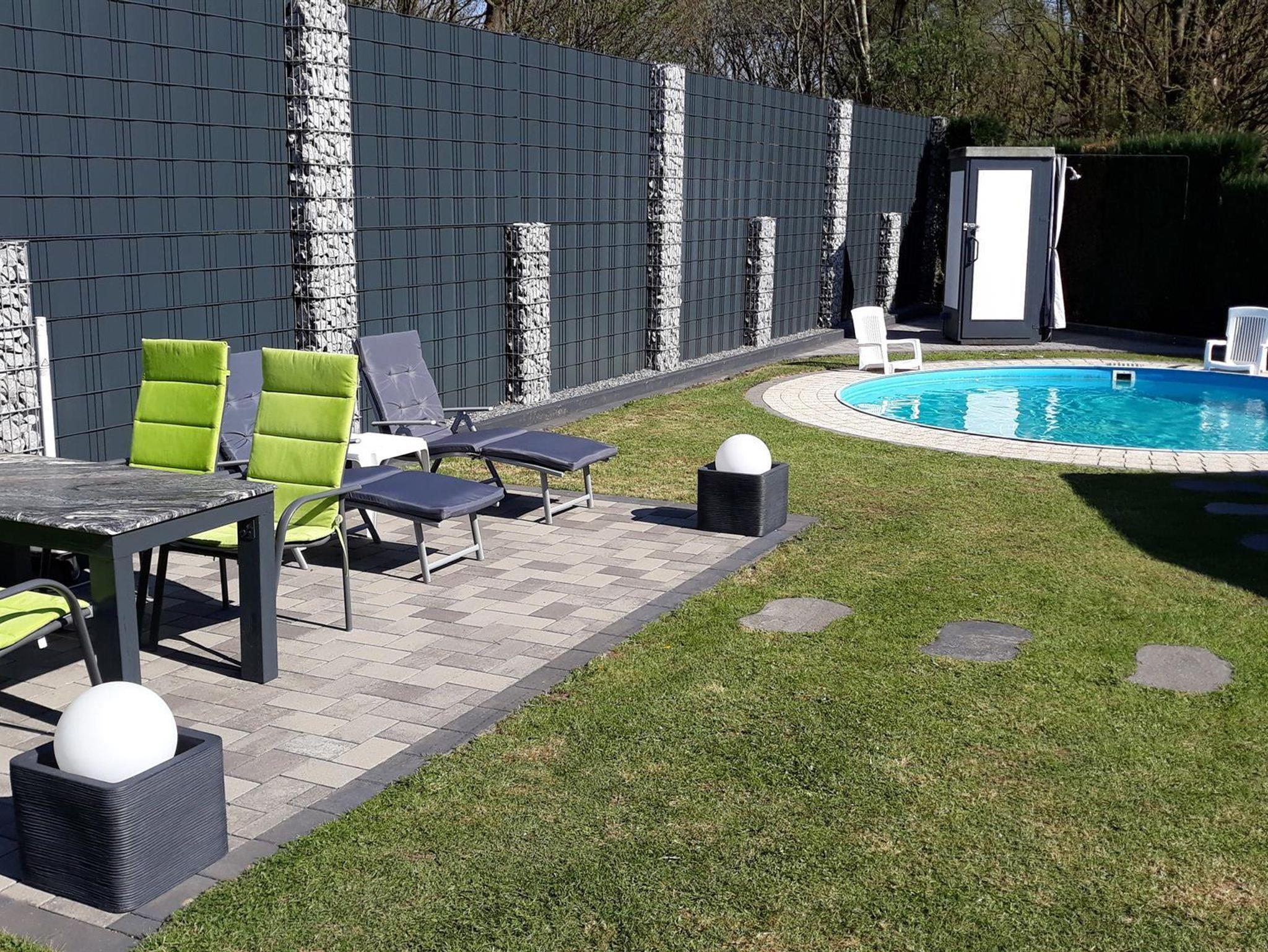 Unser Haus liegt unmittelbar am Rad-und Wanderweg zwischen Wallmerod und Westerburg. Sie können direkt vor der Haustür zu ausgedehnten Wanderungen oder Fahrradtouren starten. Bringen Sie Ihre Fahrräder doch einfach mit. Einstieg in den Westerwaldsteig in ca. 5 km. Für Wellness und Erholung steht unseren Feriengästen ganzjährig eine Gartensauna (gegen Gebühr 5€ je Stunde) und in den Sommermonaten (15. April - 15. September) kostenfrei ein Swimmingpool mit Liegen im Garten zur Verfügung. Der Pool ist solarbeheizt, das bedeutet, das Poolwasser wird bei Sonnenschein in Solarabsorbern erwärmt. Wir bieten außerdem im Außenbereich noch eine Ecke zum Sitzen und Grillen (Grill und Holzkohle bitte selbst mitbringen). Der Garten mit Gartensauna und Sichtschutzwand wurden neu gestaltet.