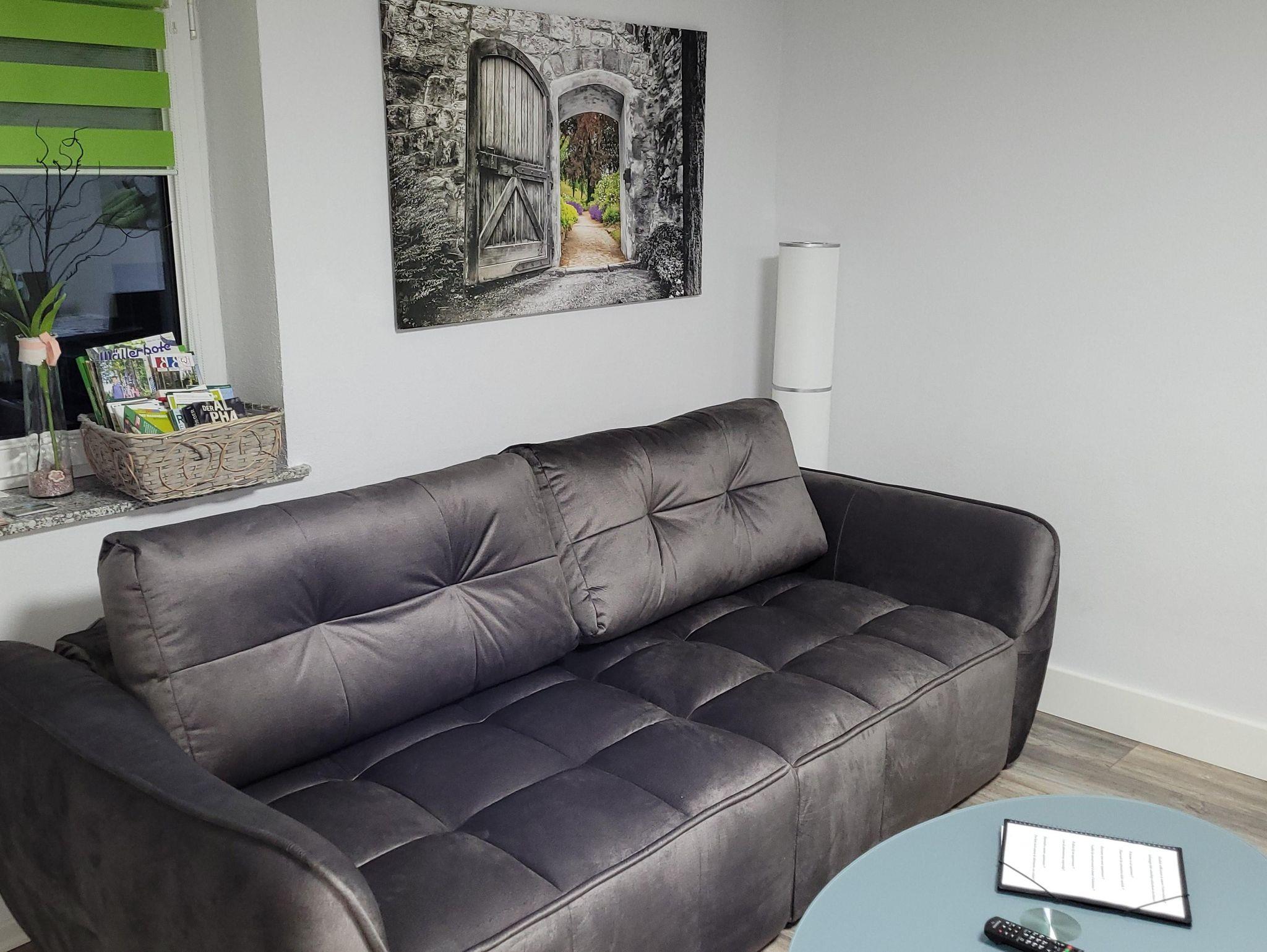 • Moderne Couch mit Bettfunktion im Wohnzimmer