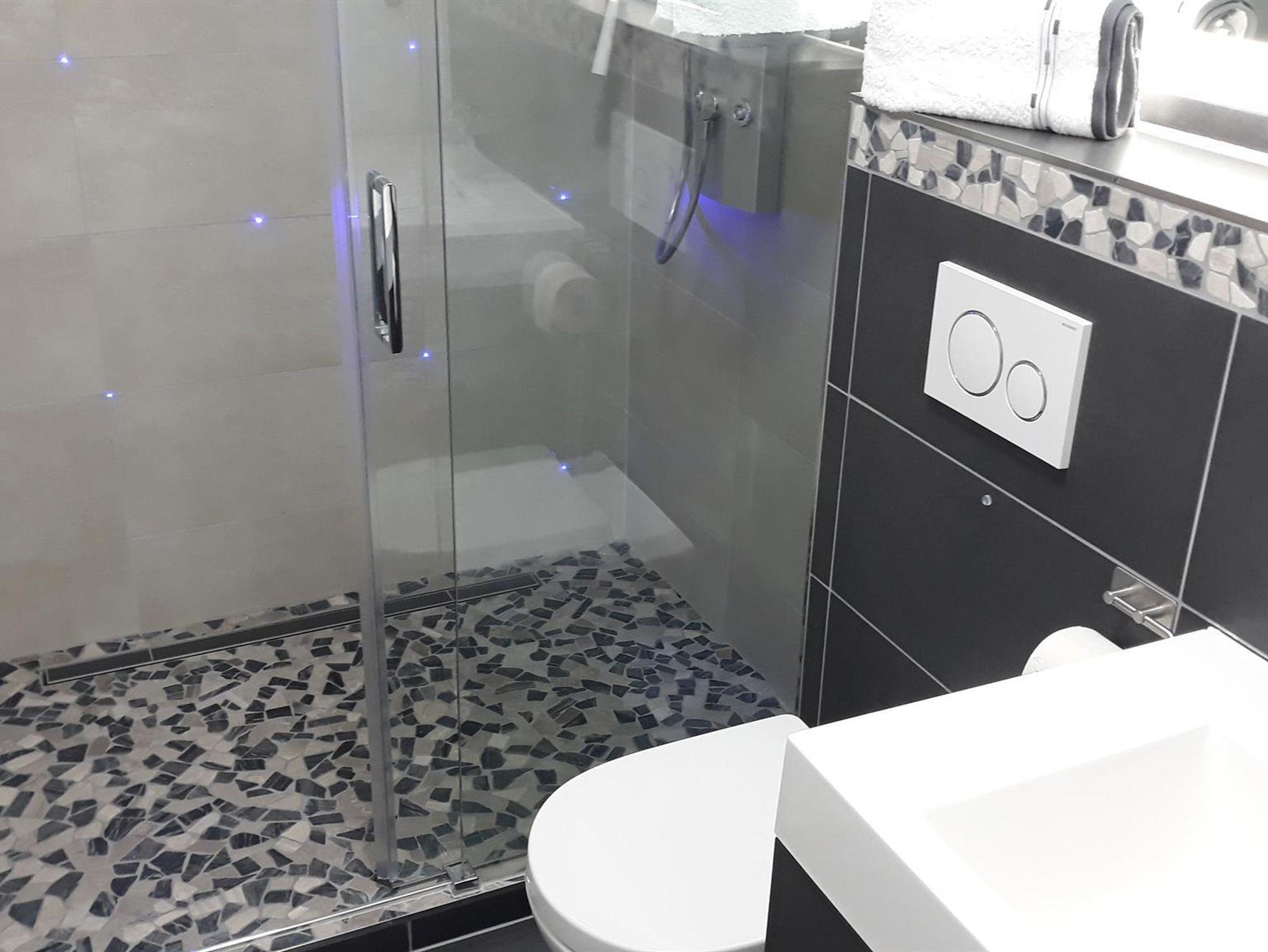 • Fußbodenheizung, Handtuchtrockner im Bad