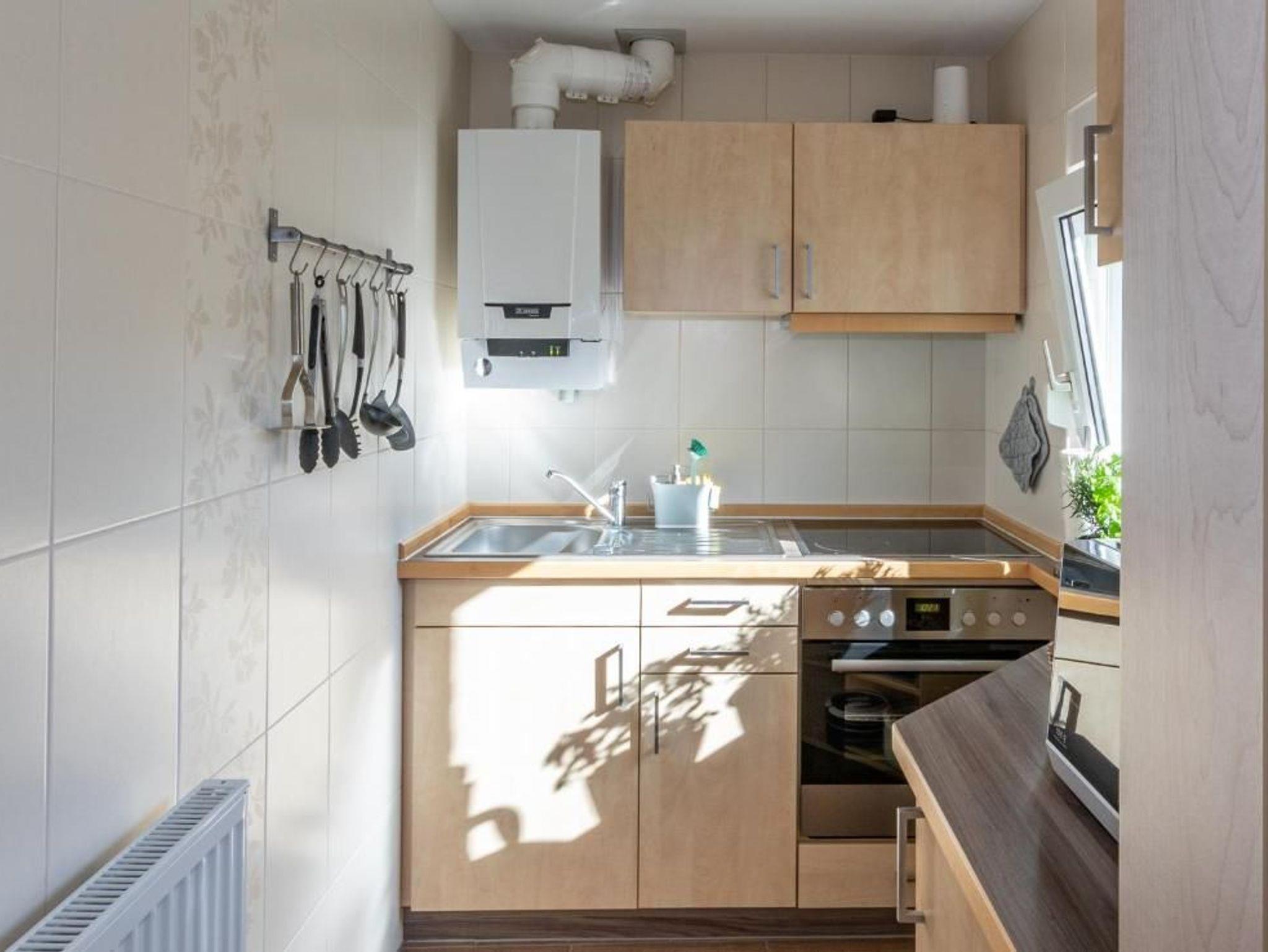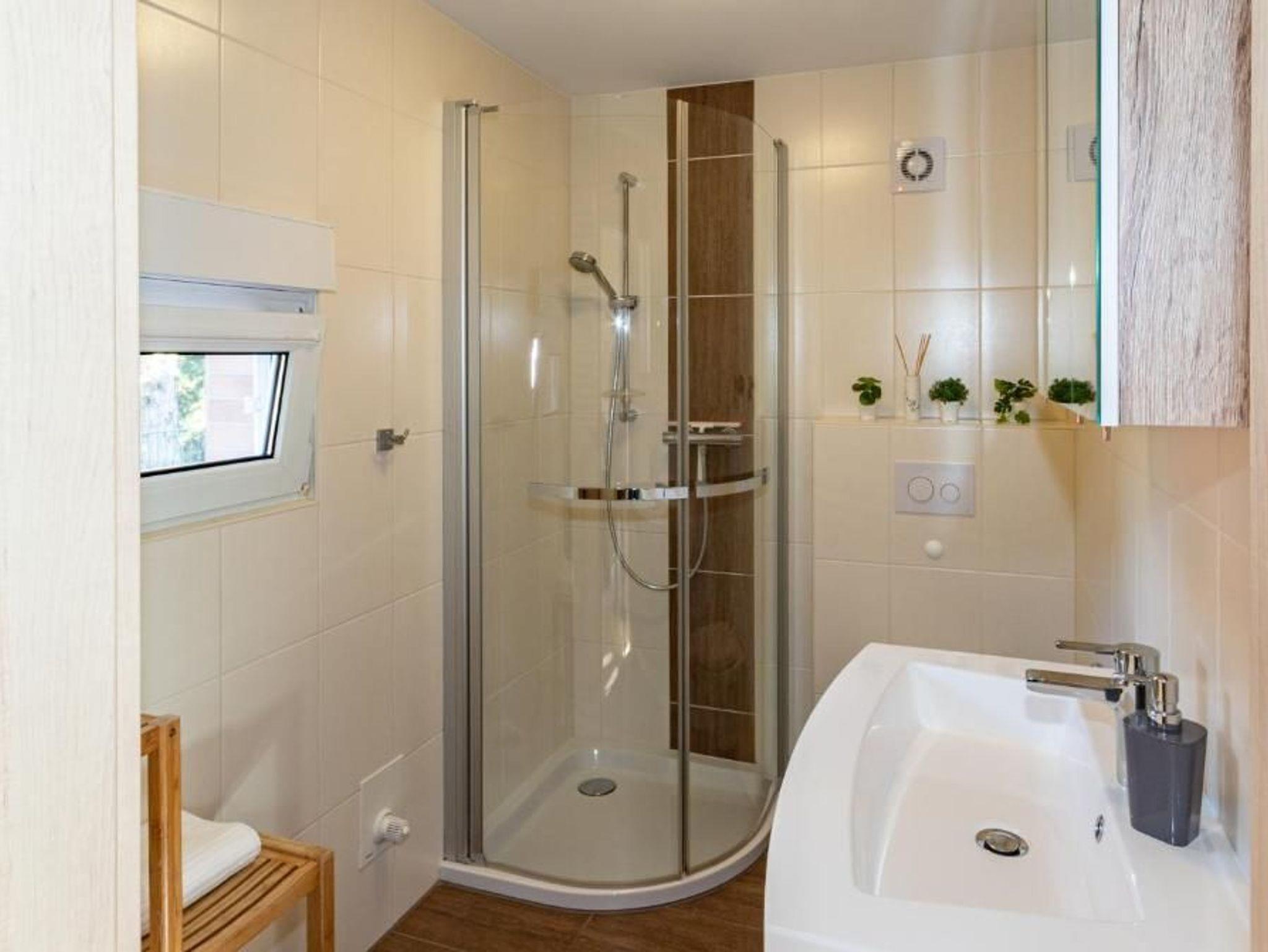 Für kältere Tage und die Wintersaison ist eine Gastherme eingebaut.