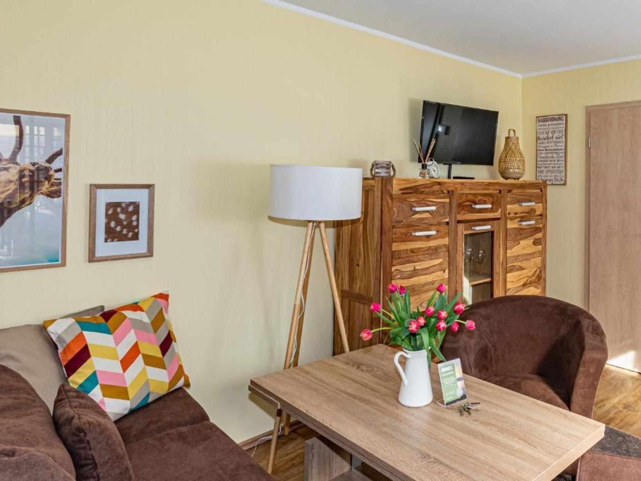 Das komfortabel ausgestattete Ferienhaus verfügt über einen Wohn-/Essraum mit Sat-HD TV, CD-Radio und Schlafcouch, einen Schlafraum mit Doppelbett (180x200) mit zwei Einzelmatratzen sowie ein modernes Bad mit Dusche und WC und eine komplett zur Selbstverpflegung eingerichteten Küche (Kühlschrank mit Gefrierfach, Elektroherd, Geschirr, Kaffeemaschine, Mikrowelle, Toaster, Wasserkocher, etc.).