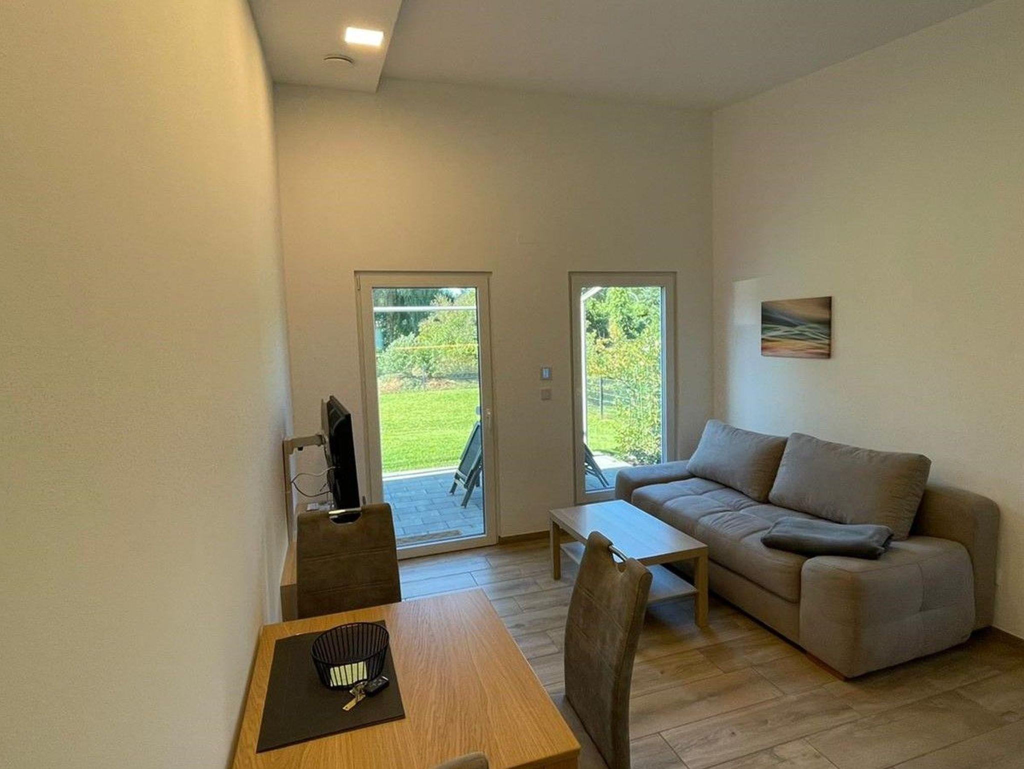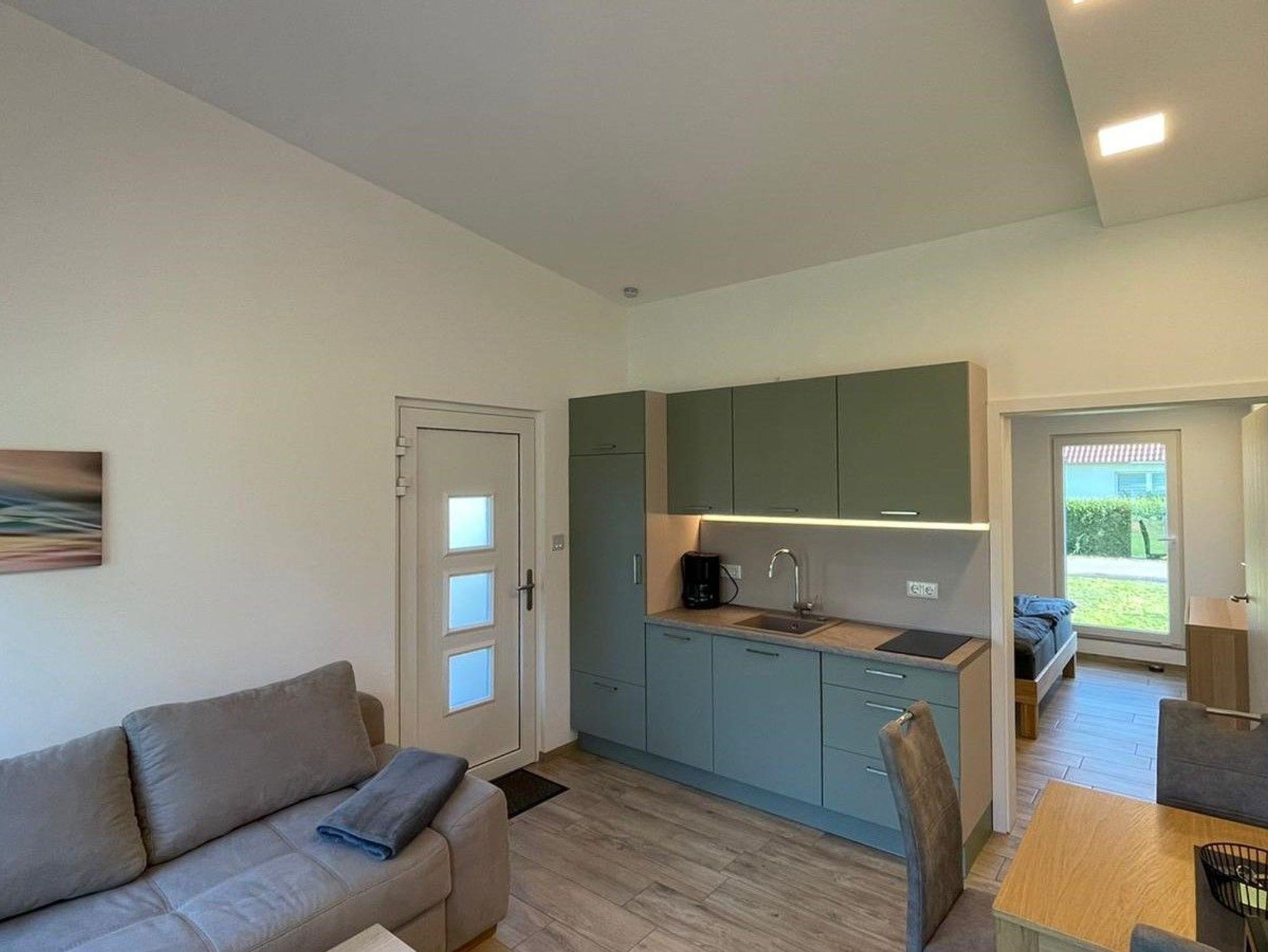 * 1 Wohnzimmer im EG mit Schlafsofa, SAT-TV, LAN/WLAN, Küchenzeile mit 165 Liter Kühlschrank und Gefrierfach,