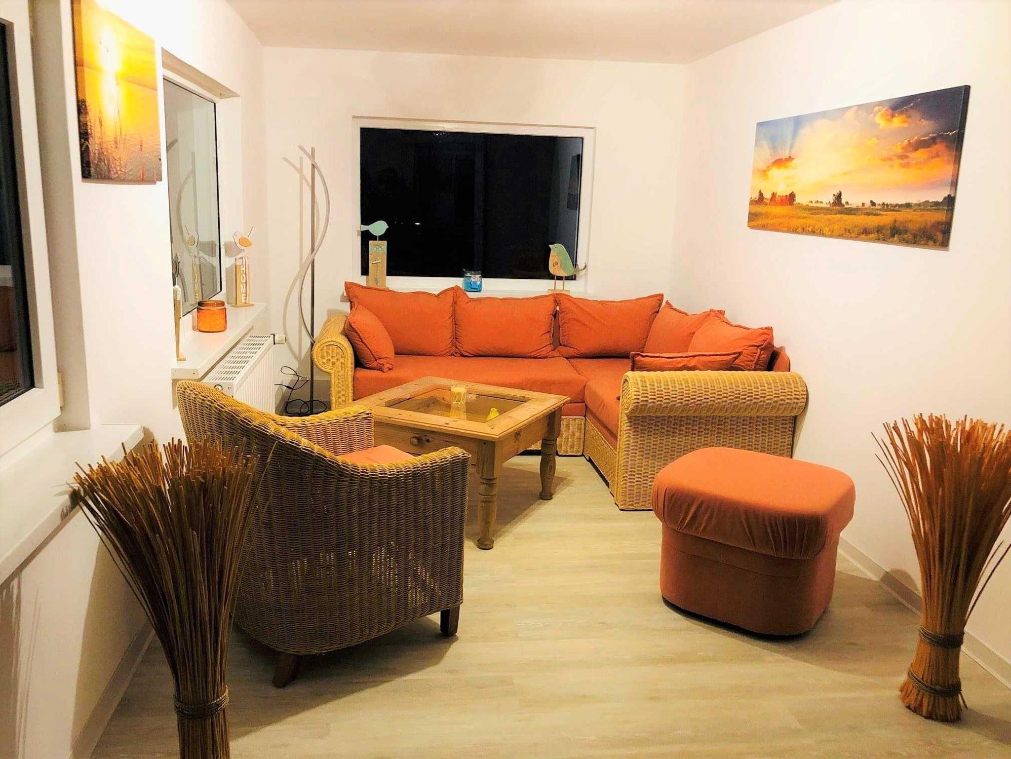 erwartet Sie ein großes gemütliches Wohnzimmer mit ausziehbarer Couch (als