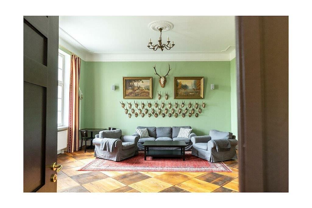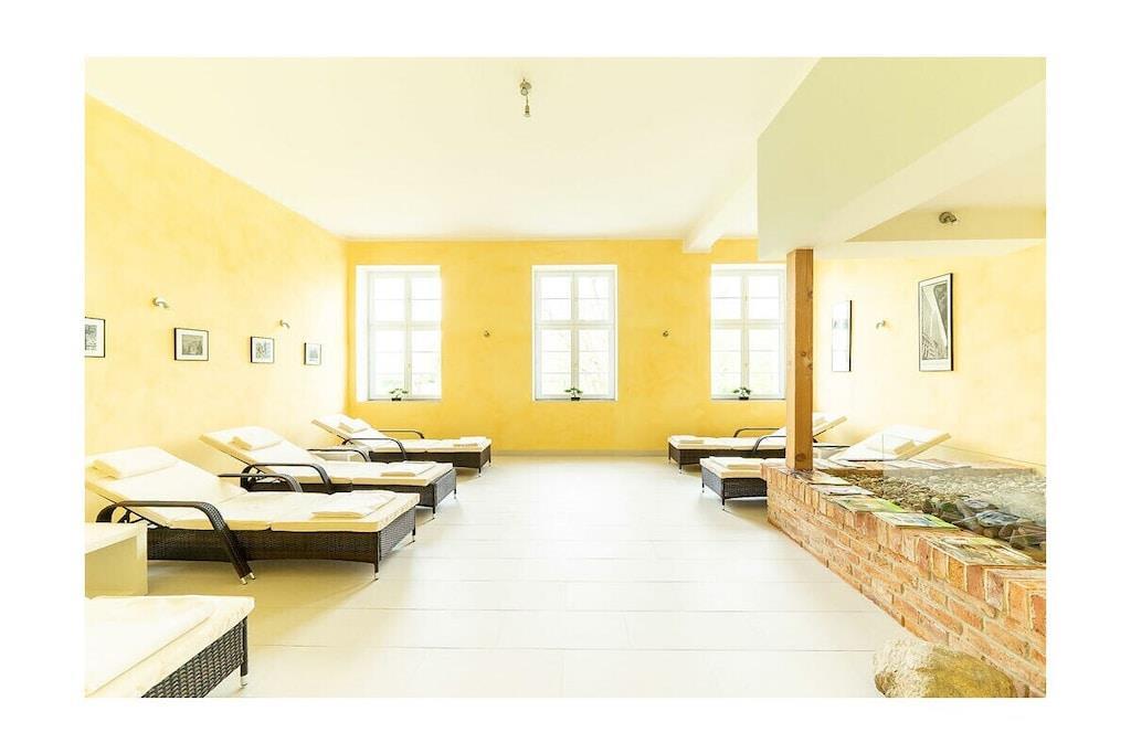 Stueetage: (loungerum(, Hytte, sauna, hottub)) På 1. etage: (Stue/soveværelse(, , , , tekøkken, toilet, dobbeltseng, Fjernsyn, spisebord, kakkelovn, radio, stereoanlæg, kogeplade, elkedel, brødrister, kaffemaskine, ovn, opvaskemaskine , køleskab, fryser, bruser, håndvask, barnestol, føntørrer), bibliotek(bibliotek, pejs), loungemøbler) , gang(, toilet, bruser, håndvask), Internetadgang, varme, terrasse(, havemøbler, solstole), have(Grill center, Græsplæne, havemøbler, solstole), parkering, tørreskab