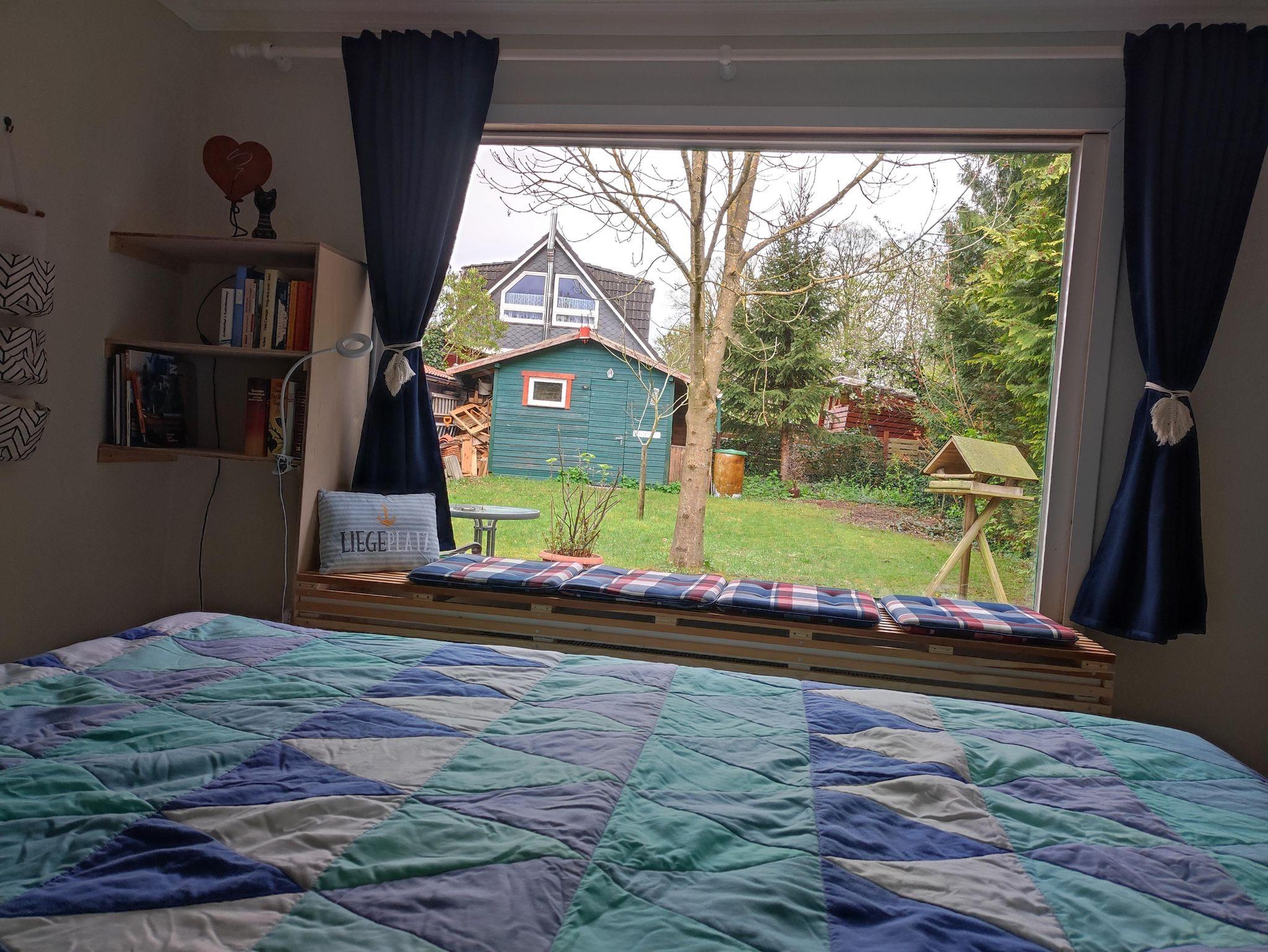 Leseratten können sich auf die breite und beheizte Panorama-Fensterbank im Schlafzimmer freuen. Das 180 cm breite Bett bietet einen direkten Blick in den Garten und auf die Frühstücks-Terrasse. Ein begehbarer Kleiderschrank bietet ausreichend Platz für das Reisegepäck. Das Badezimmer ist über das Schlafzimmer zu erreichen. Auf den Sundowner lädt eine überdachte Laube mit Ofen, Strandkorb und Sofa ein. Liegestuhl und Sonnenschirm sind ebenfalls vorhanden, sowie eine Schaukel und zwei Fahrräder, um die Umgebung zu erkunden. Den Kinderwagen können Sie zu Hause lassen, ein Reisebuggy für Ihr Kleinkind steht zur Verfügung. Für Regenwetter gibt es eine kleine Auswahl an Gesellschaftsspielen, Büchern, DVDs und eine Kiste mit Kinder-Spielzeug.