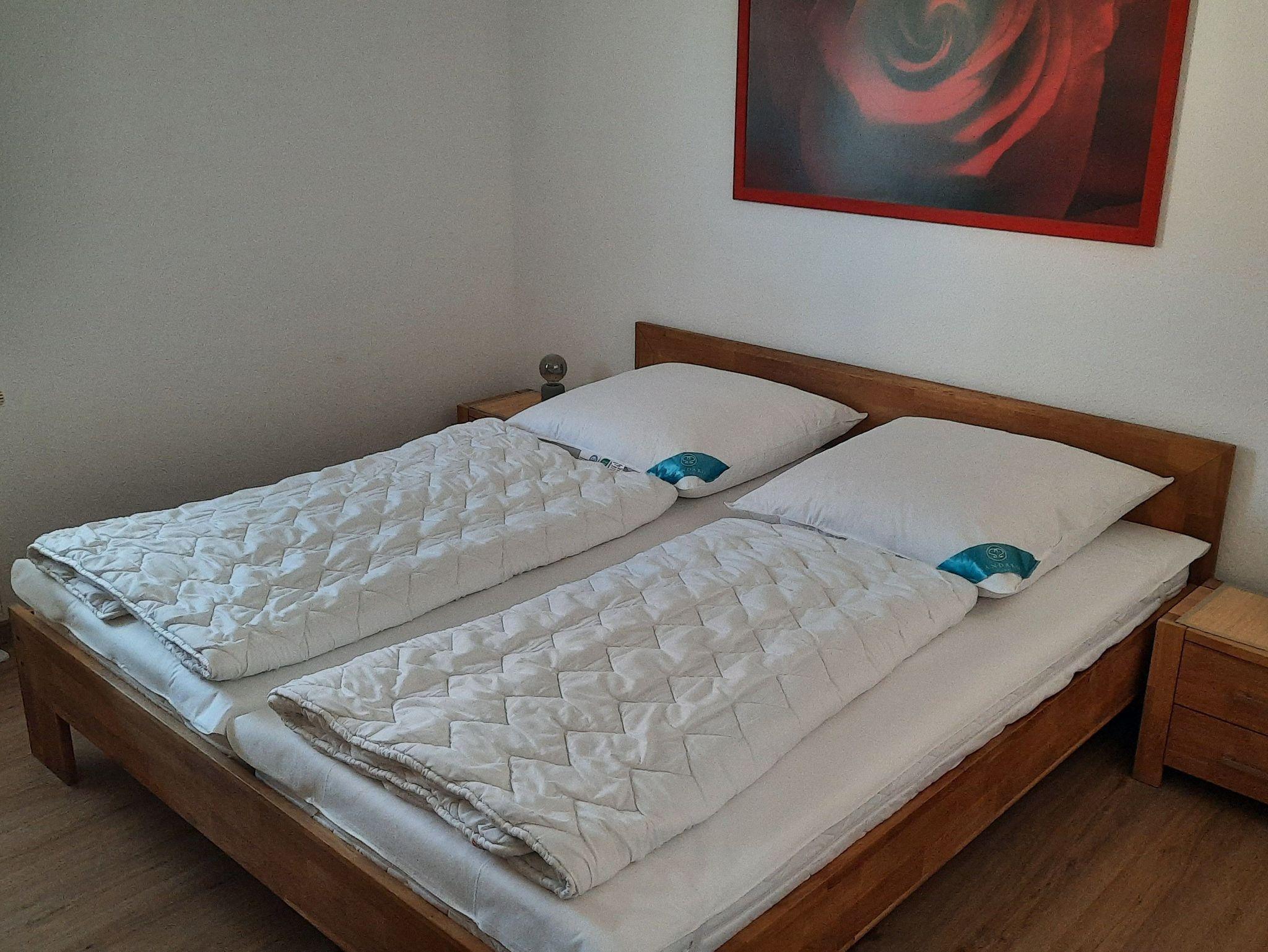 Die ca. 60qm große, helle 3-Raum-Ferienwohnung verfügt über einen großzügigen Wohn-Essbereich mit gemütlicher Couch und Smart-TV, Esstisch und einer offenen Küche mit Backofen, Cerankochfeld, Kühlschrank mit Gefrierfach, Mikrowelle, Geschirrspüler, Kaffeemaschine, Wasserkocher und Toaster. Das erste Schlafzimmer ist mit einem Doppelbett und das zweite Schlafzimmer mit zwei Einzelbetten ausgestattet. Das moderne Badezimmer verfügt über eine bodengleiche Dusche, Waschbecken, WC und einen Haartrockner. W-LAN steht Ihnen kostenfrei zur Verfügung.