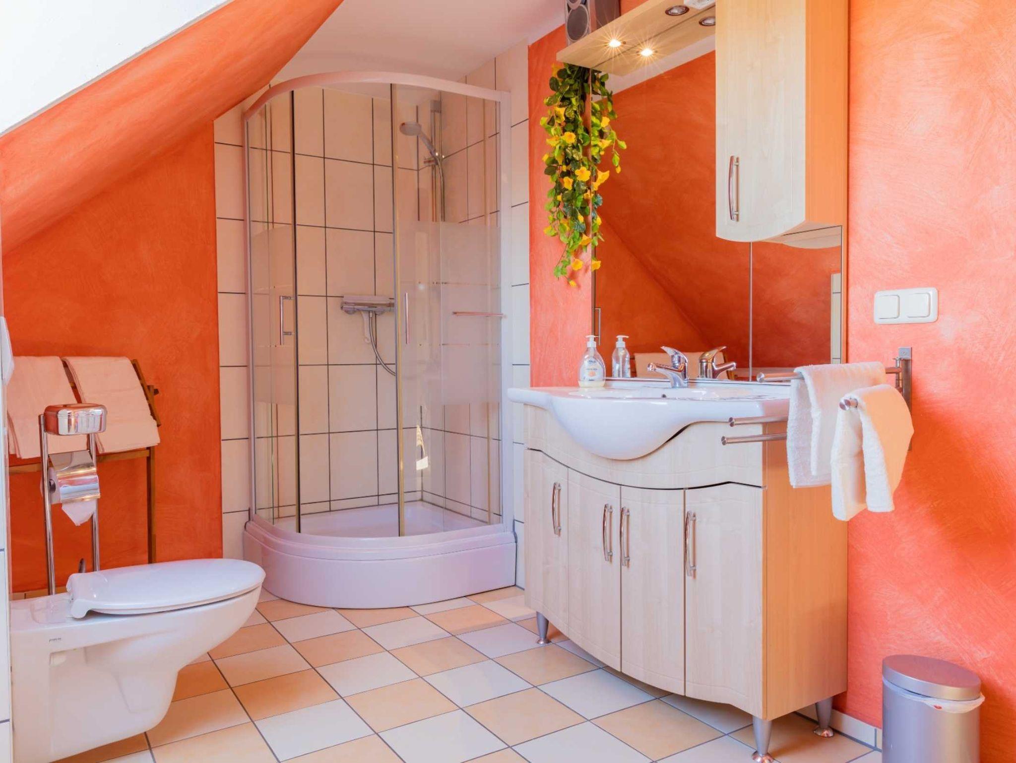 Das Obergeschoss beherbergt zwei weitere Schlafzimmer (Doppelbett) sowie ein weiteres Badezimmer mit Dusche/WC.