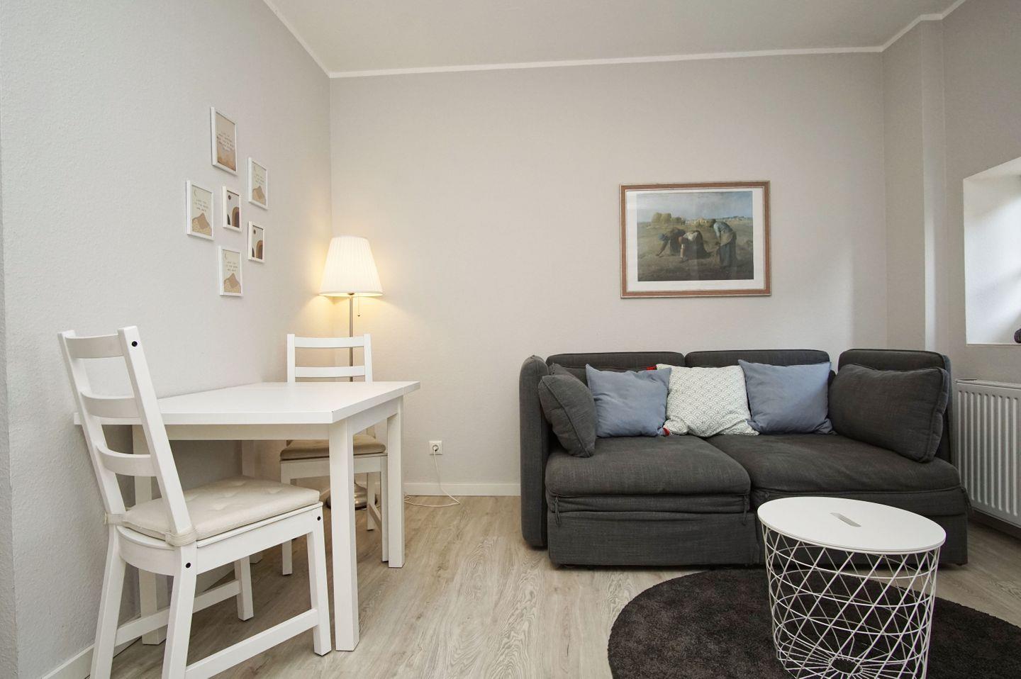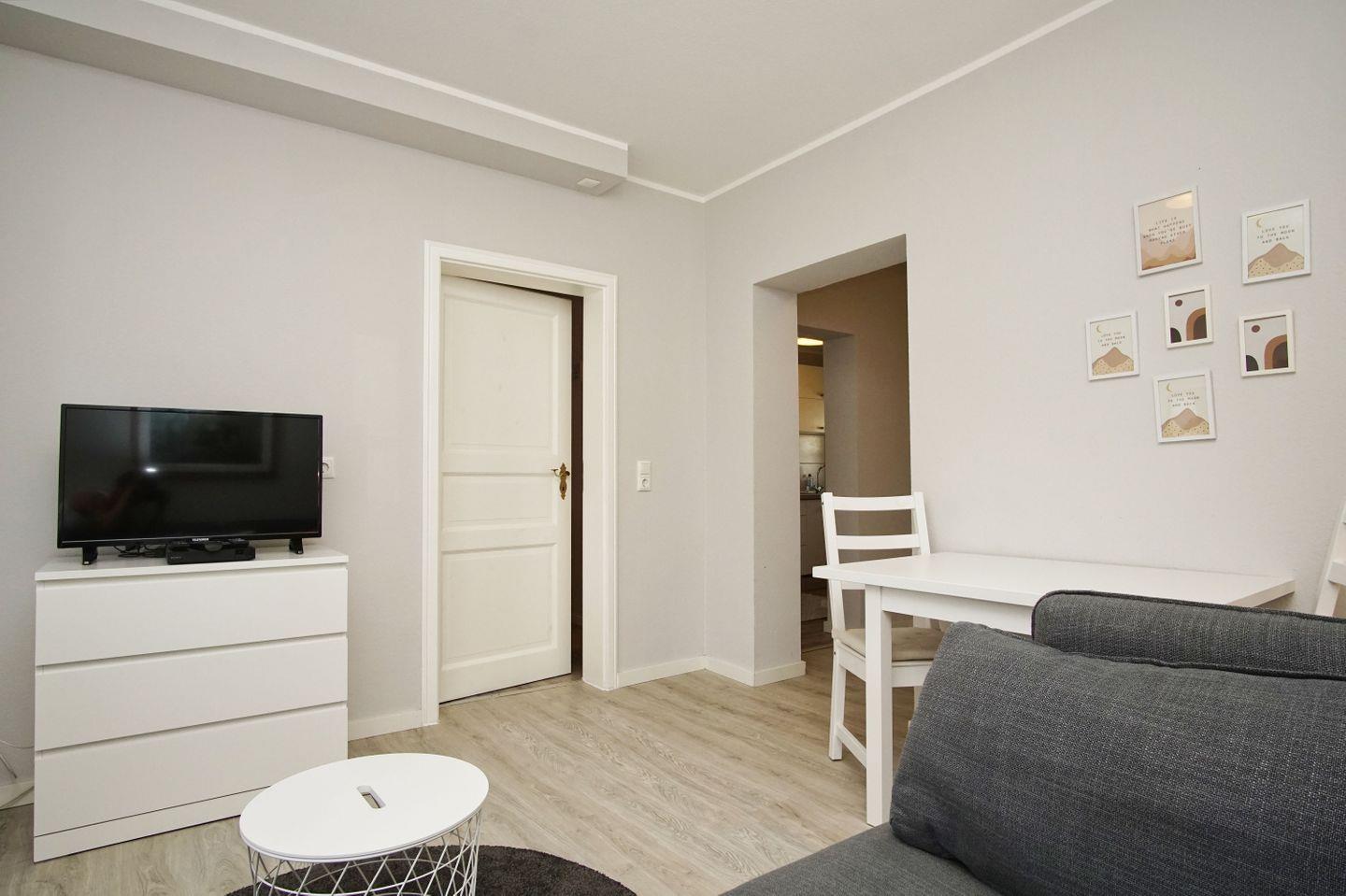 WOHNEN// heller Wohnraum mit bequemer Schlafcouch, Flachbild-TV (Kabel) und Essbereich ++