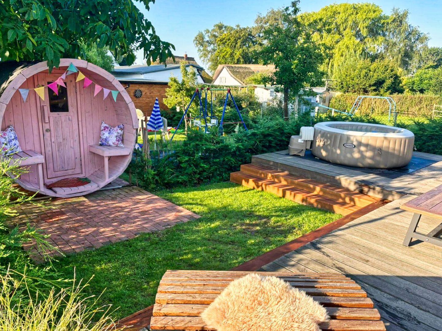Im Ferienhaus Büdnerstube befindet sich auf dem Gartengrundstück eine eigene Sauna.