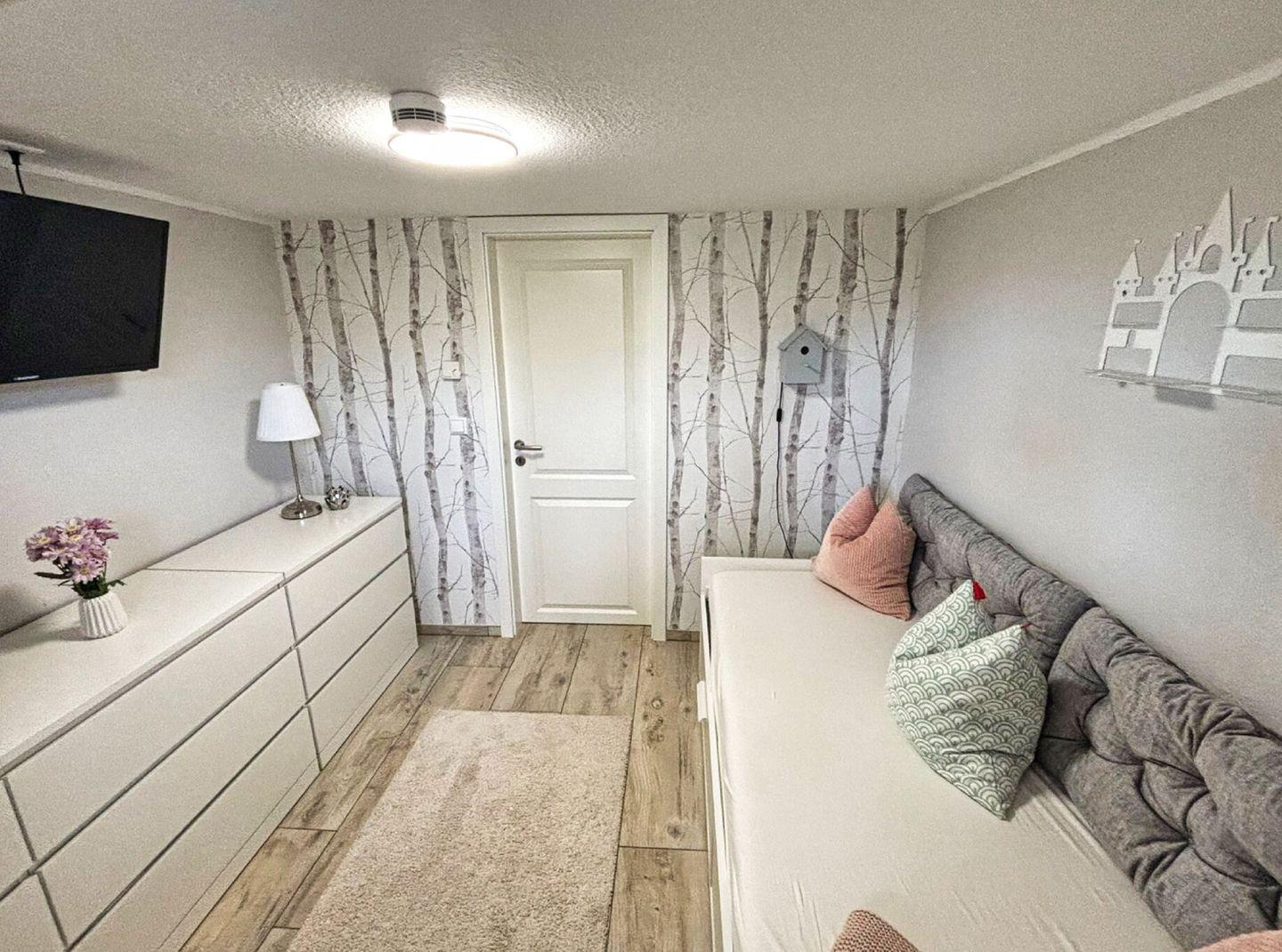 SCHLAFEN// ein separates Schlafzimmer mit Familienbettbett und Flachbild-TV, ein separates Schlafzimmer mit Tandembett und Flachbild-TV ++