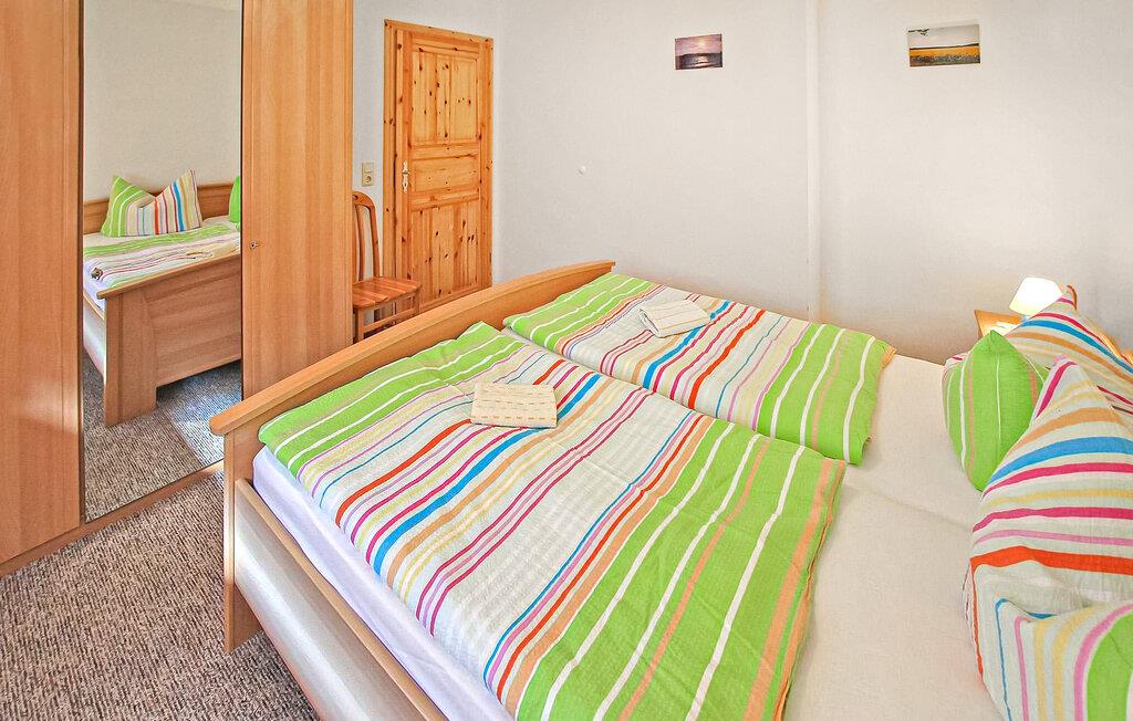 De moderne ferielejligheder i et separat stråtagsferiehus ligger smukt, kun ca 50 m fra Greifswalder Bodden på en velholdt gård. Restauranter, fiskemuligheder, bådudlejning, en legeplads og en ridestald ligger i umiddelbar nærhed, og den smukke Østersøstrand Lobbe ligger kun cirka 4 km væk. Cykeludlejning og levering af brød kan arrangeres gennem ejeren. En fjerde lejlighed i huset er beskrevet under DZV542. I boligbyggeriet, som også ligger i gården, har gæsterne desuden to lejligheder til hver to personer, som kan findes under DZV540 og DZV541. Alle ikke-ryger lejligheder er smagfuldt indrettede, centralt opvarmede og tilgængelige via en separat indgang. En terrasse med havemøbler og grillfaciliteter, en parkeringsplads, et cykelrum og gratis trådløs internetadgang er tilgængelig for alle gæster. En høj stol og en barneseng kan leveres efter anmodning. Rygning er tilladt udendørs. Den samlede pris inkluderer slutrengøring, sengelinned, håndklæder samt vand- og energiforbrug. Betales på stedet: turistskat. Kæledyr er ikke tilladt. Denne cirka 55 kvadratmeter store lejlighed til to personer ligger i stueetagen og har en stue (polstrede møbler, fladskærms-tv, radio) med åbent køkken (spiseplads, el-komfur, ovn, køleskab, diverse små køkkenmaskiner ), et soveværelse (dobbeltværelse ) og et badeværelse med bruser/toilet. Alt Reddevitz er en tidligere fiskerby på Tysklands største ø, Rügen, og ligger på halvøen Mönchgut, på et cirka 5 km langt næs i biosfærereservatet Sydøst Rügen, direkte på Rügisches Bodden, en forlængelse af Greifswalder Bodden. Bademuligheder findes allerede her på den flade naturstrand eller på den fine sandede Østersøstrand i Lobbe Stedet byder på de bedste betingelser for cykling, vandreture, fiskeri (fiskekort fås direkte i landsbyen), ridning og svømning og er kendt for sin lille kagefabrik i cafeen “Moccavino”. De velkendte Østersøferiesteder Baabe, Sellin og Binz ligger omkring 6 km, 8 km og 18 km væk.