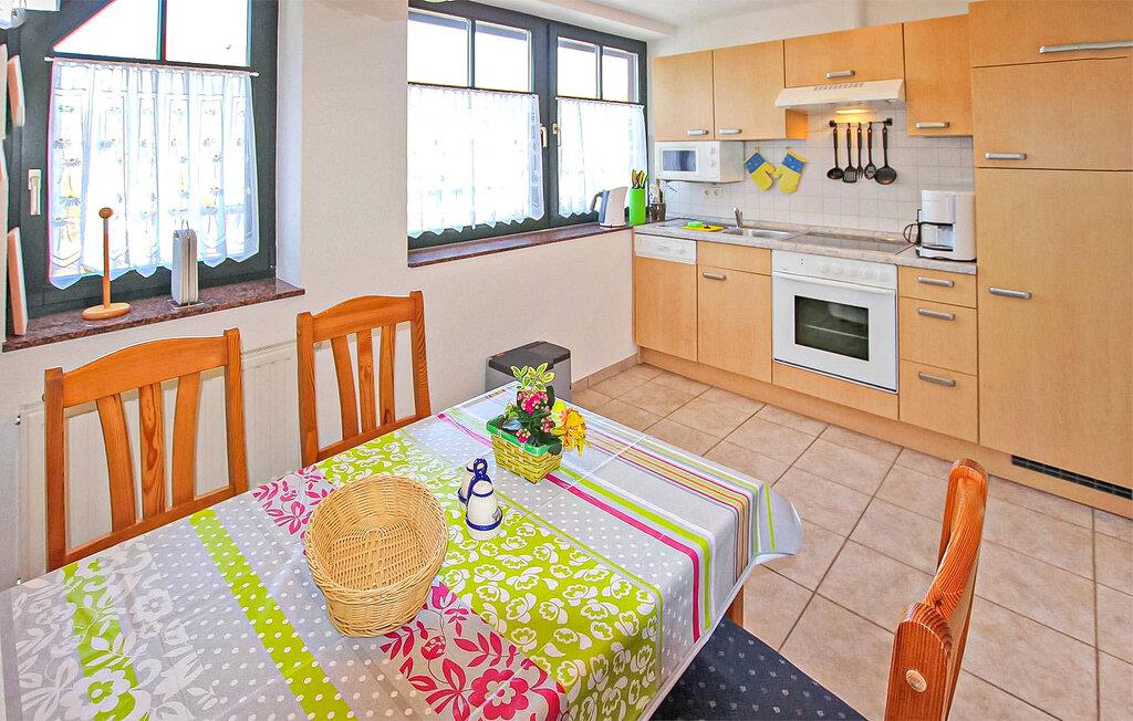 De moderne ferielejligheder i et separat stråtagsferiehus ligger smukt, kun ca 50 m fra Greifswalder Bodden på en velholdt gård. Restauranter, fiskemuligheder, bådudlejning, en legeplads og en ridestald ligger i umiddelbar nærhed, og den smukke Østersøstrand Lobbe ligger kun cirka 4 km væk. Cykeludlejning og levering af brød kan arrangeres gennem ejeren. En fjerde lejlighed i huset er beskrevet under DZV542. I boligbyggeriet, som også ligger i gården, har gæsterne desuden to lejligheder til hver to personer, som kan findes under DZV540 og DZV541. Alle ikke-ryger lejligheder er smagfuldt indrettede, centralt opvarmede og tilgængelige via en separat indgang. En terrasse med havemøbler og grillfaciliteter, en parkeringsplads, et cykelrum og gratis trådløs internetadgang er tilgængelig for alle gæster. En høj stol og en barneseng kan leveres efter anmodning. Rygning er tilladt udendørs. Den samlede pris inkluderer slutrengøring, sengelinned, håndklæder samt vand- og energiforbrug. Betales på stedet: turistskat. Kæledyr er ikke tilladt. Denne cirka 75 kvm store lejlighed for op til 5 personer (4 voksne + 1 baby) ligger på første sal og har en stue (polstrede møbler, fladskærms-tv, radio), et fuldt udstyret køkken (spisebord til fire personer) , El-komfur, ovn, køleskab, opvaskemaskine, mikroovn, diverse små køkkenmaskiner), to soveværelser (1 x dobbeltseng, 1 x to enkeltsenge), en stor entre og et badeværelse med bruser, kar og toilet. Barneseng og høj stol kan leveres efter anmodning. Alt Reddevitz er en tidligere fiskerby på Tysklands største ø, Rügen, og ligger på halvøen Mönchgut, på et cirka 5 km langt næs i biosfærereservatet Sydøst Rügen, direkte på Rügisches Bodden, en forlængelse af Greifswalder Bodden. Bademuligheder findes allerede her på den flade naturstrand eller på den fine sandede Østersøstrand i Lobbe Stedet byder på de bedste betingelser for cykling, vandreture, fiskeri (fiskekort fås direkte i landsbyen), ridning og svømning og er kendt for sin lille kagefabrik i cafeen “Moccavino”. De velkendte Østersøferiesteder Baabe, Sellin og Binz ligger omkring 6 km, 8 km og 18 km væk.