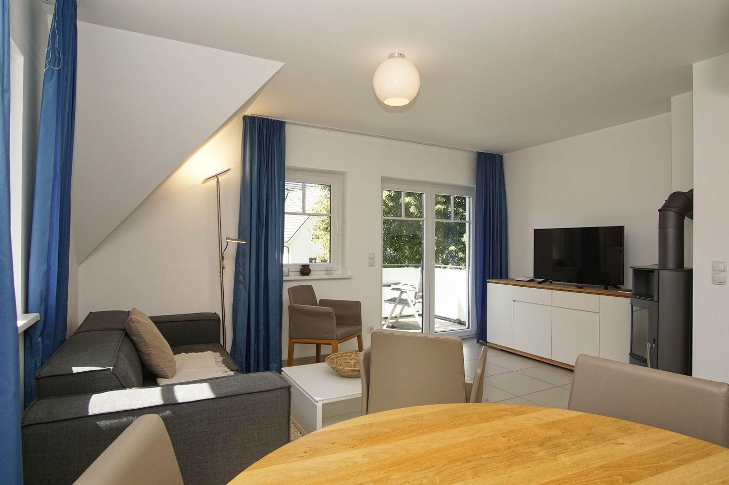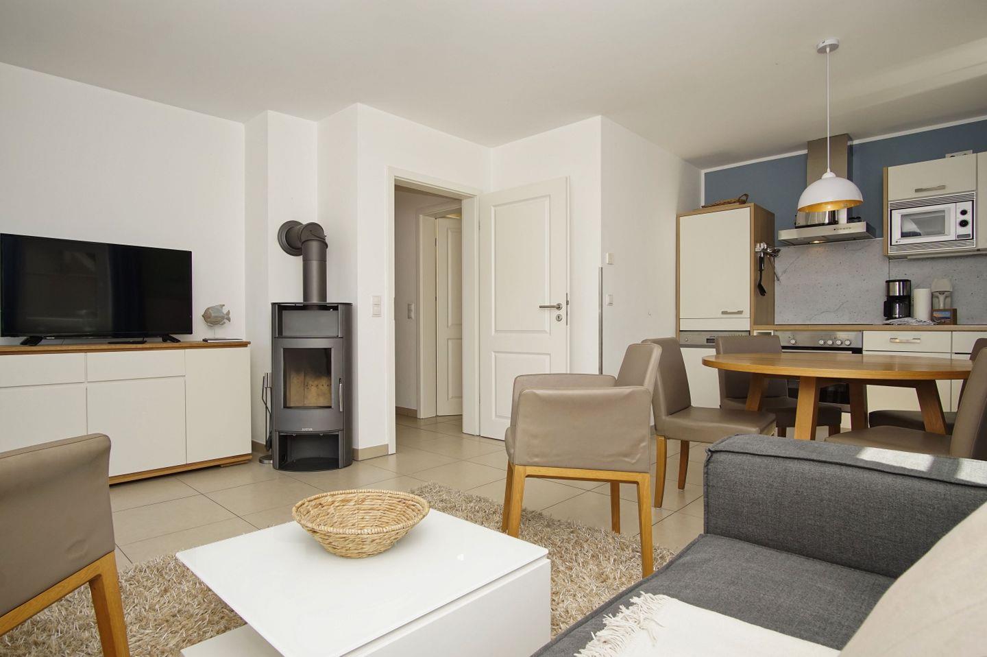 WOHNEN // Wohnraum mit Essbereich, Kamin, Sitzgarnitur mit bequemer Couch, Flachbild-TV (Sat), Internet (WLan) ++