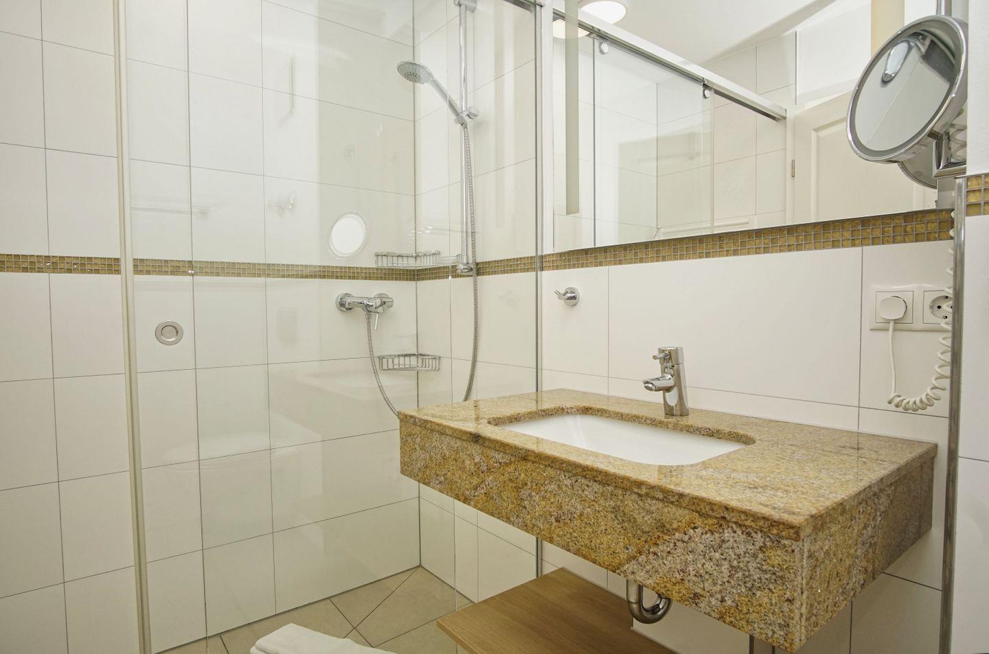 BAD // innen liegendes Bad, mit Dusche und WC, Kosmetikspiegel, zweites Bad im DG mit Dusche und WC, Fön ++